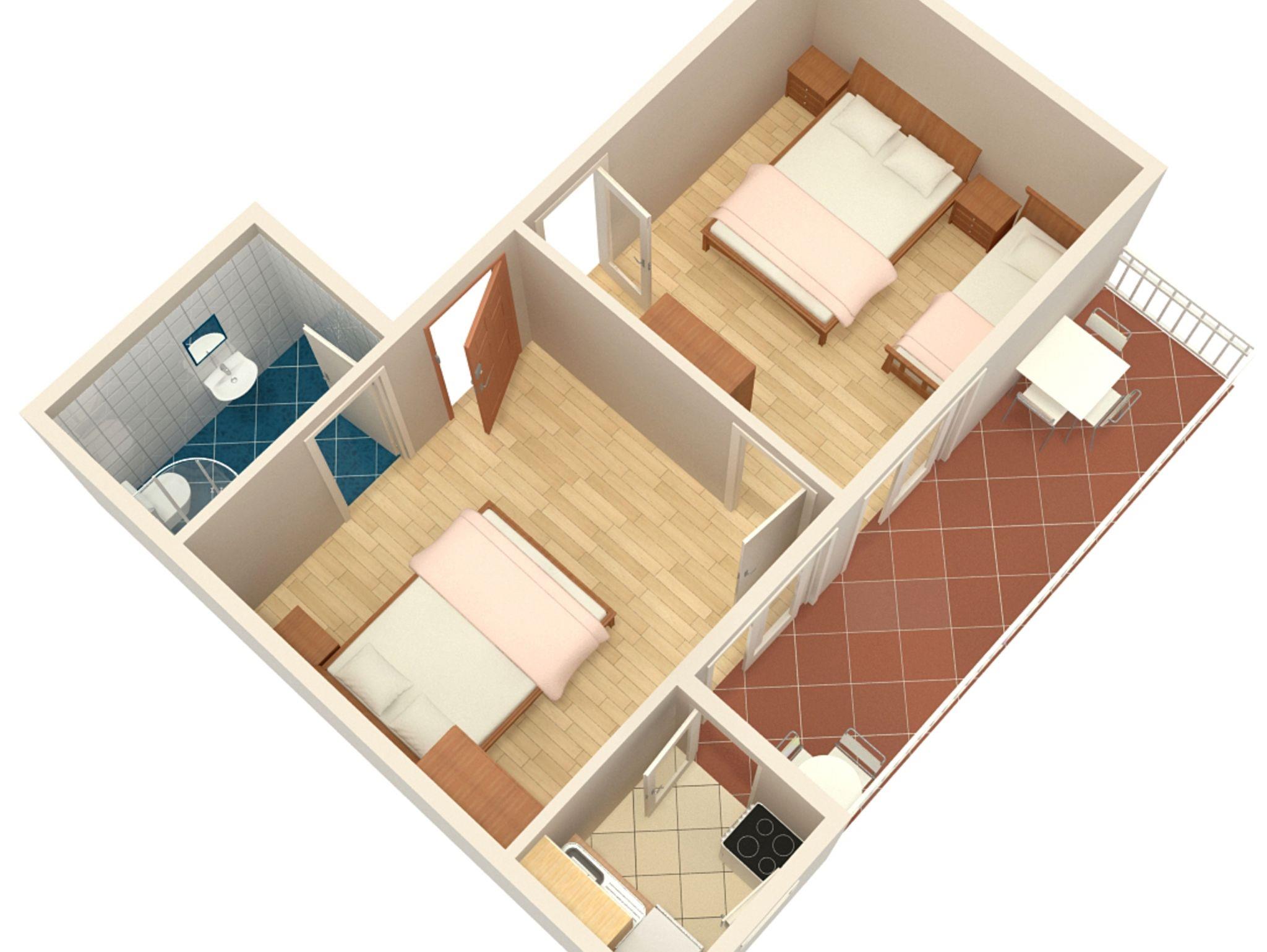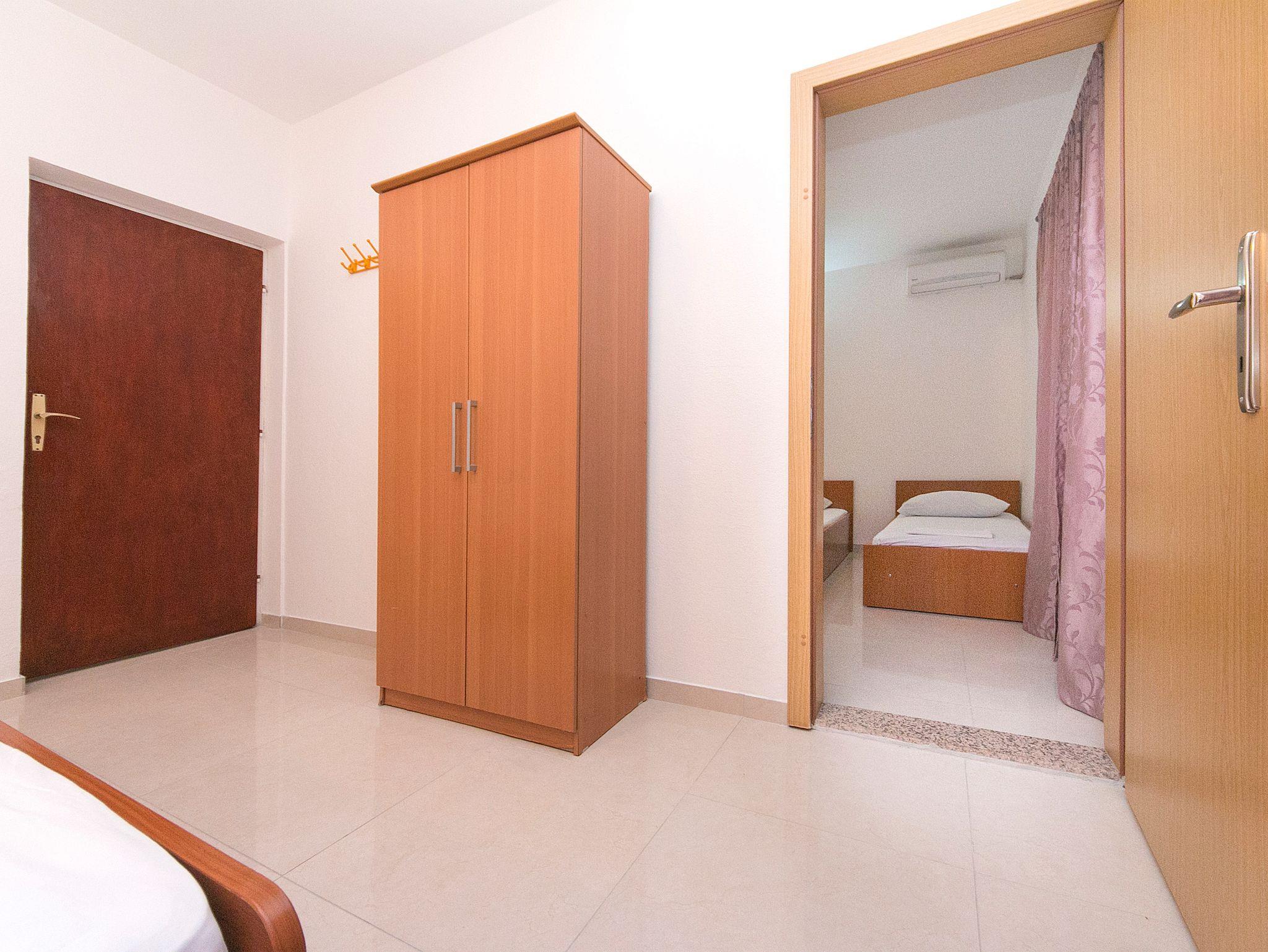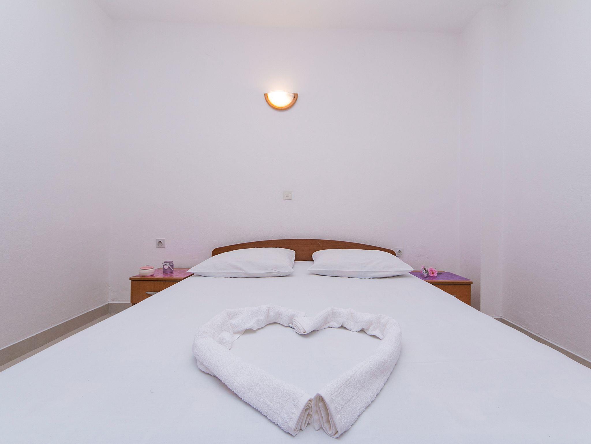 Ferienwohnung bietet Platz für 5 Gäste. Die Betten sind in Schlafzimmern, die es 2 gibt, innerhalb einer Gesamtfläche von 29m2, angeordnet. Die Gäste haben einen eigenen Balkon zur Verfügung, auf der sie in warmen Sommernächten genießen können. Es ist erlaubt, Speisen auf dem Gemeinschafts-Grill vorzubereiten. Unterkunftseinheit hat Räume, die von dem Rest der Einheit abgetrennt werden. IM PREIS INBEGRIFFEN: Kurtaxe, Endreinigung, Klimatisierung, Parkplatz, Internet, Bügeleisen, Bügelbrett, Föhn, tragbarer Grill. VERBINDLICHE ZUSÄTZLICHE KOSTEN: Aufzahlung für Kurzaufenthalte (prozentualer Zuschlag pro Nächtigungsanzahl: 30% - 1, 20% - 2, 10% - 3). UNVERBINDLICHE ZUSÄTZLICHE KOSTEN: Wäschewaschen (7,00 € Waschen), Zusatzbett (6,00 € pro Nacht). Die Verfügbarkeit zusätzlicher Dienstleistungen in Ihrem reservierten Termin und die Preise derselben (falls nicht aufgeführt) müssen im Voraus überprüft werden. Zusätzliche Dienstleistungen die in der Zahlungsaufforderung nicht aufgeführt sind werden direkt beim Vermieter bezahlt, angenommen der Gast nutzt auch diese. Ermäßigung auf den Grundpreis: Gratistag 28=25 (bei einem Aufenthalt von 28 oder mehr Tagen erhalten Sie 3 kostenlose Tage für den Aufenthalt bis 31.12.26).
