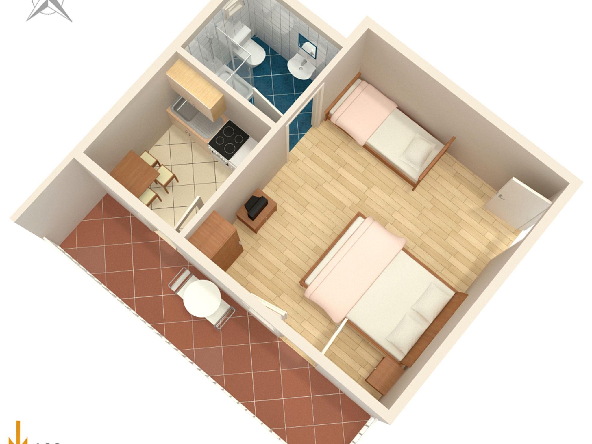 Studio bietet Platz für 3 Gäste. Die Betten sind in Schlafzimmern, die es 1 gibt, innerhalb einer Gesamtfläche von 16m2, angeordnet. Die Gäste haben einen eigenen Balkon zur Verfügung, auf der sie in warmen Sommernächten genießen können. Das Studio-Apartment bietet Meerblick. Es ist erlaubt, Speisen auf dem Gemeinschafts-Grill vorzubereiten. IM PREIS INBEGRIFFEN: Kurtaxe, Endreinigung, Parkplatz, Internet, Wäschewaschen. VERBINDLICHE ZUSÄTZLICHE KOSTEN: Aufzahlung für Kurzaufenthalte (prozentualer Zuschlag pro Nächtigungsanzahl: 30% - 1, 20% - 2, 10% - 3). Die Verfügbarkeit zusätzlicher Dienstleistungen in Ihrem reservierten Termin und die Preise derselben (falls nicht aufgeführt) müssen im Voraus überprüft werden. Zusätzliche Dienstleistungen die in der Zahlungsaufforderung nicht aufgeführt sind werden direkt beim Vermieter bezahlt, angenommen der Gast nutzt auch diese. Ermäßigung auf den Grundpreis: Gratistag 14=13 (bei einem Aufenthalt von 14 Tagen oder mehr erhalten Sie einen Gratistag für den Aufenthalt bis 31.12.26).