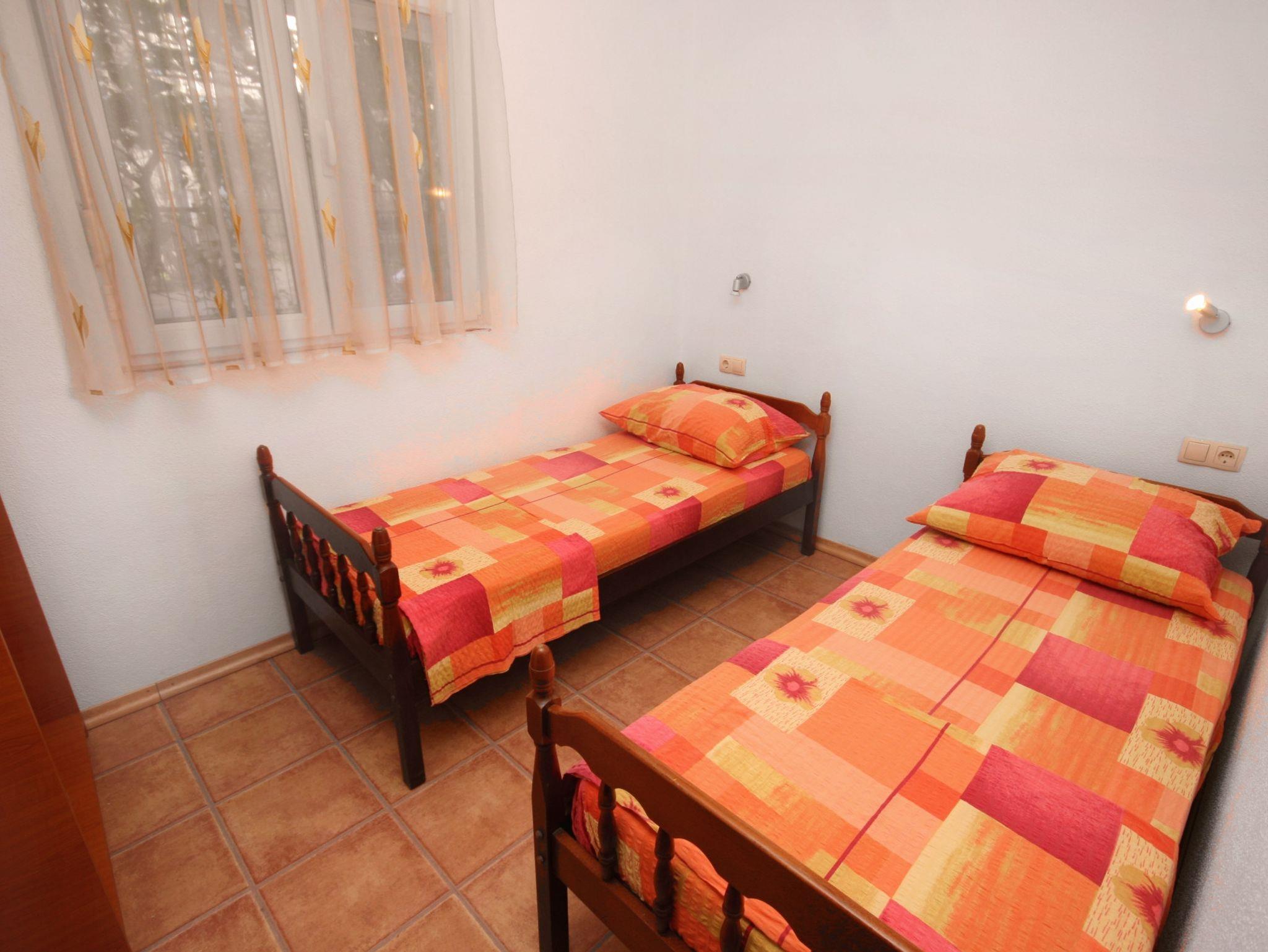 Ferienwohnung bietet Platz für 4 Gäste. Die Betten sind in Schlafzimmern, die es 1 gibt, und in Wohnzimmer, innerhalb einer Gesamtfläche von 28m2, angeordnet. Die Gäste haben eine eigene Terrasse zur Verfügung, auf der sie in warmen Sommernächten genießen können. Es ist erlaubt, Speisen auf dem Gemeinschafts-Grill vorzubereiten. Unterkunftseinheit hat Räume, die von dem Rest der Einheit abgetrennt werden. IM PREIS INBEGRIFFEN: Kurtaxe, Endreinigung, Klimatisierung, Parkplatz, Internet. VERBINDLICHE ZUSÄTZLICHE KOSTEN: Aufzahlung für Kurzaufenthalte (prozentualer Zuschlag pro Nächtigungsanzahl: 30% - 1, 20% - 2, 10% - 3). UNVERBINDLICHE ZUSÄTZLICHE KOSTEN: Wäschewaschen (5,00 € Waschen), Zusatzbett (8,00 € pro Nacht). Die Verfügbarkeit zusätzlicher Dienstleistungen in Ihrem reservierten Termin und die Preise derselben (falls nicht aufgeführt) müssen im Voraus überprüft werden. Zusätzliche Dienstleistungen die in der Zahlungsaufforderung nicht aufgeführt sind werden direkt beim Vermieter bezahlt, angenommen der Gast nutzt auch diese. Ermäßigung auf den Grundpreis: Gratistag 14=13 (bei einem Aufenthalt von 14 Tagen oder mehr erhalten Sie einen Gratistag für den Aufenthalt bis 31.12.26).