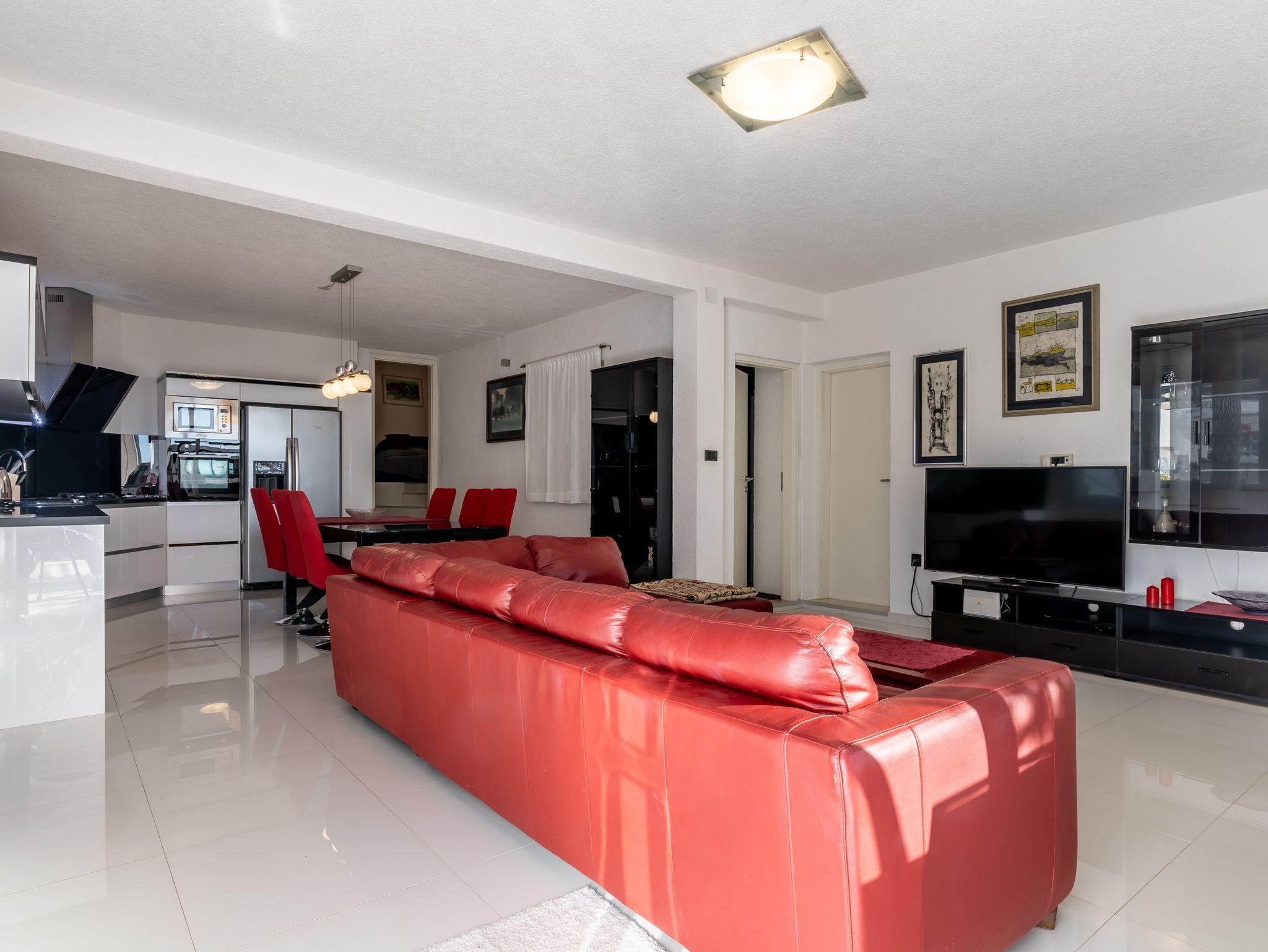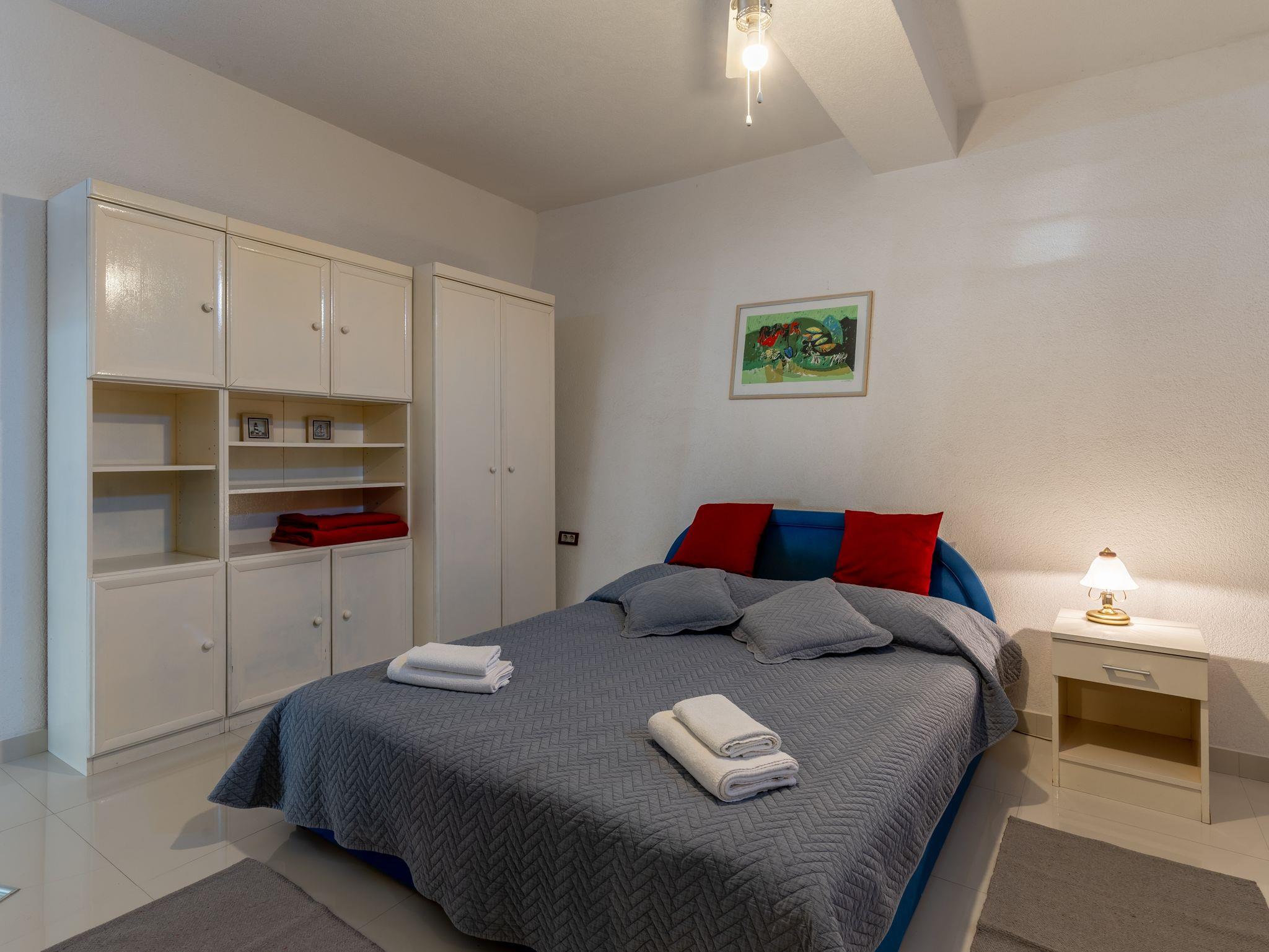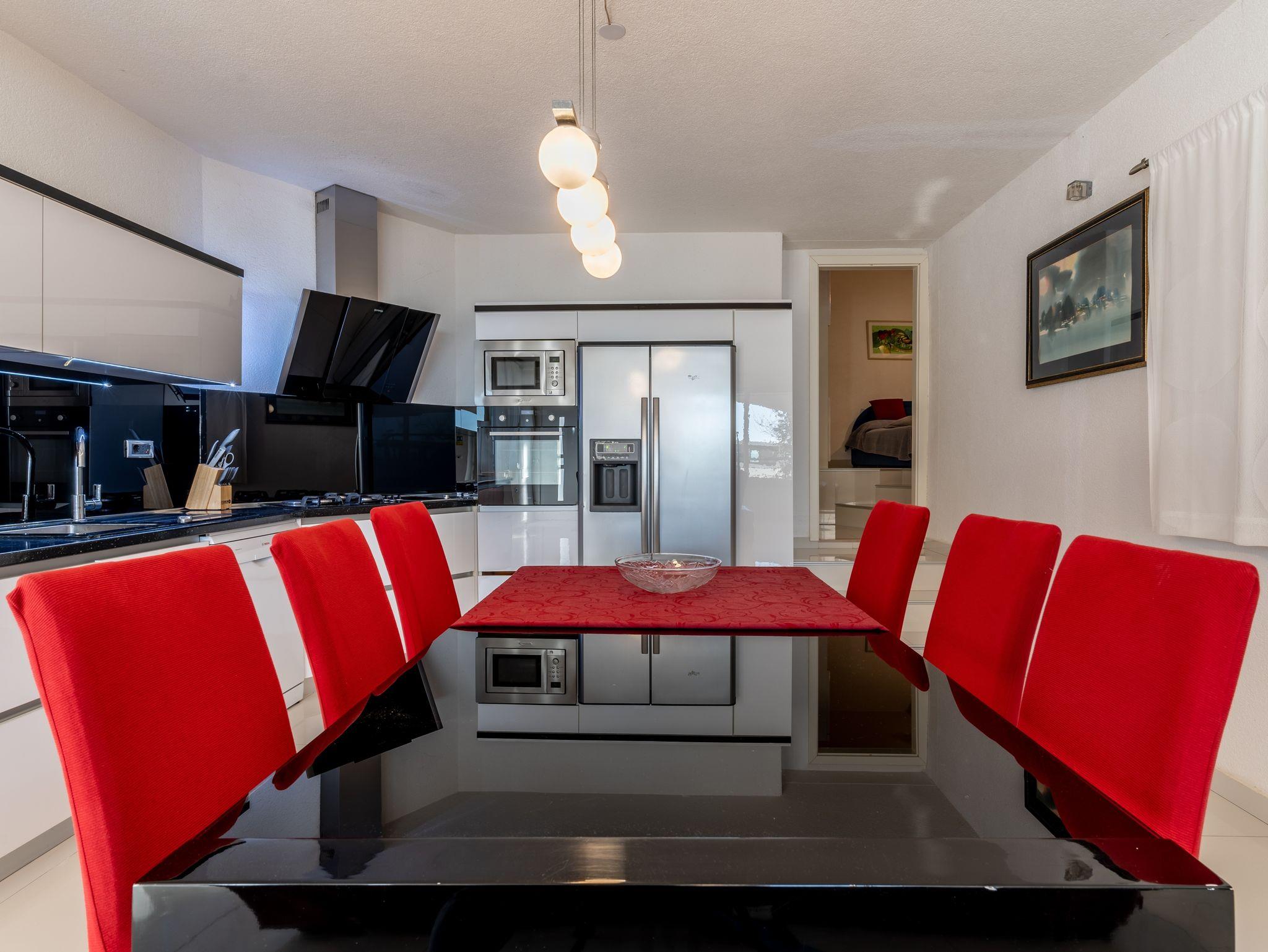 Haus bietet Platz für 12 Gäste. Die Betten sind in Schlafzimmern, die es 6 gibt, innerhalb einer Gesamtfläche von 182m2, angeordnet. Die Gäste haben eine eigene Terrasse zur Verfügung, auf der sie in warmen Sommernächten genießen können. Das Haus bietet Meerblick. Für vollen Genuss und Entspannung gibt es einen privaten Grill für Gäste dieser Unterkunft. Während ihres Aufenthalts können sich Gäste im privaten Schwimmbad entspannen. IM PREIS INBEGRIFFEN: Kurtaxe, Endreinigung, Klimatisierung, Pool, Parkplatz, Internet, Kinderbett, Bügeleisen, Bügelbrett, Föhn. Die Verfügbarkeit zusätzlicher Dienstleistungen in Ihrem reservierten Termin und die Preise derselben (falls nicht aufgeführt) müssen im Voraus überprüft werden. Zusätzliche Dienstleistungen die in der Zahlungsaufforderung nicht aufgeführt sind werden direkt beim Vermieter bezahlt, angenommen der Gast nutzt auch diese.
