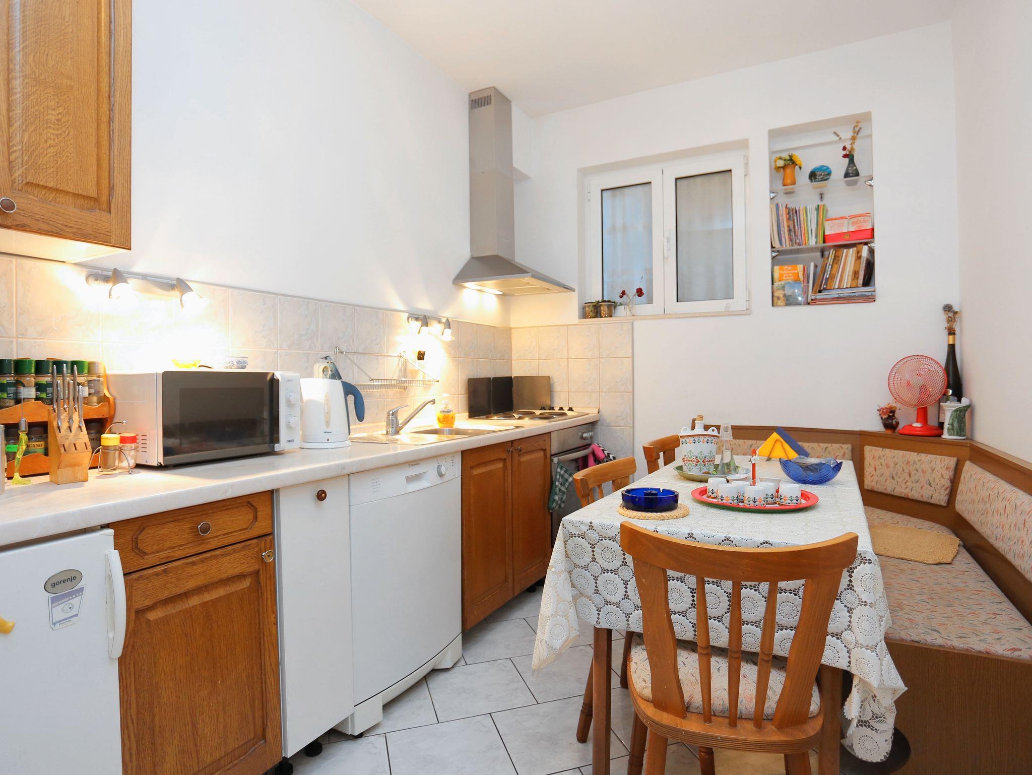 Ferienwohnung bietet Platz für 9 Gäste. Die Betten sind in Schlafzimmern, die es 3 gibt, innerhalb einer Gesamtfläche von 70m2, angeordnet. Die Gäste haben eine eigene Terrasse zur Verfügung, auf der sie in warmen Sommernächten genießen können. Das Apartment bietet Meerblick. Es ist erlaubt, Speisen auf dem Gemeinschafts-Grill vorzubereiten. In der Unterkunftseinheit besteht die Möglichkeit des Mitbringens von Haustieren gegen Aufpreis. IM PREIS INBEGRIFFEN: Kurtaxe, Endreinigung, Klimatisierung, Parkplatz, Internet, Kinderbett, Bügeleisen, Bügelbrett, Föhn. VERBINDLICHE ZUSÄTZLICHE KOSTEN: Aufzahlung für Kurzaufenthalte (prozentualer Zuschlag pro Nächtigungsanzahl: 30% - 1, 20% - 2, 10% - 3). UNVERBINDLICHE ZUSÄTZLICHE KOSTEN: Haustiere (7,00 € pro Nacht). Die Verfügbarkeit zusätzlicher Dienstleistungen in Ihrem reservierten Termin und die Preise derselben (falls nicht aufgeführt) müssen im Voraus überprüft werden. Zusätzliche Dienstleistungen die in der Zahlungsaufforderung nicht aufgeführt sind werden direkt beim Vermieter bezahlt, angenommen der Gast nutzt auch diese.