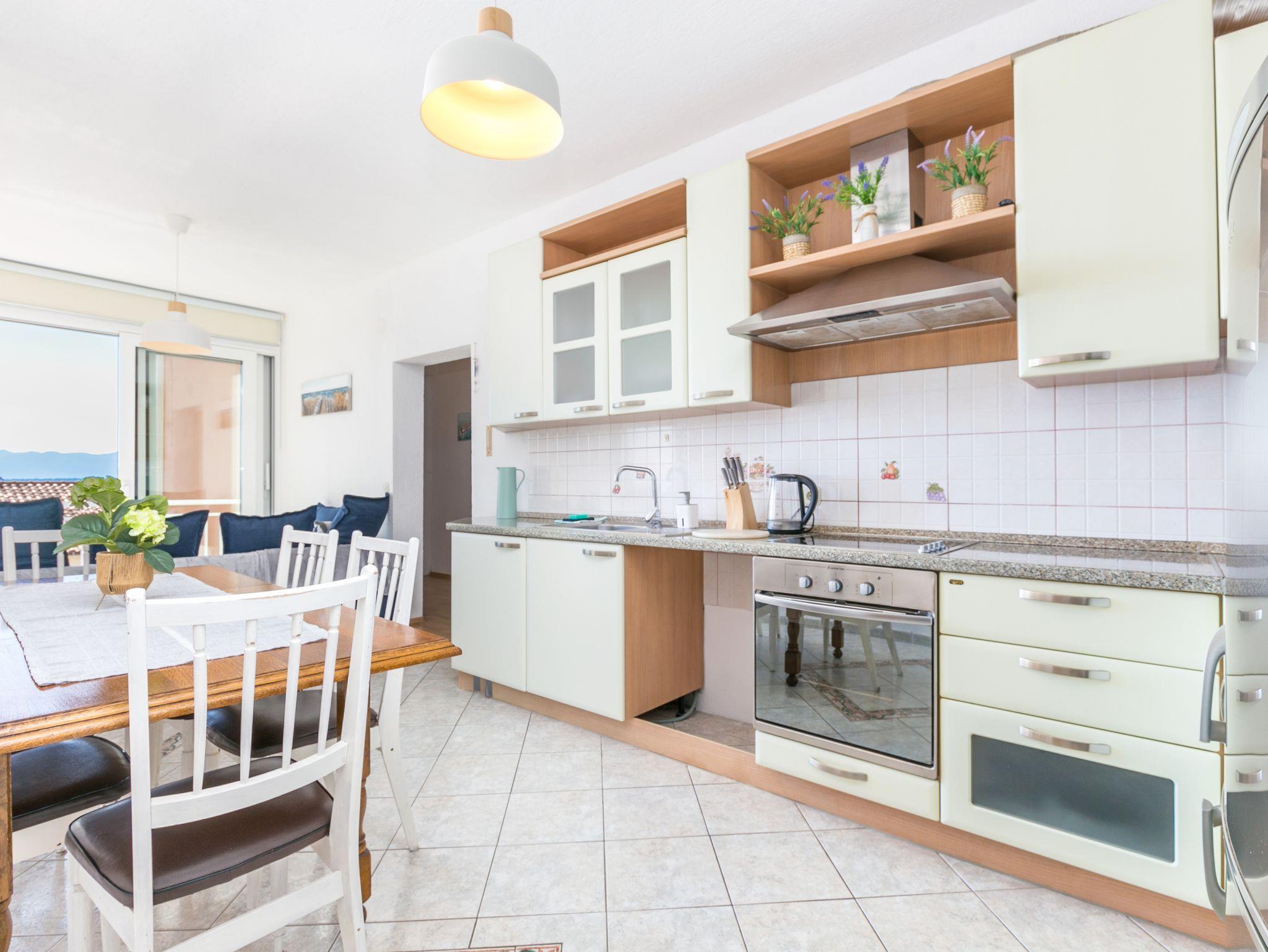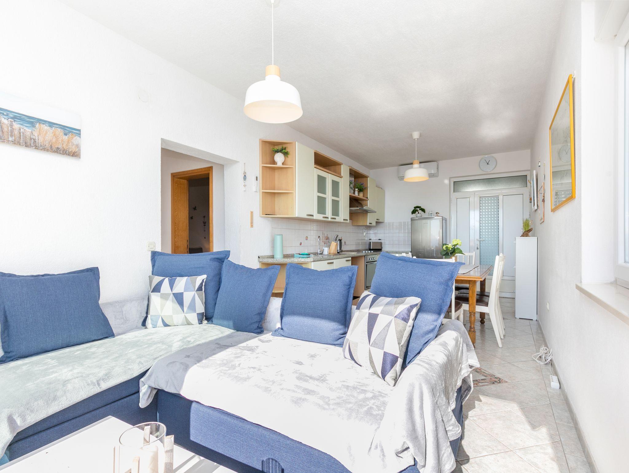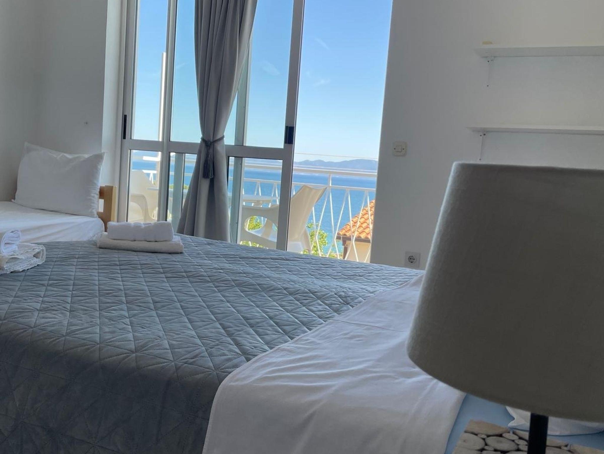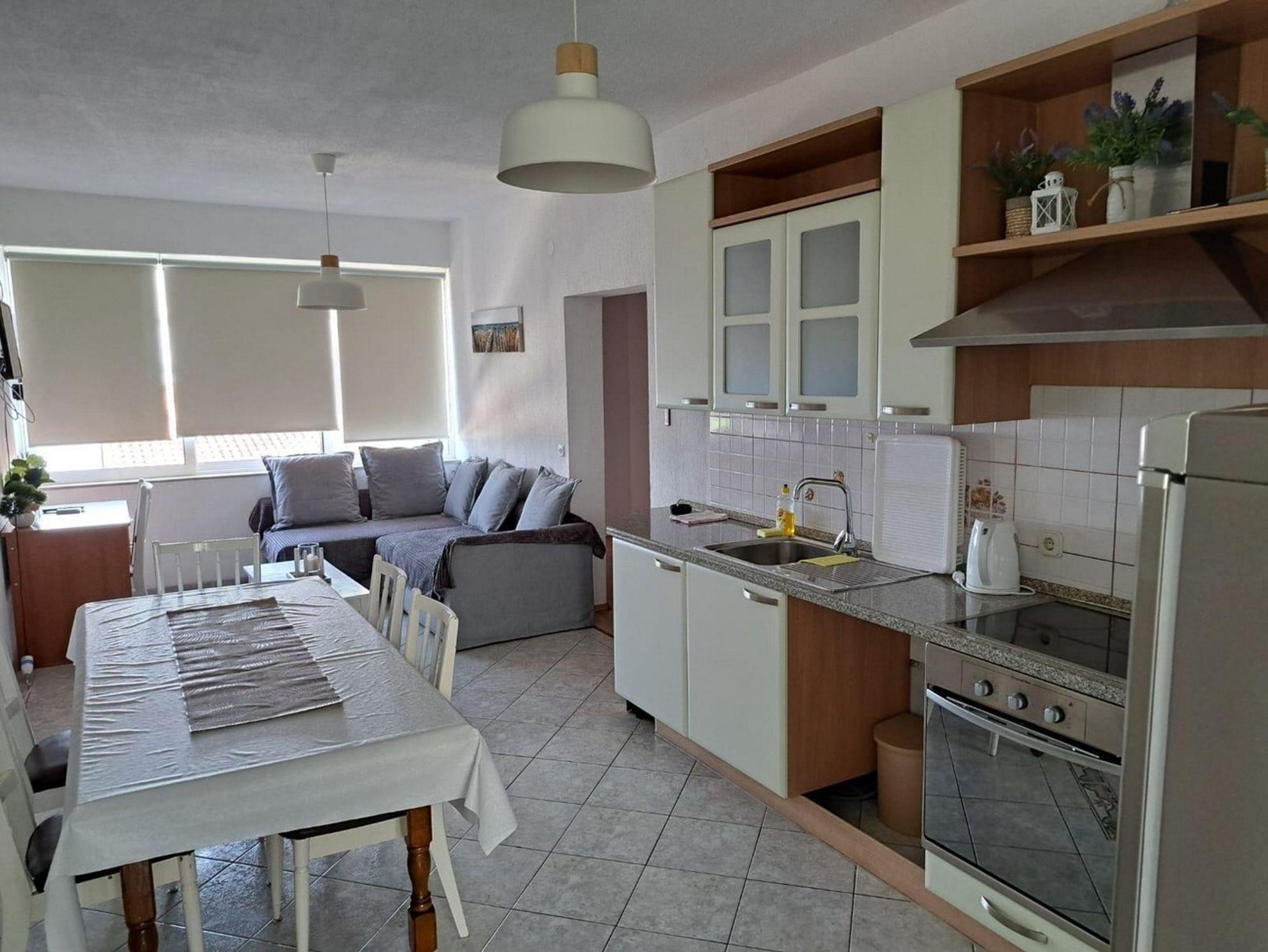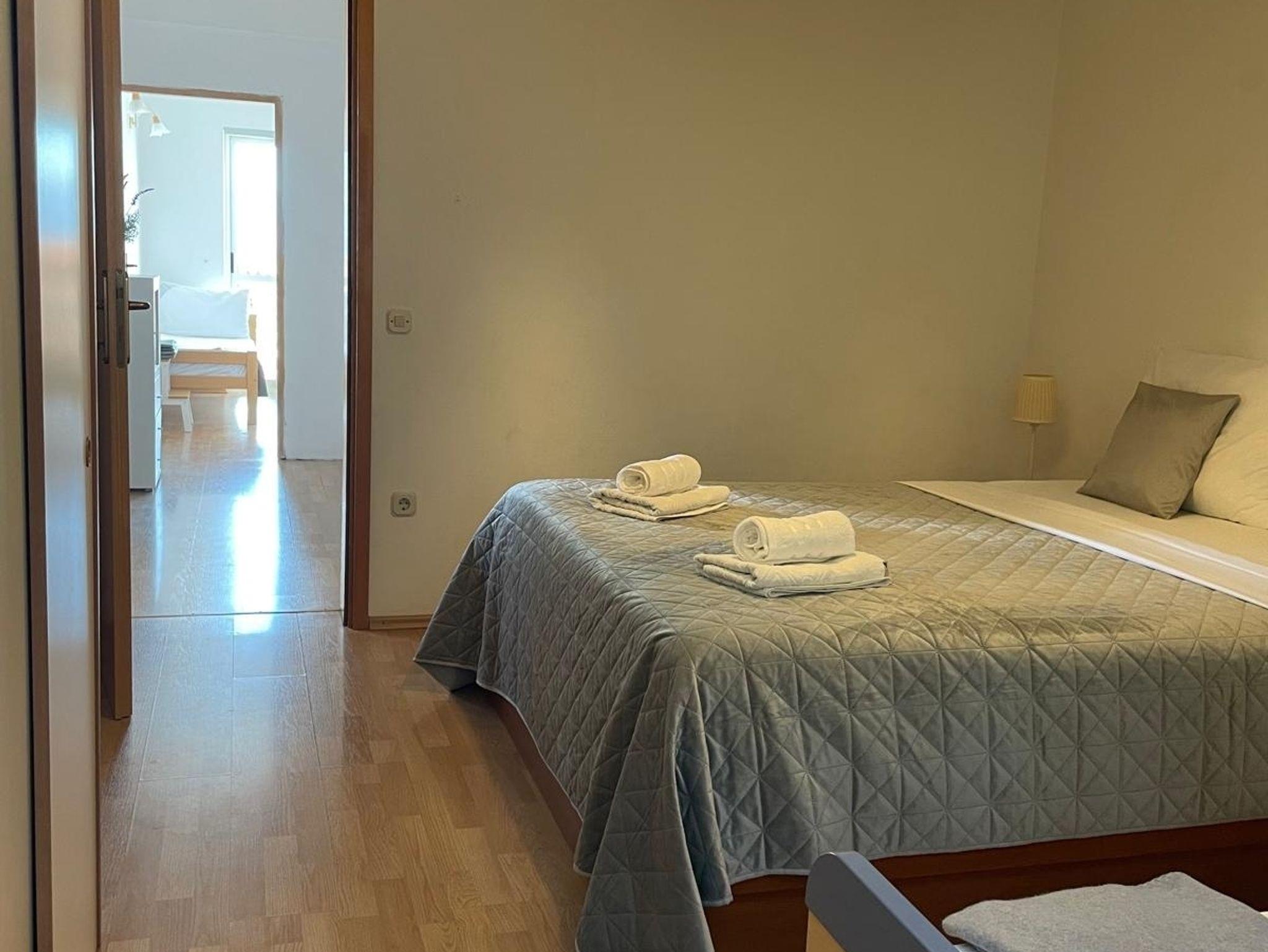Ferienwohnung bietet Platz für 8 Gäste. Die Betten sind in Schlafzimmern, die es 2 gibt, und in Wohnzimmer, innerhalb einer Gesamtfläche von 55m2, angeordnet. Die Gäste haben einen eigenen Balkon zur Verfügung, auf der sie in warmen Sommernächten genießen können. Das Apartment bietet Meerblick. Es ist erlaubt, Speisen auf dem Gemeinschafts-Grill vorzubereiten. IM PREIS INBEGRIFFEN: Kurtaxe, Endreinigung, Klimatisierung, Parkplatz, Internet, Wäschewaschen, Kinderbett, Bügeleisen, Bügelbrett. VERBINDLICHE ZUSÄTZLICHE KOSTEN: Aufzahlung für Kurzaufenthalte (prozentualer Zuschlag pro Nächtigungsanzahl: 30% - 1, 20% - 2, 10% - 3). Die Verfügbarkeit zusätzlicher Dienstleistungen in Ihrem reservierten Termin und die Preise derselben (falls nicht aufgeführt) müssen im Voraus überprüft werden. Zusätzliche Dienstleistungen die in der Zahlungsaufforderung nicht aufgeführt sind werden direkt beim Vermieter bezahlt, angenommen der Gast nutzt auch diese. Ermäßigung auf den Grundpreis: Gratistag 14=13 (bei einem Aufenthalt von 14 Tagen oder mehr erhalten Sie einen Gratistag für den Aufenthalt bis 31.12.26).