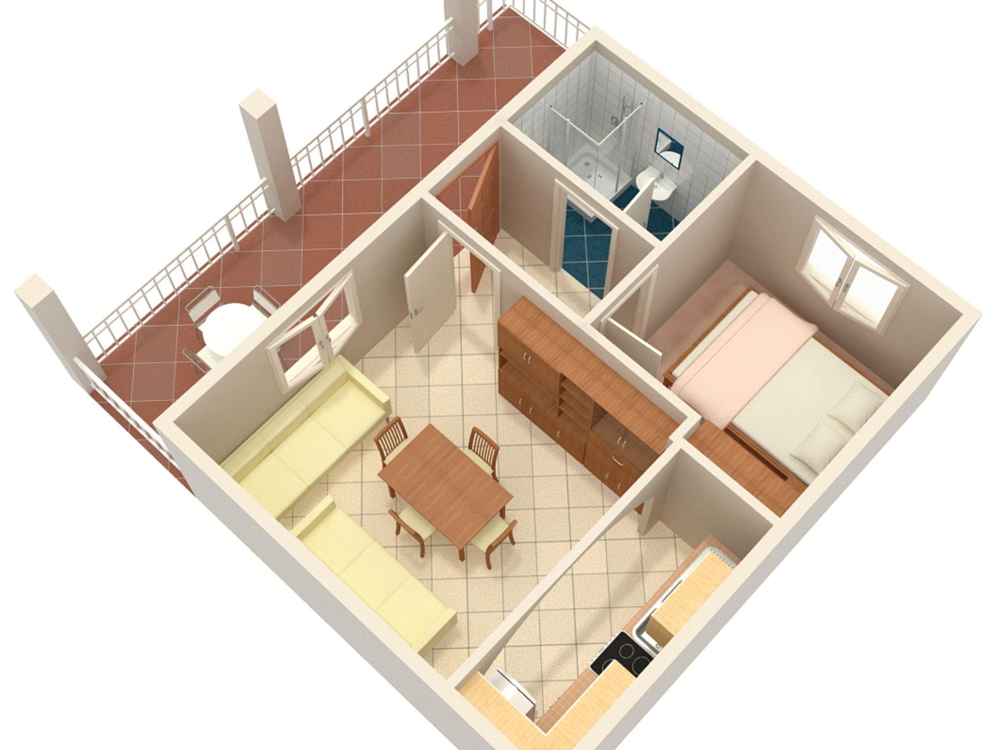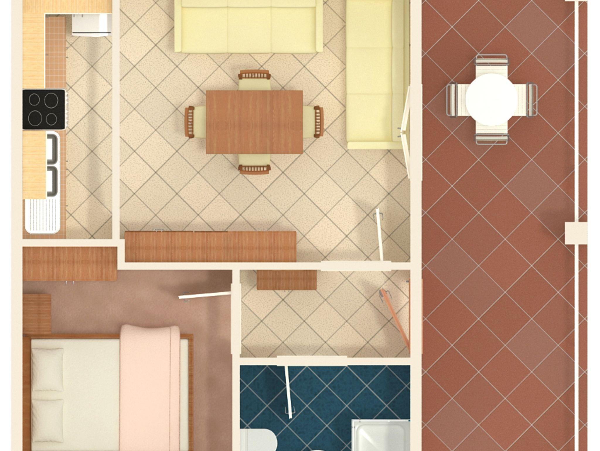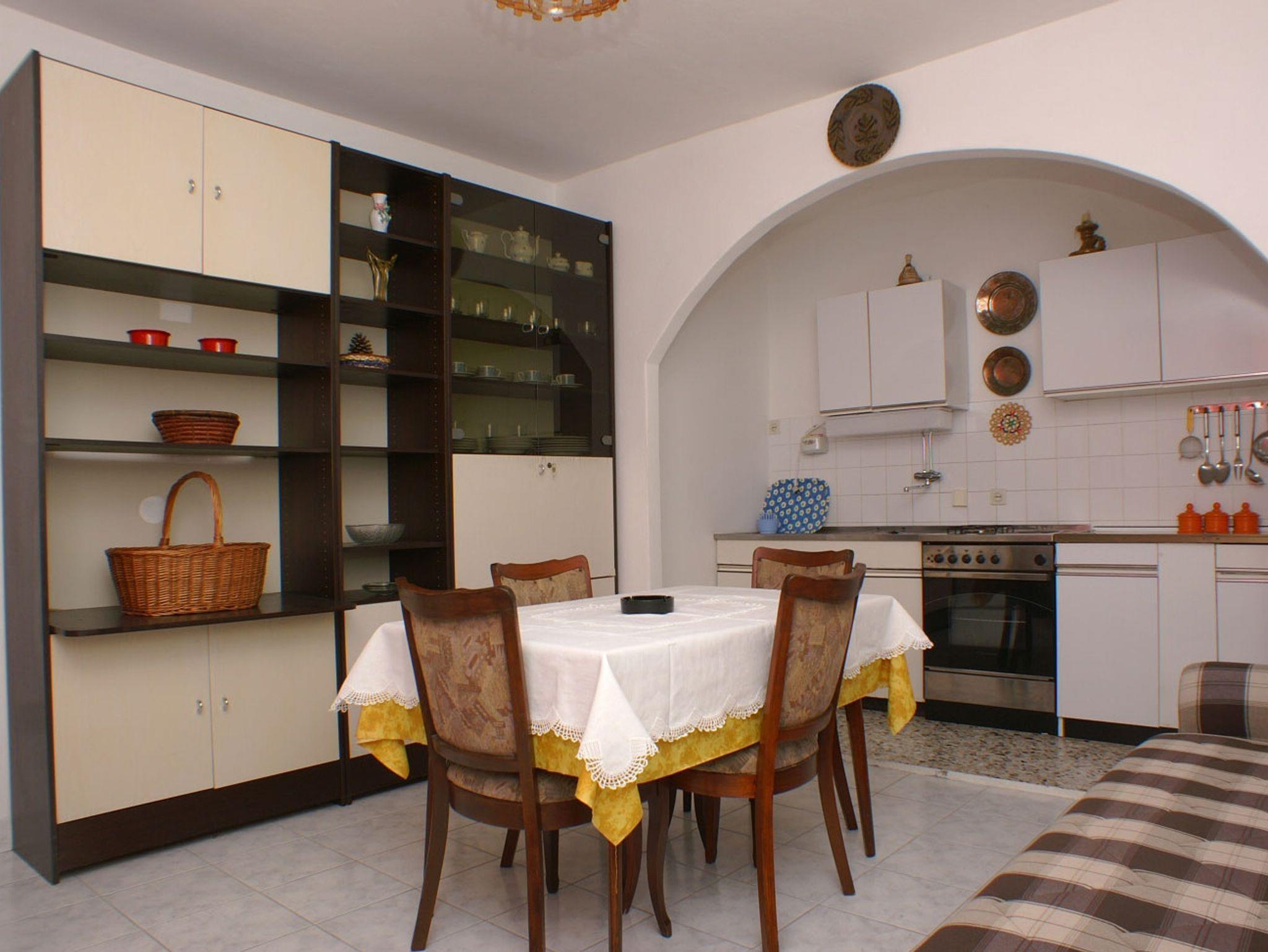 Ferienwohnung bietet Platz für 4 Gäste. Die Betten sind in Schlafzimmern, die es 1 gibt, und in Esszimmer, innerhalb einer Gesamtfläche von 32m2, angeordnet. Die Gäste haben eine eigene Terrasse zur Verfügung, auf der sie in warmen Sommernächten genießen können. Das Apartment bietet Meerblick. Es ist erlaubt, Speisen auf dem Gemeinschafts-Grill vorzubereiten. IM PREIS INBEGRIFFEN: Kurtaxe, Endreinigung, Klimatisierung, Parkplatz, Internet, Bügeleisen, Bügelbrett, Föhn, tragbarer Grill. Die Verfügbarkeit zusätzlicher Dienstleistungen in Ihrem reservierten Termin und die Preise derselben (falls nicht aufgeführt) müssen im Voraus überprüft werden. Zusätzliche Dienstleistungen die in der Zahlungsaufforderung nicht aufgeführt sind werden direkt beim Vermieter bezahlt, angenommen der Gast nutzt auch diese.