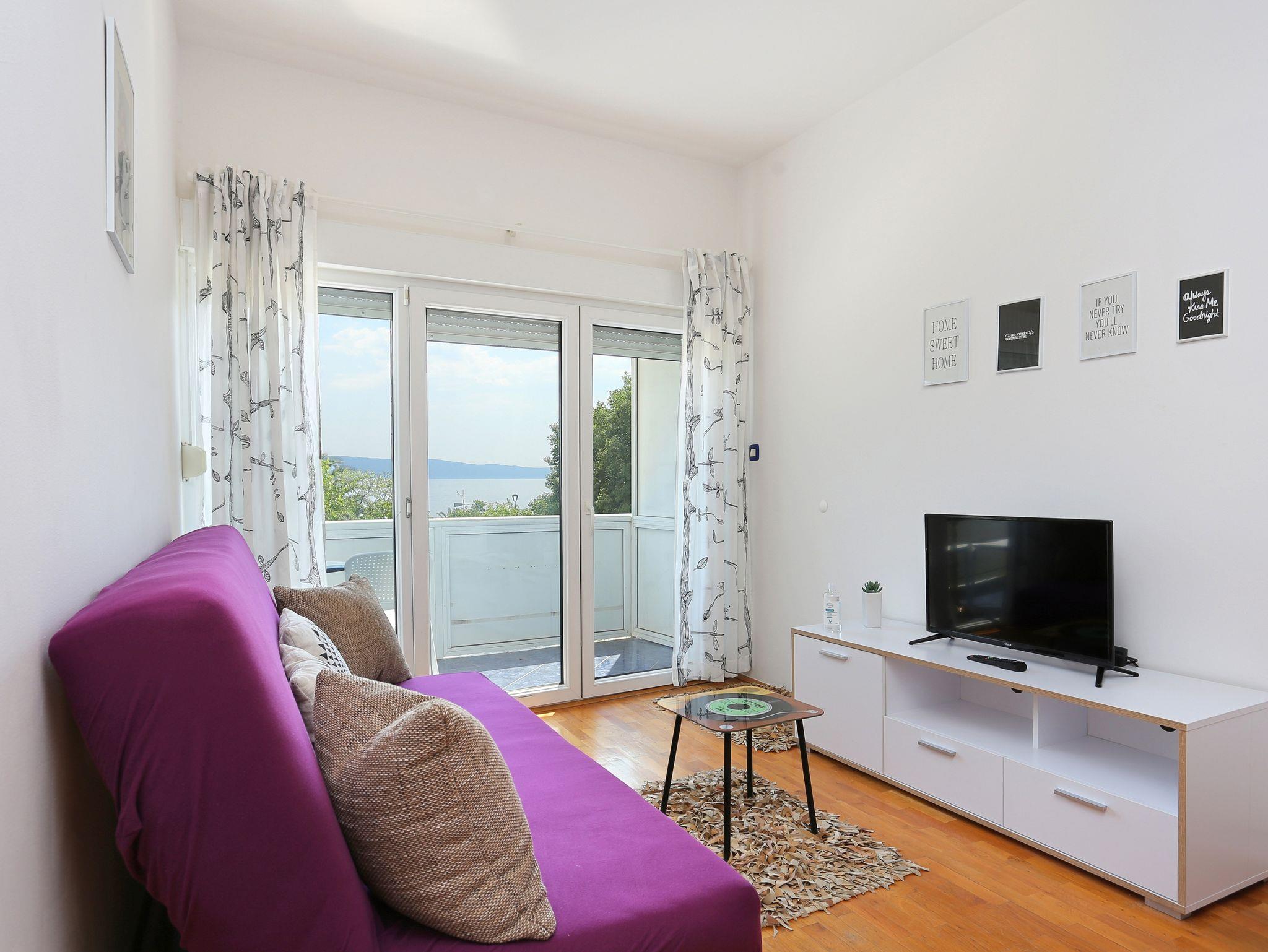 Ferienwohnung bietet Platz für 4 Gäste. Die Betten sind in Schlafzimmern, die es 1 gibt, und in Wohnzimmer, innerhalb einer Gesamtfläche von 30m2, angeordnet. Die Gäste haben einen eigenen Balkon zur Verfügung, auf der sie in warmen Sommernächten genießen können. Das Apartment bietet Meerblick. IM PREIS INBEGRIFFEN: Kurtaxe, Endreinigung, Klimatisierung, Parkplatz, Internet, Bügeleisen, Bügelbrett, Föhn. VERBINDLICHE ZUSÄTZLICHE KOSTEN: Aufzahlung für Kurzaufenthalte (prozentualer Zuschlag pro Nächtigungsanzahl: 30% - 1, 20% - 2, 10% - 3). UNVERBINDLICHE ZUSÄTZLICHE KOSTEN: Frühstück (7,00 €, 50% Nachlass für Kinder zwischen 4 und 12 Jahren, Kinder bis 4 Jahre sind frei.), Halbpension (15,00 €, 50% Nachlass für Kinder zwischen 4 und 12 Jahren, Kinder bis 4 Jahre sind frei.), Vollpension (23,00 €, 50% Nachlass für Kinder zwischen 4 und 12 Jahren, Kinder bis 4 Jahre sind frei.), Zusatzbett (10,00 € pro Nacht). Die Verfügbarkeit zusätzlicher Dienstleistungen in Ihrem reservierten Termin und die Preise derselben (falls nicht aufgeführt) müssen im Voraus überprüft werden. Zusätzliche Dienstleistungen die in der Zahlungsaufforderung nicht aufgeführt sind werden direkt beim Vermieter bezahlt, angenommen der Gast nutzt auch diese. Ermäßigung auf den Grundpreis: Gratistag 14=13 (bei einem Aufenthalt von 14 Tagen oder mehr erhalten Sie einen Gratistag für den Aufenthalt bis 31.12.26).