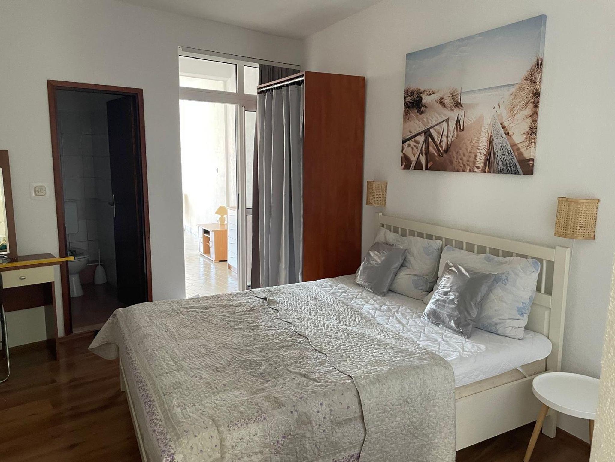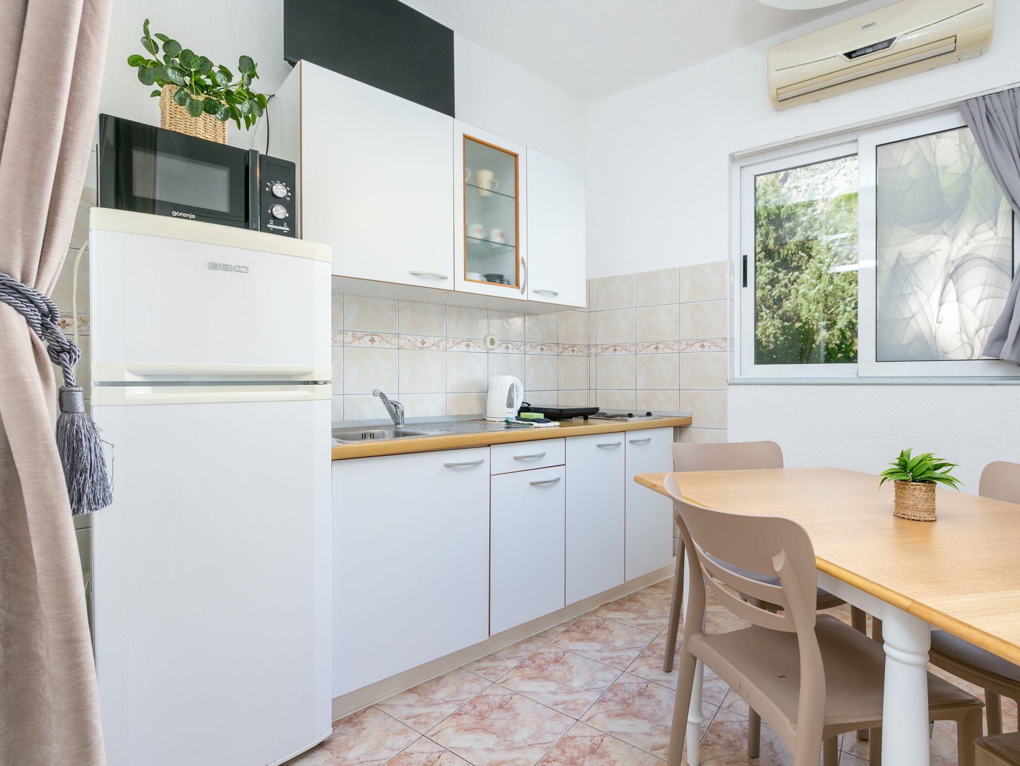 Ferienwohnung bietet Platz für 5 Gäste. Die Betten sind in Schlafzimmern, die es 1 gibt, und in Wohnzimmer und Esszimmer, innerhalb einer Gesamtfläche von 29m2, angeordnet. Es ist erlaubt, Speisen auf dem Gemeinschafts-Grill vorzubereiten. Die reservierte Unterkunftseinheit verfügt über einen gemeinsame Terrasse. IM PREIS INBEGRIFFEN: Kurtaxe, Endreinigung, Klimatisierung, Parkplatz, Internet, Wäschewaschen, Kinderbett, Bügeleisen, Bügelbrett. VERBINDLICHE ZUSÄTZLICHE KOSTEN: Aufzahlung für Kurzaufenthalte (prozentualer Zuschlag pro Nächtigungsanzahl: 30% - 1, 20% - 2, 10% - 3). Die Verfügbarkeit zusätzlicher Dienstleistungen in Ihrem reservierten Termin und die Preise derselben (falls nicht aufgeführt) müssen im Voraus überprüft werden. Zusätzliche Dienstleistungen die in der Zahlungsaufforderung nicht aufgeführt sind werden direkt beim Vermieter bezahlt, angenommen der Gast nutzt auch diese. Ermäßigung auf den Grundpreis: Gratistag 14=13 (bei einem Aufenthalt von 14 Tagen oder mehr erhalten Sie einen Gratistag für den Aufenthalt bis 31.12.26).