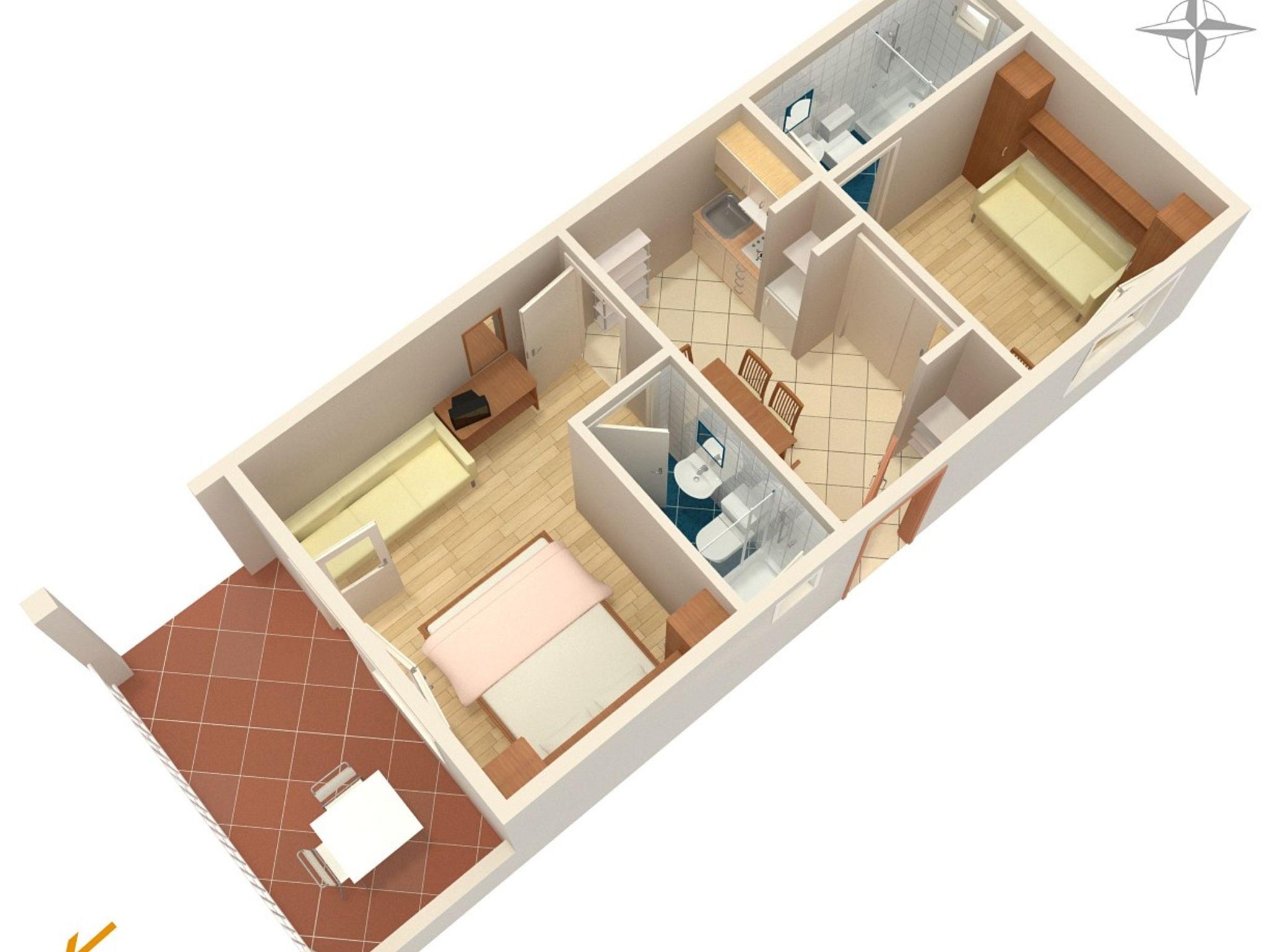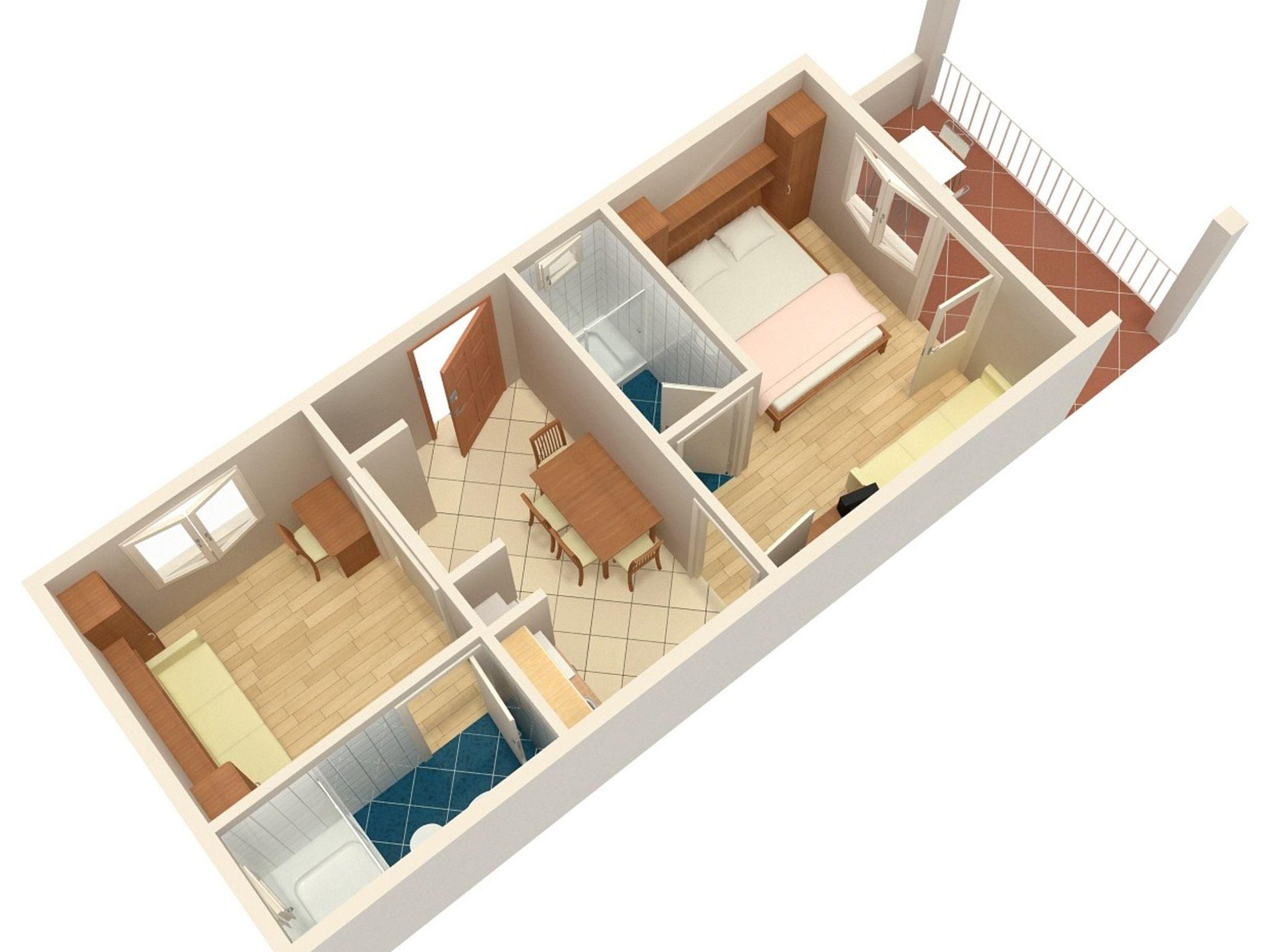 Ferienwohnung bietet Platz für 4 Gäste. Die Betten sind in Schlafzimmern, die es 1 gibt, und in Wohnzimmer, innerhalb einer Gesamtfläche von 33m2, angeordnet. Die Gäste haben eine eigene Terrasse zur Verfügung, auf der sie in warmen Sommernächten genießen können. Das Apartment bietet Meerblick. Es ist erlaubt, Speisen auf dem Gemeinschafts-Grill vorzubereiten. In der Unterkunftseinheit besteht die Möglichkeit des Mitbringens von Haustieren gegen Aufpreis. IM PREIS INBEGRIFFEN: Kurtaxe, Endreinigung, Parkplatz, Internet, Kinderbett, Föhn. VERBINDLICHE ZUSÄTZLICHE KOSTEN: Aufzahlung für Kurzaufenthalte (prozentualer Zuschlag pro Nächtigungsanzahl: 30% - 1, 20% - 2, 10% - 3). UNVERBINDLICHE ZUSÄTZLICHE KOSTEN: Klimatisierung (5,00 € pro Nacht), Wäschewaschen (4,00 € Waschen), Haustiere (7,00 € pro Nacht), Zusatzbett (20,00 € pro Nacht). Die Verfügbarkeit zusätzlicher Dienstleistungen in Ihrem reservierten Termin und die Preise derselben (falls nicht aufgeführt) müssen im Voraus überprüft werden. Zusätzliche Dienstleistungen die in der Zahlungsaufforderung nicht aufgeführt sind werden direkt beim Vermieter bezahlt, angenommen der Gast nutzt auch diese.