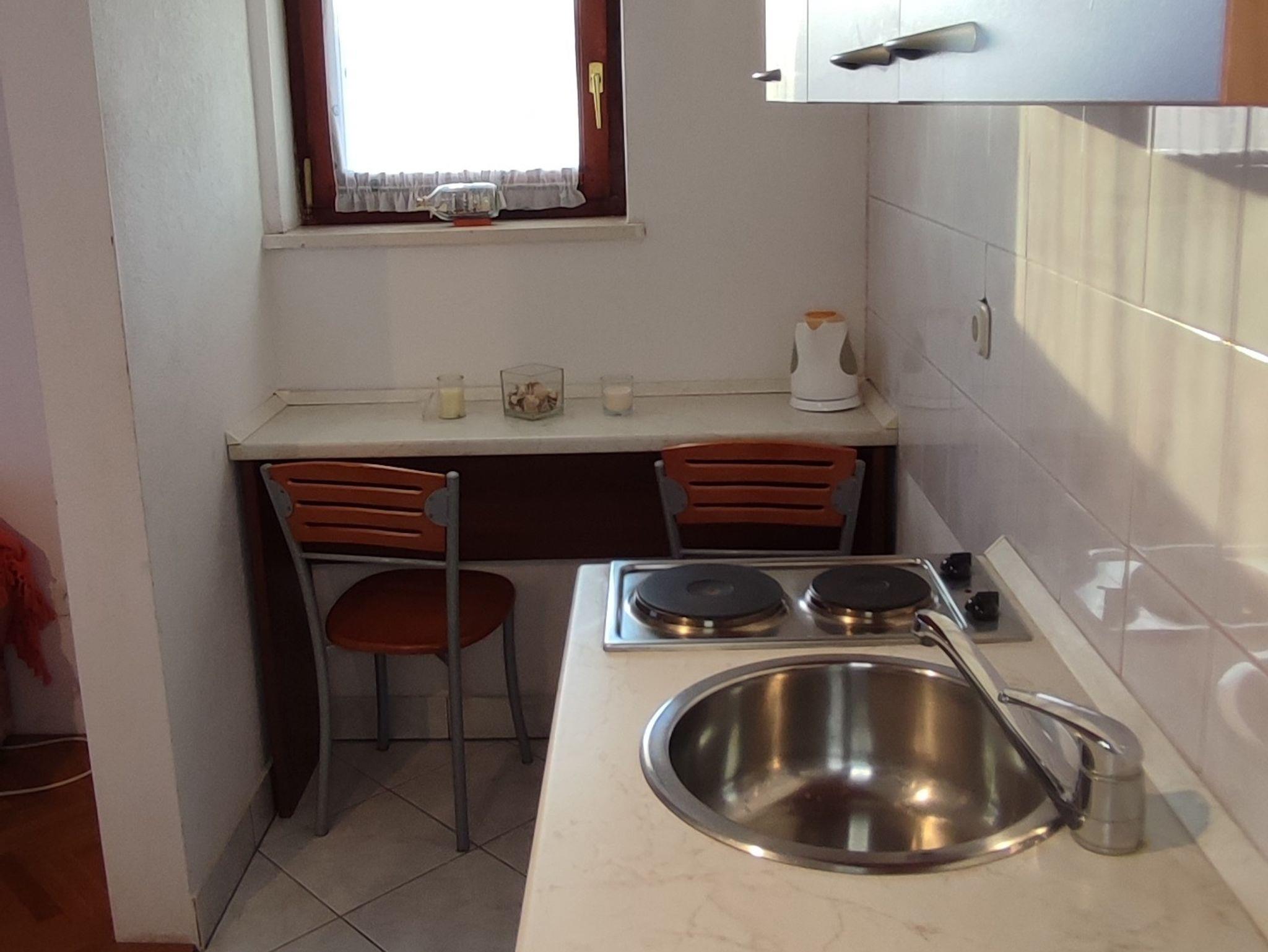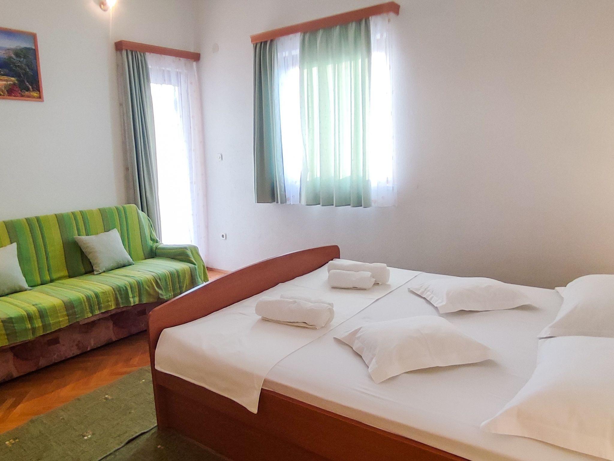 Ferienwohnung bietet Platz für 4 Gäste. Die Betten sind in Schlafzimmern, die es 1 gibt, und in Wohnzimmer, innerhalb einer Gesamtfläche von 50m2, angeordnet. Die Gäste haben eine eigene Terrasse zur Verfügung, auf der sie in warmen Sommernächten genießen können. Das Apartment bietet Meerblick. Es ist erlaubt, Speisen auf dem Gemeinschafts-Grill vorzubereiten. IM PREIS INBEGRIFFEN: Kurtaxe, Endreinigung, Klimatisierung, Parkplatz, Internet, Bügeleisen, Bügelbrett, Föhn. VERBINDLICHE ZUSÄTZLICHE KOSTEN: Aufzahlung für Kurzaufenthalte (prozentualer Zuschlag pro Nächtigungsanzahl: 30% - 1, 20% - 2, 10% - 3). Die Verfügbarkeit zusätzlicher Dienstleistungen in Ihrem reservierten Termin und die Preise derselben (falls nicht aufgeführt) müssen im Voraus überprüft werden. Zusätzliche Dienstleistungen die in der Zahlungsaufforderung nicht aufgeführt sind werden direkt beim Vermieter bezahlt, angenommen der Gast nutzt auch diese.
