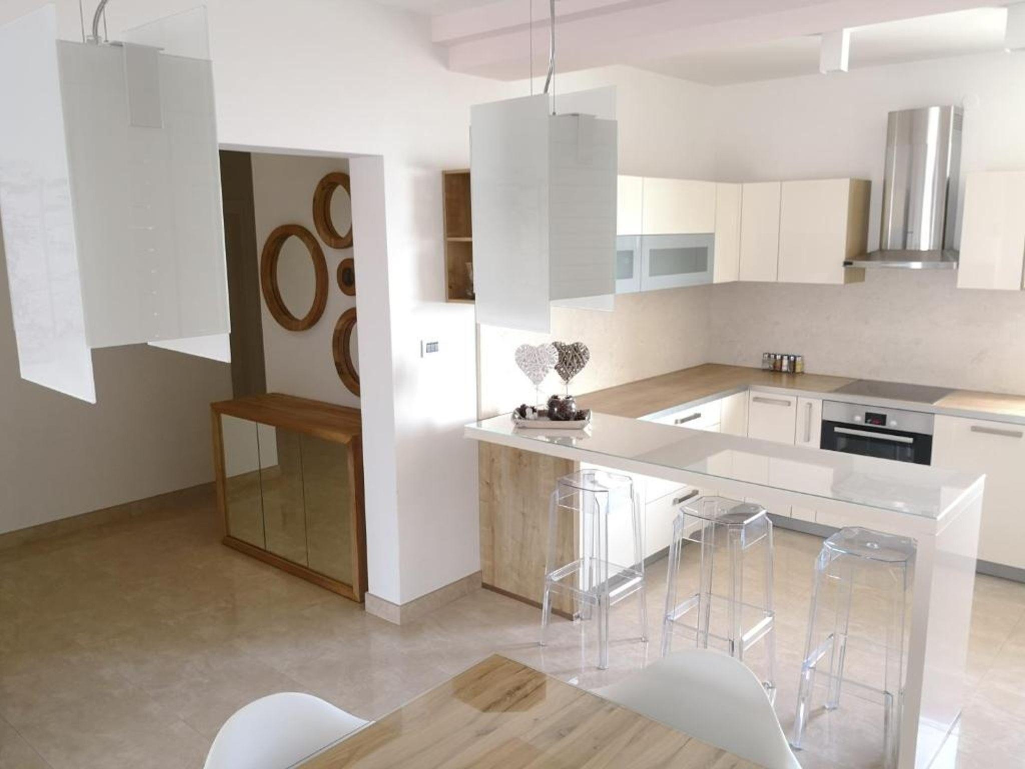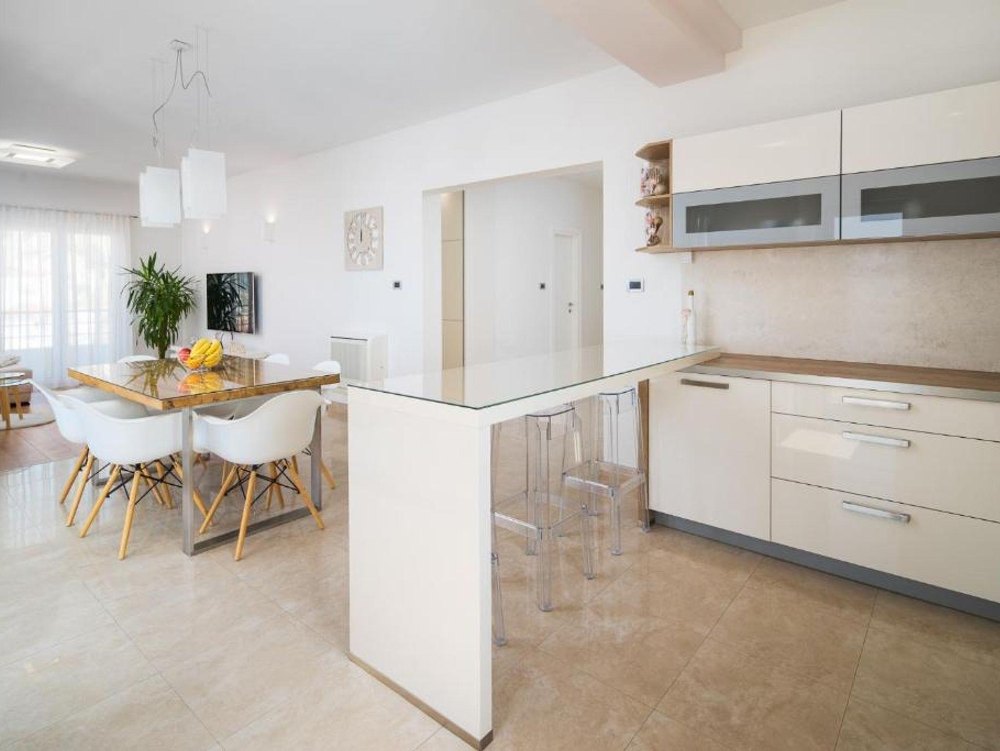 Ferienwohnung bietet Platz für 6 Gäste. Die Betten sind in Schlafzimmern, die es 3 gibt, innerhalb einer Gesamtfläche von 110m2, angeordnet. Die Gäste haben eine eigene Terrasse zur Verfügung, auf der sie in warmen Sommernächten genießen können. Das Apartment bietet Meerblick. Es ist erlaubt, Speisen auf dem Gemeinschafts-Grill vorzubereiten. IM PREIS INBEGRIFFEN: Kurtaxe, Endreinigung, Klimatisierung, Garage, Internet, Bügeleisen, Bügelbrett, Föhn. Die Verfügbarkeit zusätzlicher Dienstleistungen in Ihrem reservierten Termin und die Preise derselben (falls nicht aufgeführt) müssen im Voraus überprüft werden. Zusätzliche Dienstleistungen die in der Zahlungsaufforderung nicht aufgeführt sind werden direkt beim Vermieter bezahlt, angenommen der Gast nutzt auch diese.