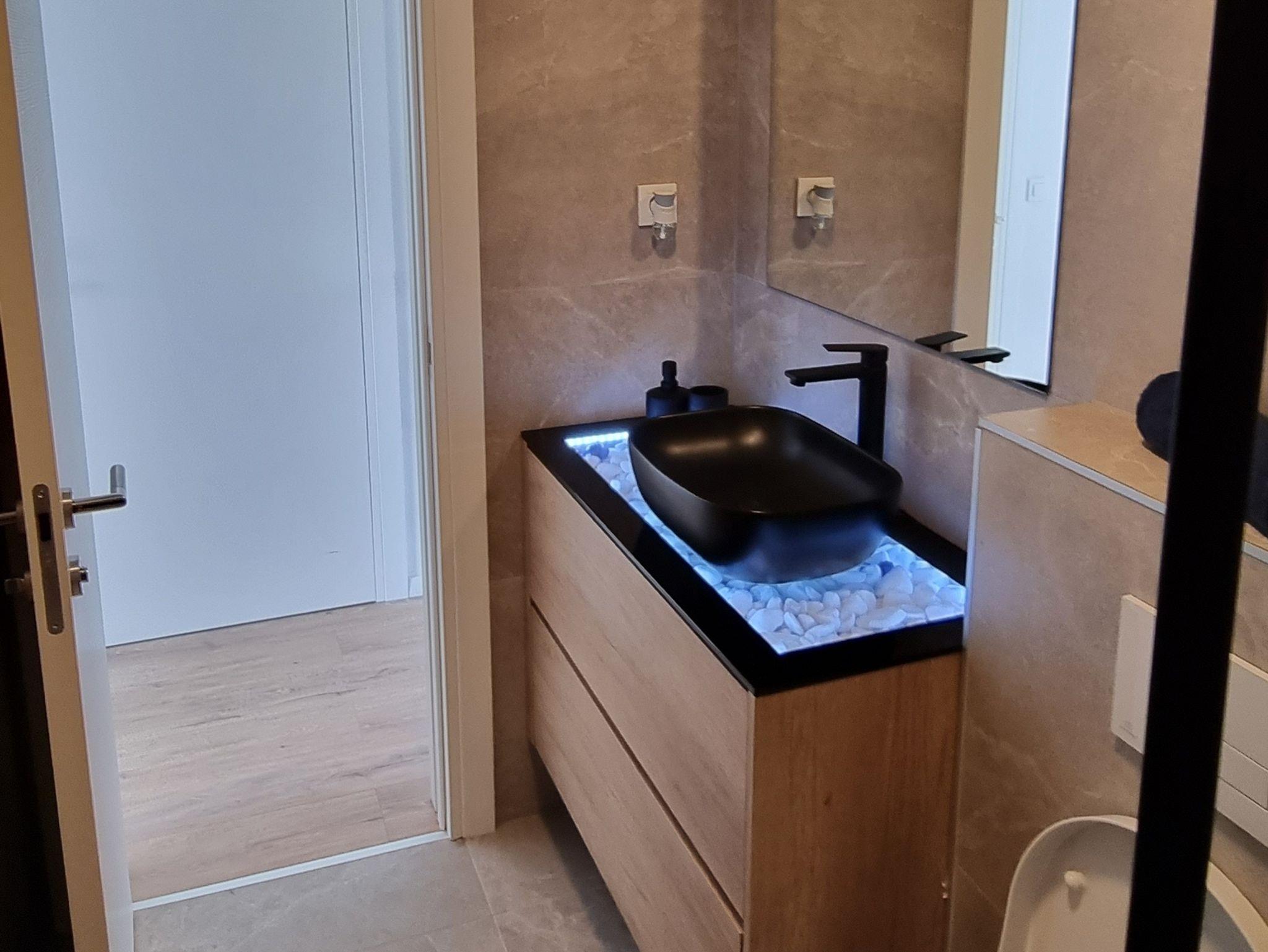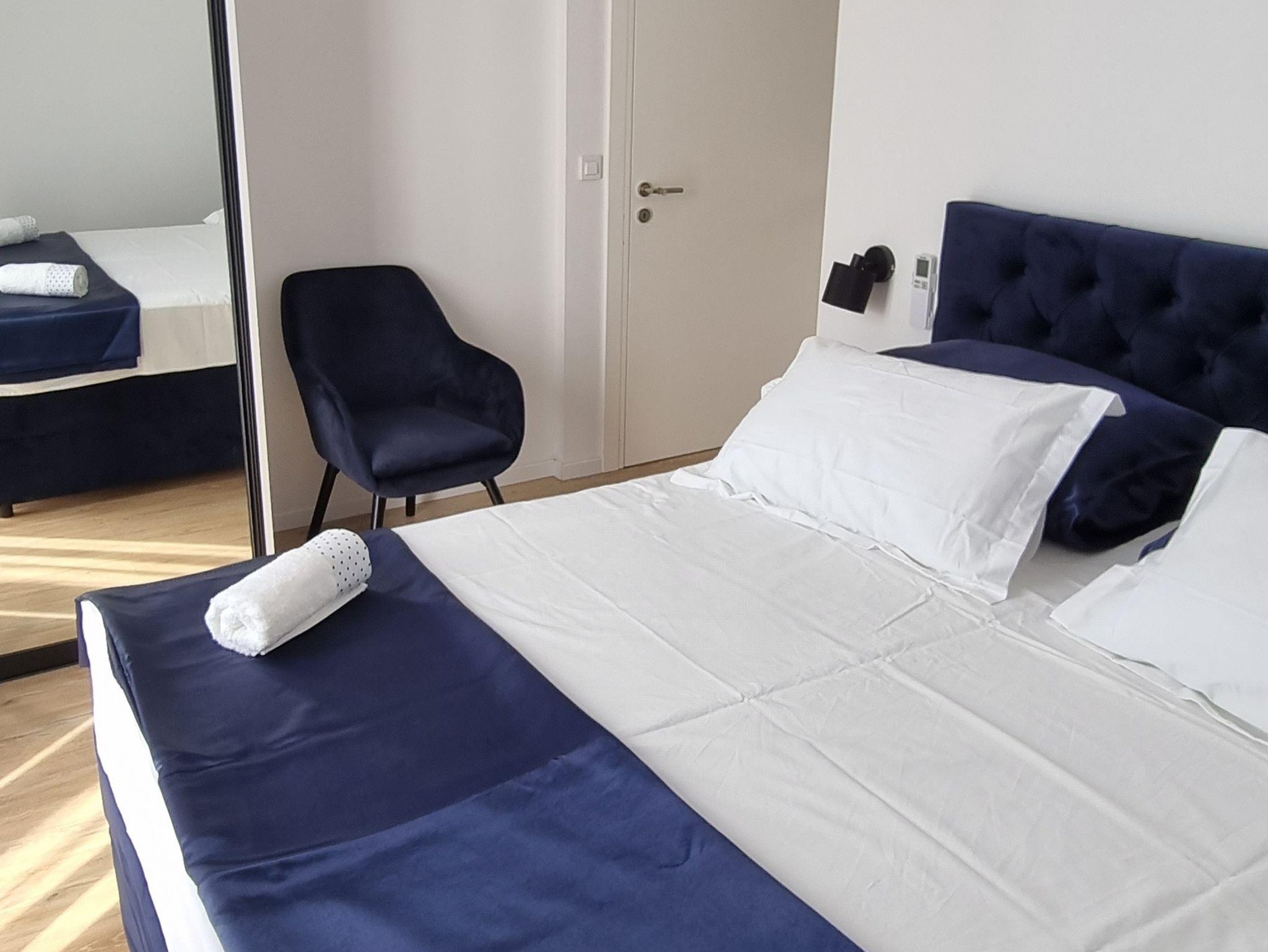 Ferienwohnung bietet Platz für 4 Gäste. Die Betten sind in Schlafzimmern, die es 1 gibt, und in Wohnzimmer, innerhalb einer Gesamtfläche von 54m2, angeordnet. Die Gäste haben eine eigene Terrasse zur Verfügung, auf der sie in warmen Sommernächten genießen können. Das Apartment bietet Meerblick. Es ist erlaubt, Speisen auf dem Gemeinschafts-Grill vorzubereiten. IM PREIS INBEGRIFFEN: Kurtaxe, Endreinigung, Klimatisierung, Parkplatz, Internet, Bügeleisen, Bügelbrett, Föhn, tragbarer Grill. Die Verfügbarkeit zusätzlicher Dienstleistungen in Ihrem reservierten Termin und die Preise derselben (falls nicht aufgeführt) müssen im Voraus überprüft werden. Zusätzliche Dienstleistungen die in der Zahlungsaufforderung nicht aufgeführt sind werden direkt beim Vermieter bezahlt, angenommen der Gast nutzt auch diese. Ermäßigung auf den Grundpreis: Gratistag 14=13 (bei einem Aufenthalt von 14 Tagen oder mehr erhalten Sie einen Gratistag für den Aufenthalt bis 31.12.26).