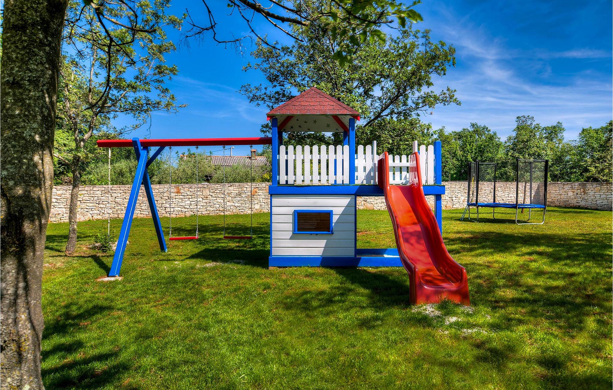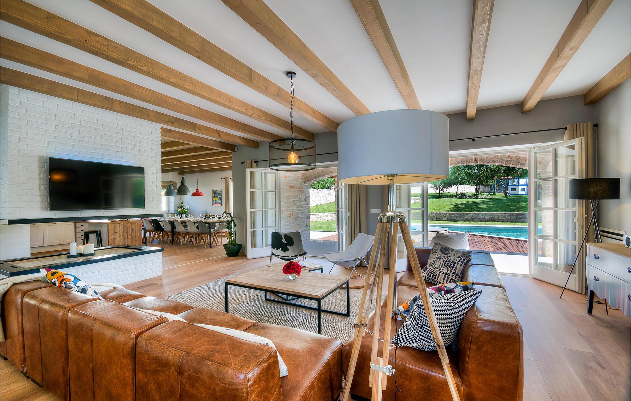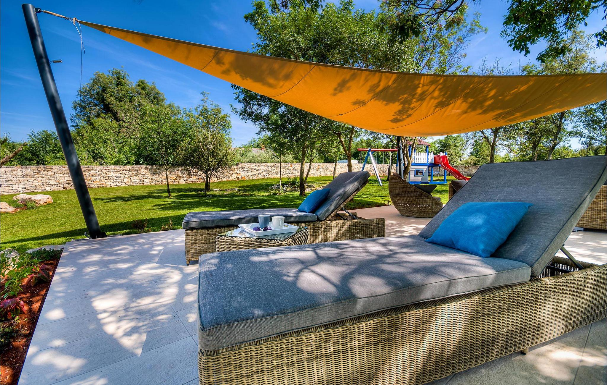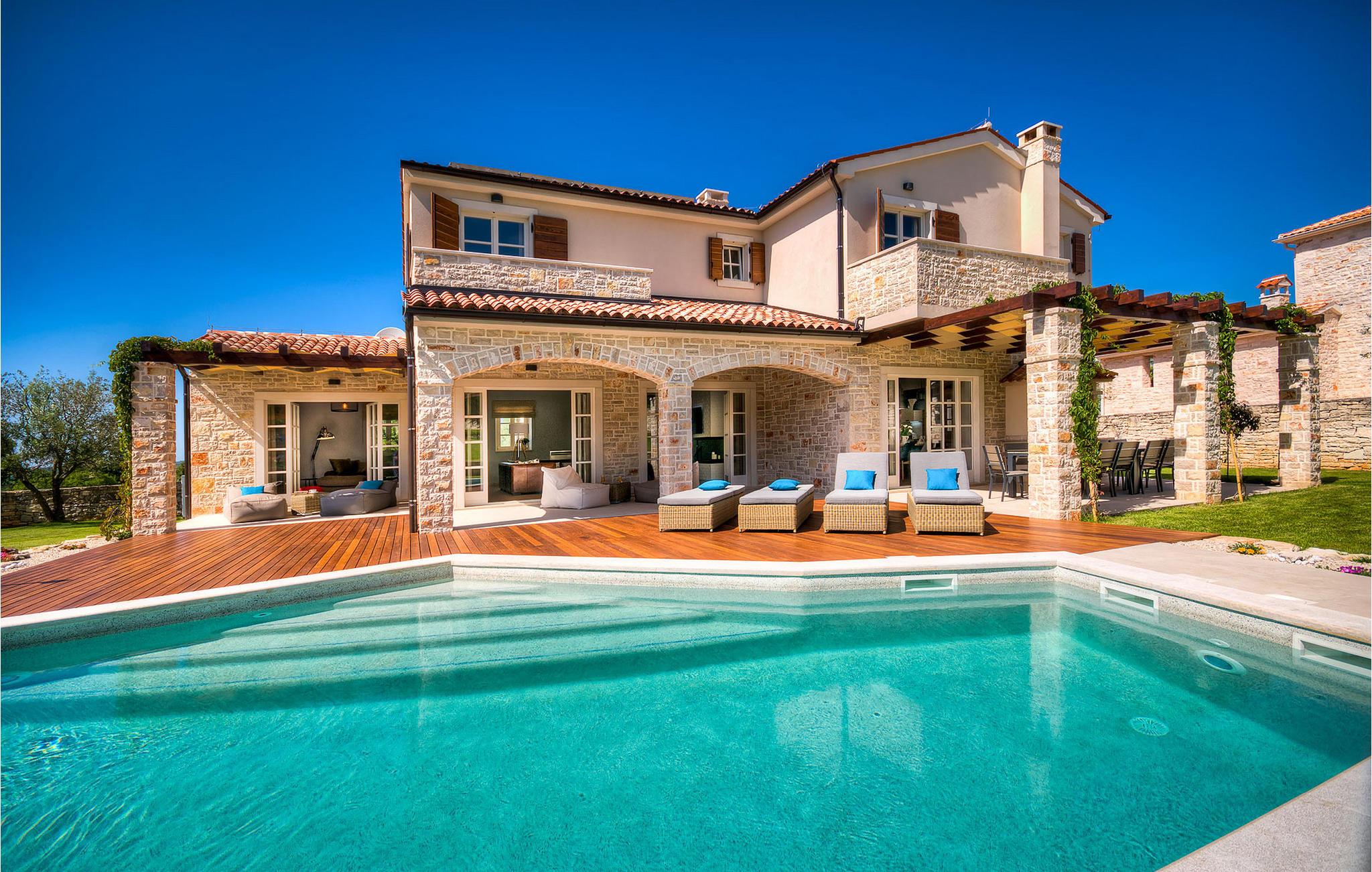 Diese charmante neu erbaute Villa ist das letzte Haus in einem kleinen traditionellen Steinhausdorf in der Nähe von Porec. Der Garten ist groß und umzäunt, um Ihnen Privatsphäre zu gewährleisten. Das Anwesen verfügt über einen schönen großen Pool, eine Lounge mit Blick auf das Haus und einen Kinderspielplatz.
