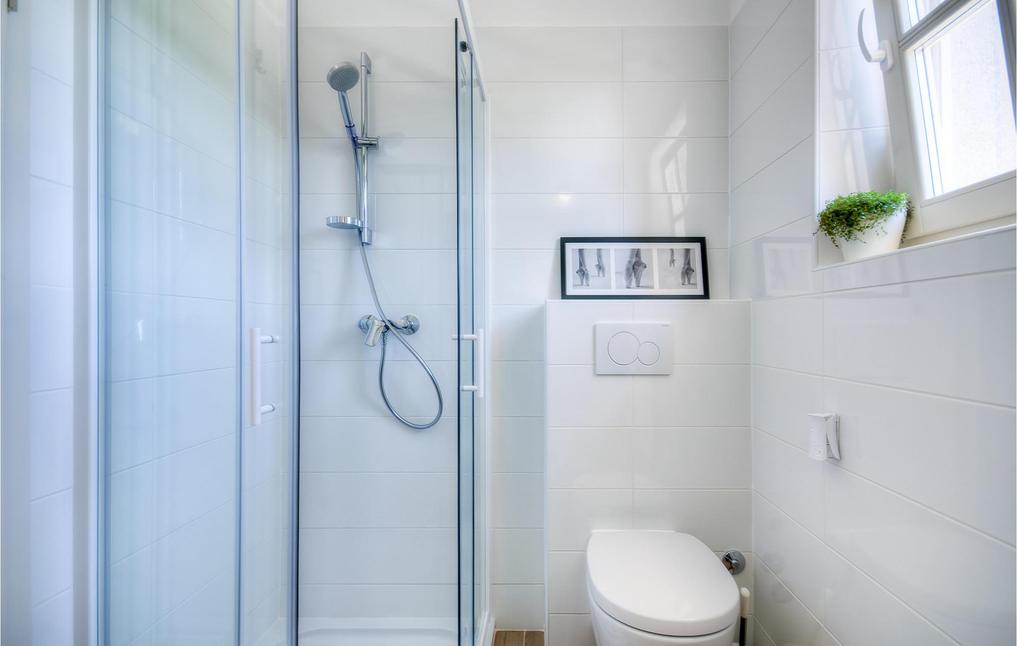 - WC mit warmem und kaltem Wasser, Dusche