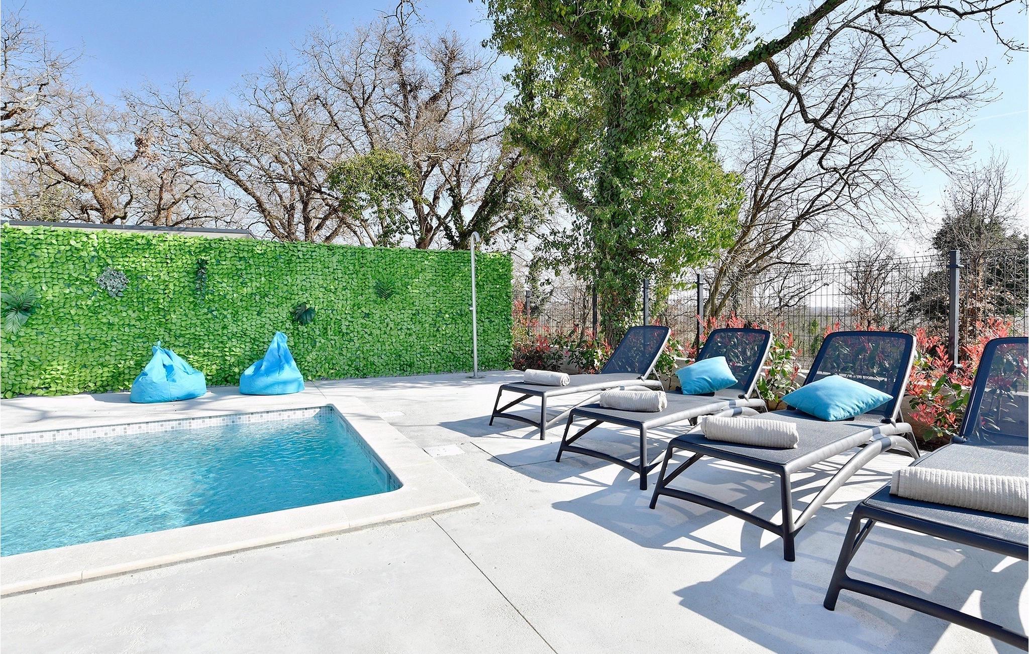 Sie werden sich in dieser gemütlichen Ferienoase wie zu Hause fühlen, während Sie sich am Pool sonnen oder zur Erfrischung schwimmen.