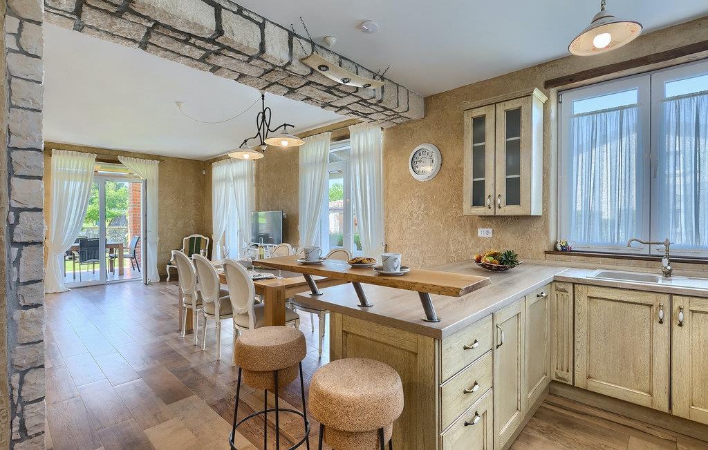 Die Villa Kornelija ist perfekt für diejenigen, die einen ruhigen und entspannenden Urlaub verbringen möchten. Ein privater Außenpool steht Ihnen zur Verfügung. Im Garten finden Sie einen überdachten Grillplatz und Essbereich. Hier können Sie entweder im Schatten entspannen oder leckere Mahlzeiten auf dem Grill zubereiten. Der Innenbereich der Villa wurde stilvoll eingerichtet, wobei viel Aufmerksamkeit den Details geschenkt wurde. Im Erdgeschoss befindet sich eine komplett ausgestattete Küche, die mit dem Wohnzimmer verbunden ist, von dem Sie die Terrasse betreten können. Auf der Etage befinden sich drei komfortable Schlafzimmer und ein Balkon. Drei Badezimmer sind in der Villa vorhanden. Die komplett klimatisierte Villa bietet WiFi und ein Parkplatz für bis zu 2 Autos. Buchen Sie die Villa Kornelija und entdecken Sie die Schönheiten Istriens!