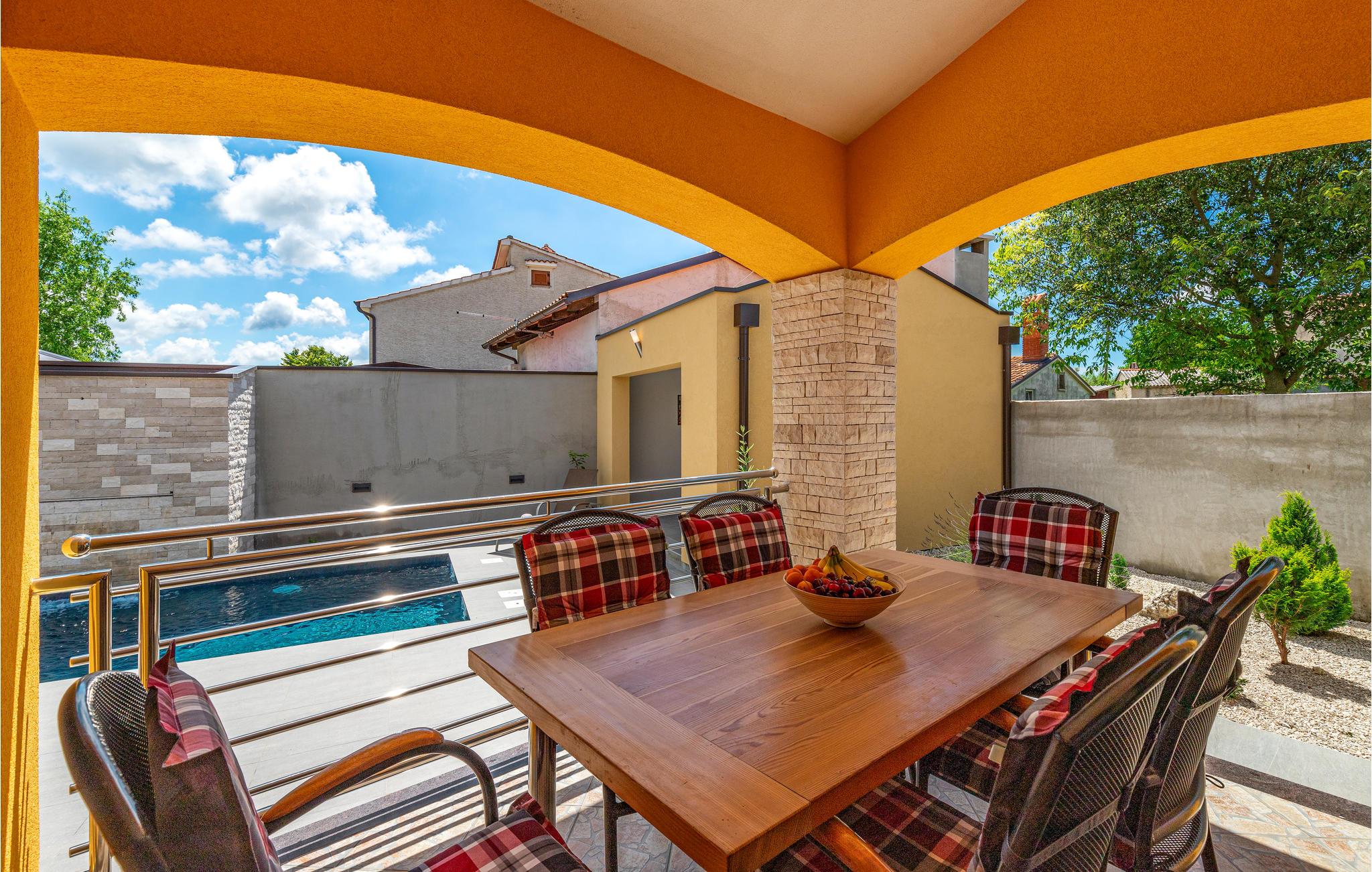 Im Ort Micetici, nahe der Stadt Porec, befindet sich dieses schöne Ferienhaus. Das modern gestaltete Interieur garantiert einen angenehmen und komfortablen Aufenthalt während Ihres Urlaubs. Das Naturgrundstück lädt Sie zum Entspannen ein. Bereiten Sie auch köstliche Mahlzeiten am Grill zu, der im Sommer nicht fehlen sollte. Der bemerkenswerte Pool mit Wasserfall wird Badeurlauber Jung und Alt begeistern.
