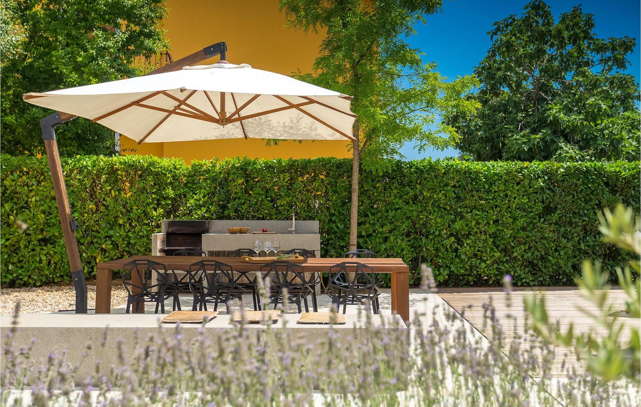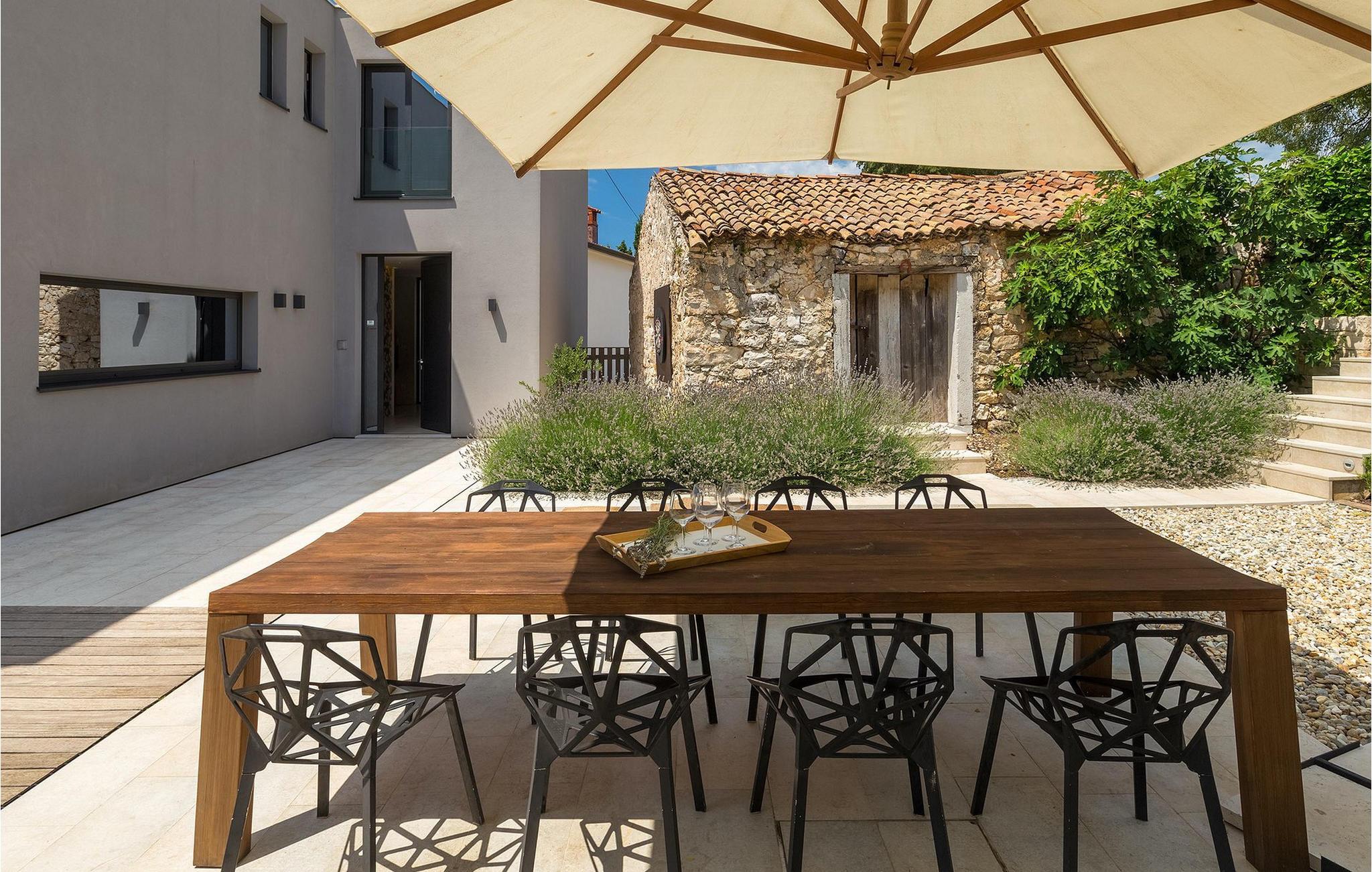 Villa Hallo Sunshine ist die perfekte Villa für all die, die Design und Architektur schätzen. Es ist eine majestätische moderne Interpretation eines perfekten Ferienhauses, in traditioneller Landschaft. Wenn Sie einen luxuriösen Urlaub in einer stilvoll eingerichteten, modernen Villa verbringen möchten, dann ist dies die richtige Wahl für Sie. Es stehen Ihnen vier Schlafzimmer zur Verfügung, ebenso wie drei Badezimmer. Ein besonderer Ort ist auf jeden Fall das Dach, wo sich ein Whirlpool befindet. Hier können Sie romantische Abende verbringen, und die atemberaubende Aussicht auf die Adria genießen, während Kräuterdüfte aus dem mediterranen Garten Ihre Sinne entspannen.