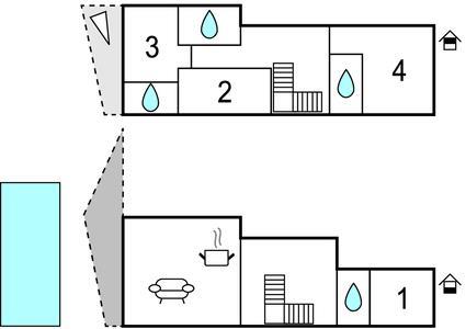 Badezimmer (nr. 4) - WC. Warmes und kaltes Wasser. Dusche