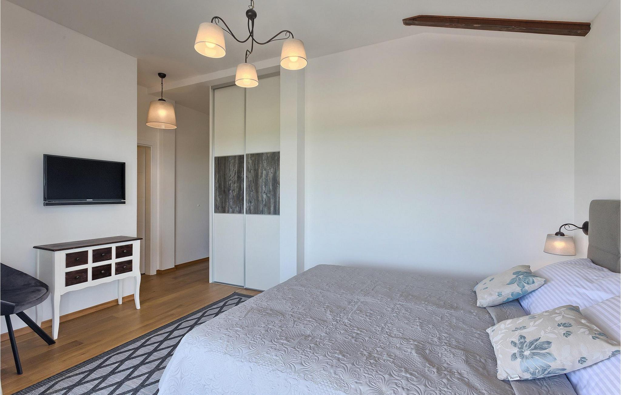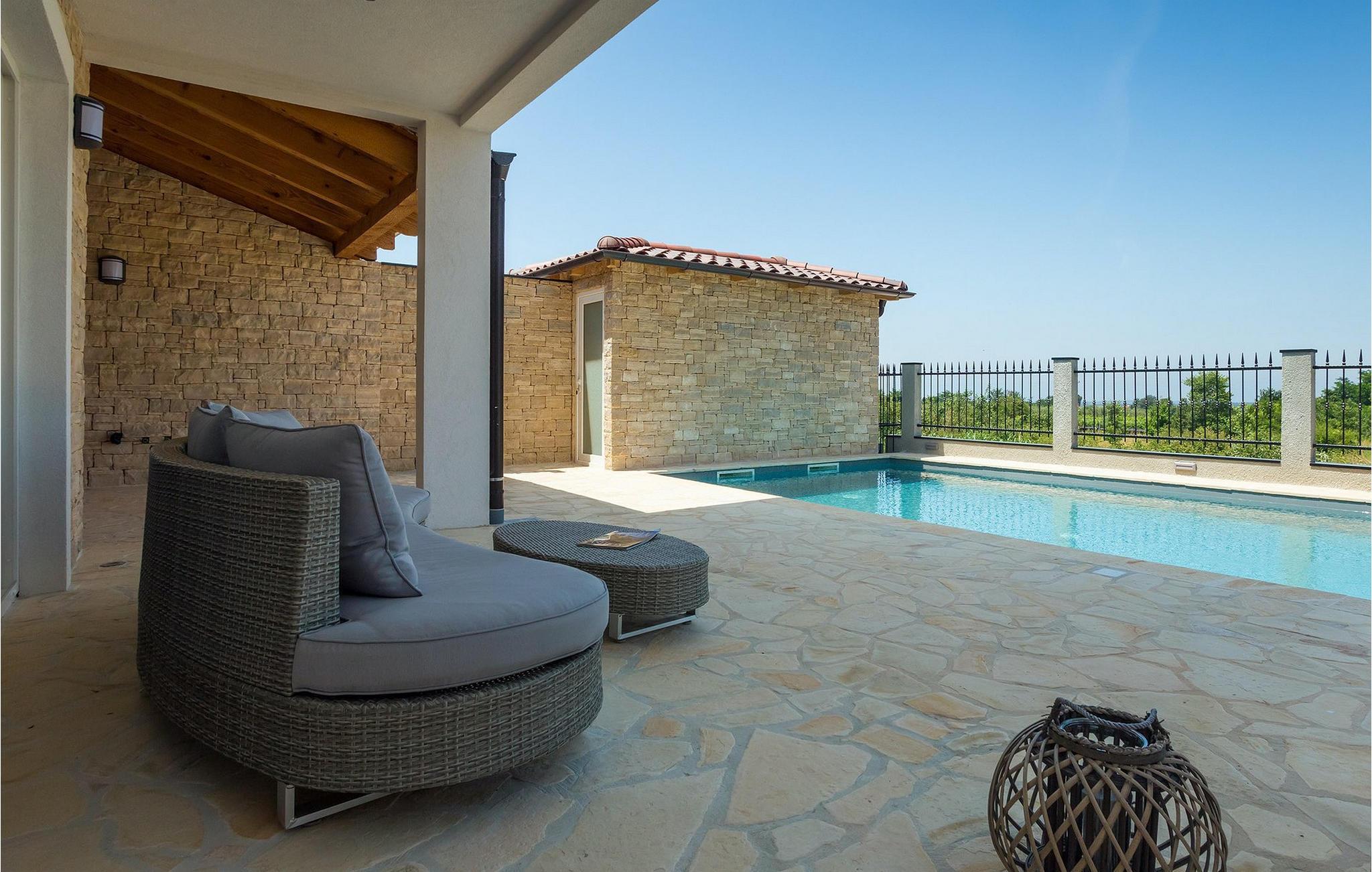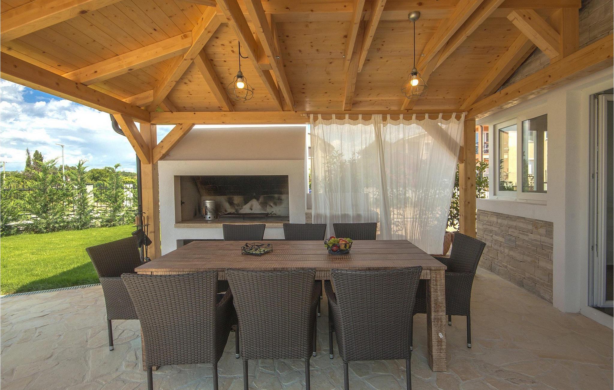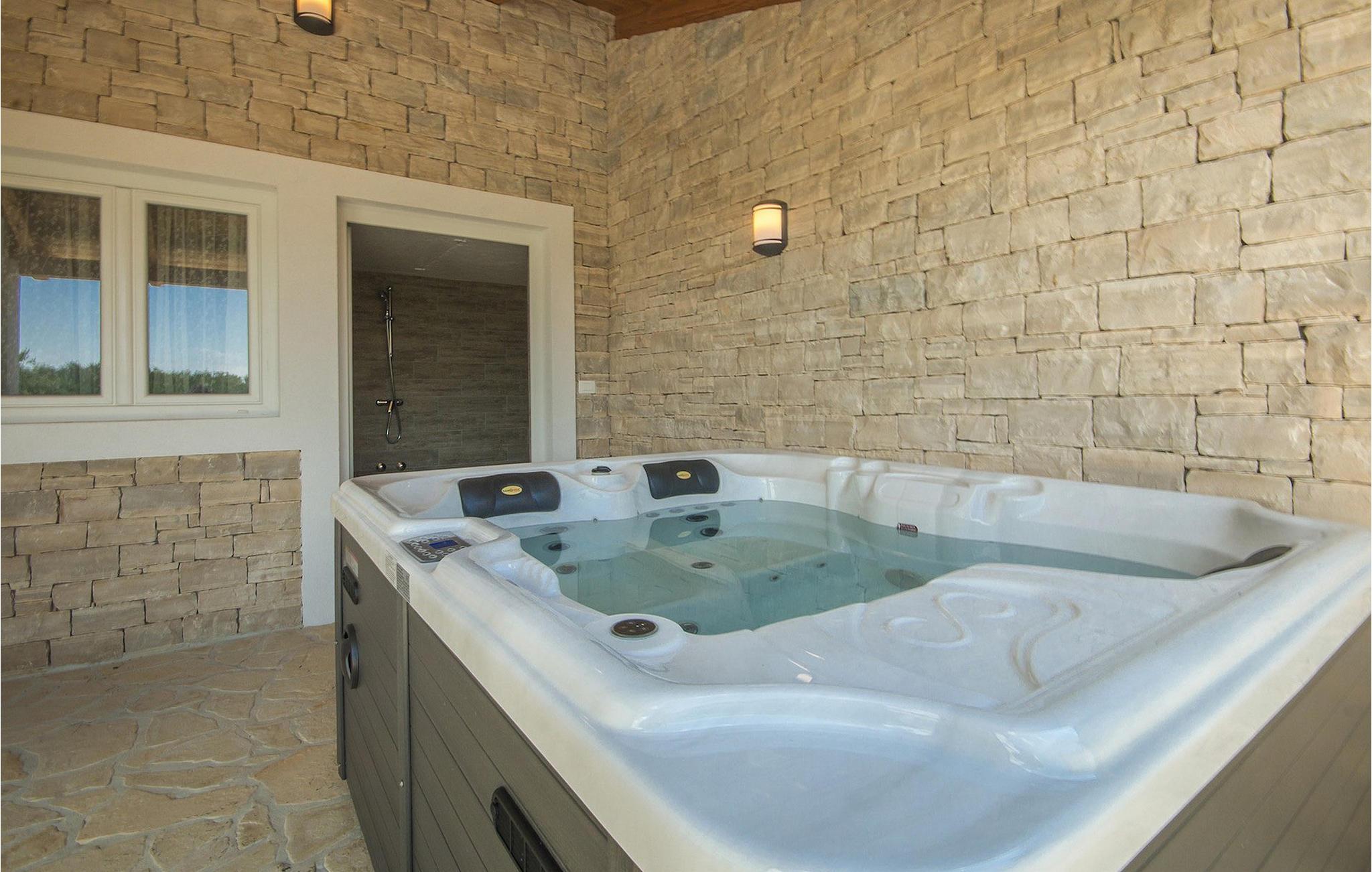 Diese wunderschöne Villa verfügt über einen schönen privaten Pool, einen Außenjacuzzi und eine Sauna - alles was Sie sich für einen erholsamen Urlaub wünschen! Entspannen Sie sich auf den Liegestühlen neben dem Pool oder genießen Sie eine Mahlzeit vom Grill im Essbereich direkt neben dem Pool. Villa Vespera wird Sie mit dem geschmackvoll eingerichteten Interieur begeistern. Im Erdgeschoss befindet sich ein offener Raum, der in eine völlig ausgestattete Küche mit Essbereich und ein geräumiges Wohnzimmer unterteilt ist. Im Erdgeschoss befinden sich eines der vier wunderschön eingerichteten Schlafzimmern mit eigenem Bad sowie die Sauna. Die restlichen drei Schlafzimmer und Badezimmer befinden sich im Obergeschoss. Alle Schlafzimmer sind klimatisiert und verfügen über einen TV. Genießen Sie Ihren Morgenkaffee mit einer leichten Brise und einer schönen Aussicht aus der Terrasse auf der oberen Etage der Villa. Buchen Sie Villa Vespera und verbringen Sie einen fabelhaften Urlaub in der Nähe von Porec.Gelegen im ruhigen Teil von Porec, aber nur eine kurze Fahrt vom Stadtzentrum entfernt, diese Villa ist ideal sowohl für diejenigen, die einen entspannenden Urlaub bevorzugen, als auch für diejenigen, die die Hektik der touristischen Städte mögen. In Porec finden Sie alle Arten von Aktivitäten, Restaurants, Bars und Clubs. Da Porec früher eine römische Kolonie war, ist die Stadt ist vor allem für ihr reiches kulturelles Erbe bekannt. Die atemberaubende Euphrasius Basilika, unter dem UNESCO- Schutz, ist der beste Beweis dafür, wie glorreich die Geschichte von Porec war. Mittelalterliche Städte Motovun und Groznjan sowie die Küstenstädte Rovinj und Versar sind nur eine kurze Fahrt von der Villa entfernt. Falls Sie Interesse an weiter entfernten Teilen Istriens haben, sind die Brijuni Inseln und das römische Amphitheater in Pula von dieser Region leicht erreichbar.