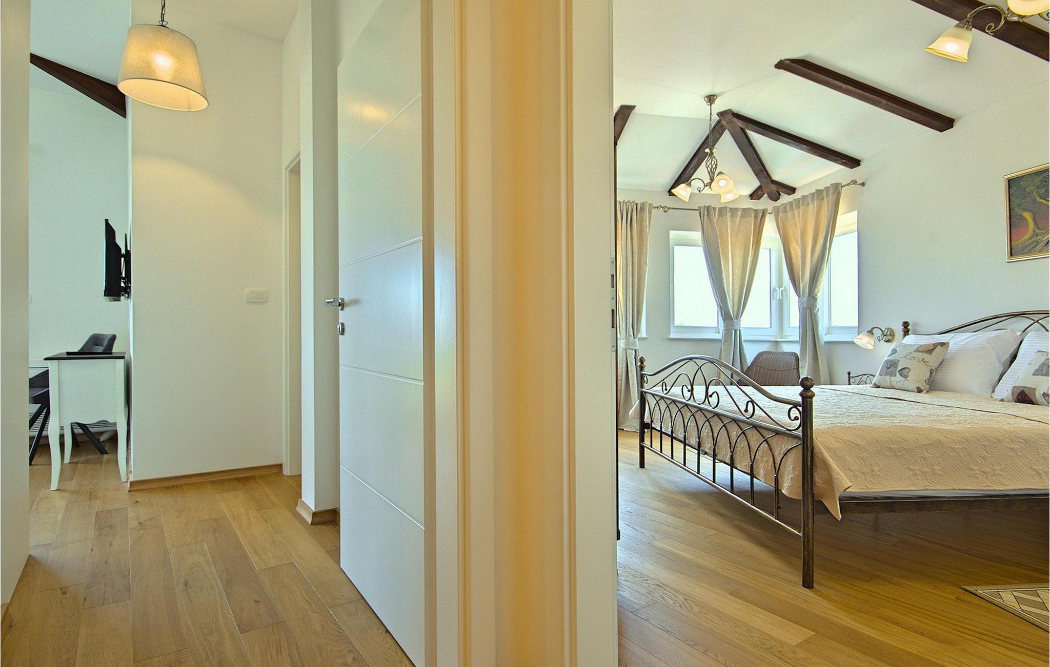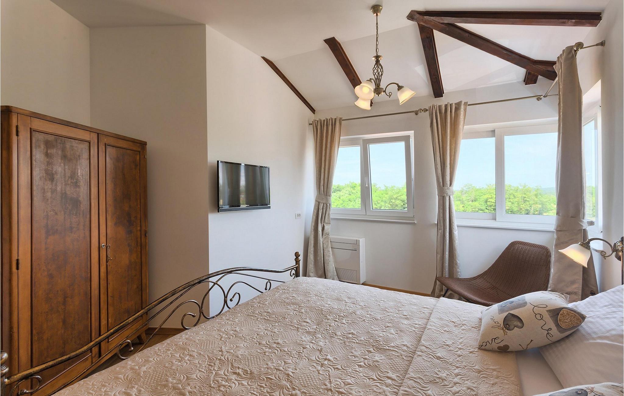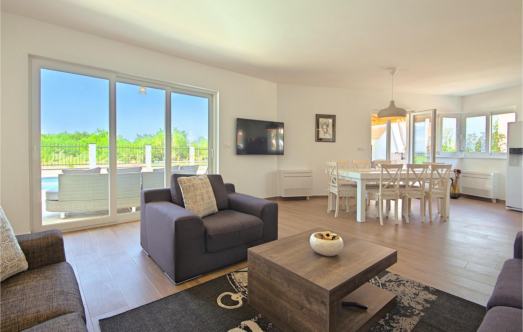 Diese wunderschöne Villa verfügt über einen schönen privaten Pool, einen Außenjacuzzi und eine Sauna - alles was Sie sich für einen erholsamen Urlaub wünschen! Entspannen Sie sich auf den Liegestühlen neben dem Pool oder genießen Sie eine Mahlzeit vom Grill im Essbereich direkt neben dem Pool. Villa Vespera wird Sie mit dem geschmackvoll eingerichteten Interieur begeistern. Im Erdgeschoss befindet sich ein offener Raum, der in eine völlig ausgestattete Küche mit Essbereich und ein geräumiges Wohnzimmer unterteilt ist. Im Erdgeschoss befinden sich eines der vier wunderschön eingerichteten Schlafzimmern mit eigenem Bad sowie die Sauna. Die restlichen drei Schlafzimmer und Badezimmer befinden sich im Obergeschoss. Alle Schlafzimmer sind klimatisiert und verfügen über einen TV. Genießen Sie Ihren Morgenkaffee mit einer leichten Brise und einer schönen Aussicht aus der Terrasse auf der oberen Etage der Villa. Buchen Sie Villa Vespera und verbringen Sie einen fabelhaften Urlaub in der Nähe von Porec.Gelegen im ruhigen Teil von Porec, aber nur eine kurze Fahrt vom Stadtzentrum entfernt, diese Villa ist ideal sowohl für diejenigen, die einen entspannenden Urlaub bevorzugen, als auch für diejenigen, die die Hektik der touristischen Städte mögen. In Porec finden Sie alle Arten von Aktivitäten, Restaurants, Bars und Clubs. Da Porec früher eine römische Kolonie war, ist die Stadt ist vor allem für ihr reiches kulturelles Erbe bekannt. Die atemberaubende Euphrasius Basilika, unter dem UNESCO- Schutz, ist der beste Beweis dafür, wie glorreich die Geschichte von Porec war. Mittelalterliche Städte Motovun und Groznjan sowie die Küstenstädte Rovinj und Versar sind nur eine kurze Fahrt von der Villa entfernt. Falls Sie Interesse an weiter entfernten Teilen Istriens haben, sind die Brijuni Inseln und das römische Amphitheater in Pula von dieser Region leicht erreichbar.