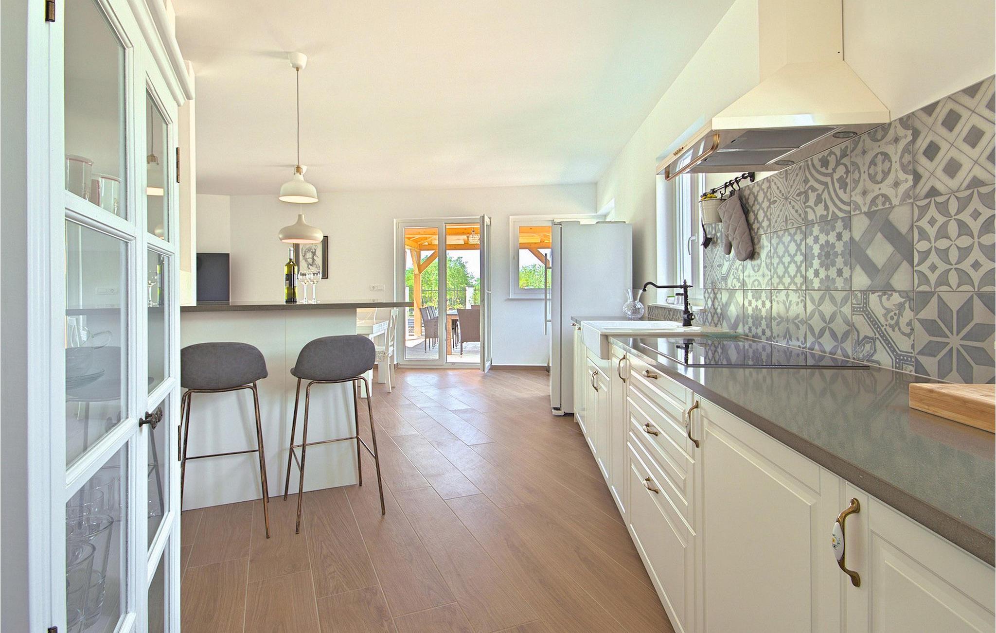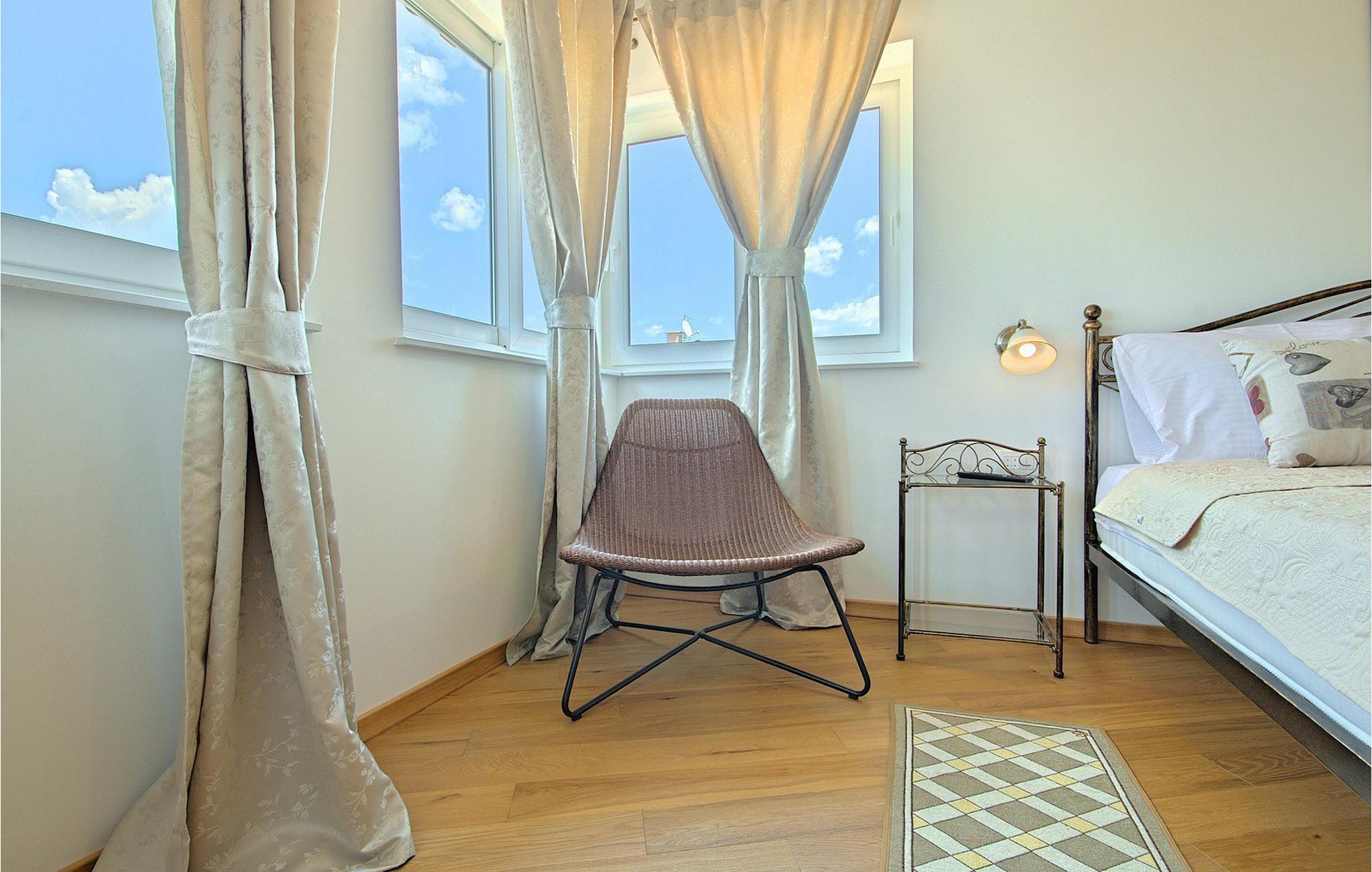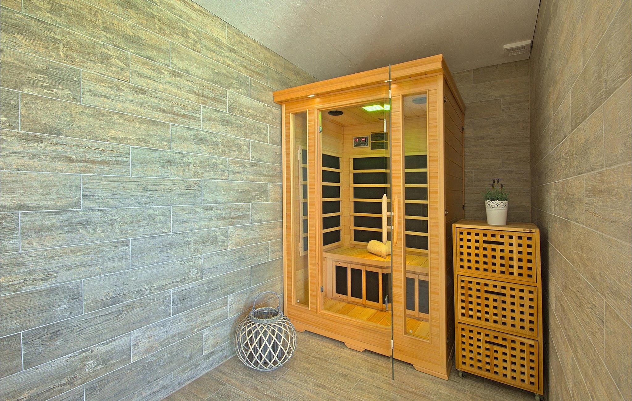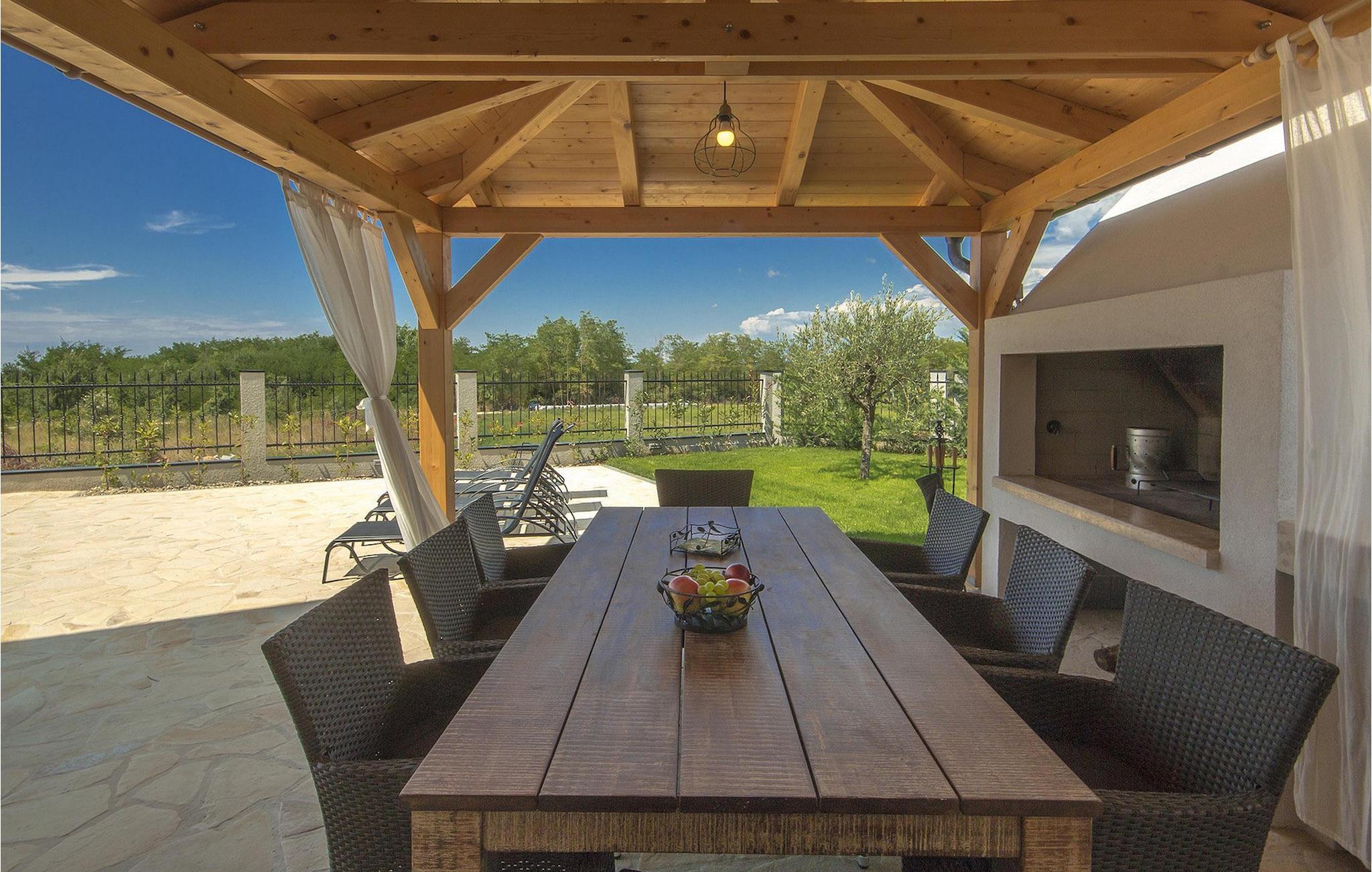 Diese wunderschöne Villa verfügt über einen schönen privaten Pool, einen Außenjacuzzi und eine Sauna - alles was Sie sich für einen erholsamen Urlaub wünschen! Entspannen Sie sich auf den Liegestühlen neben dem Pool oder genießen Sie eine Mahlzeit vom Grill im Essbereich direkt neben dem Pool. Villa Vespera wird Sie mit dem geschmackvoll eingerichteten Interieur begeistern. Im Erdgeschoss befindet sich ein offener Raum, der in eine völlig ausgestattete Küche mit Essbereich und ein geräumiges Wohnzimmer unterteilt ist. Im Erdgeschoss befinden sich eines der vier wunderschön eingerichteten Schlafzimmern mit eigenem Bad sowie die Sauna. Die restlichen drei Schlafzimmer und Badezimmer befinden sich im Obergeschoss. Alle Schlafzimmer sind klimatisiert und verfügen über einen TV. Genießen Sie Ihren Morgenkaffee mit einer leichten Brise und einer schönen Aussicht aus der Terrasse auf der oberen Etage der Villa. Buchen Sie Villa Vespera und verbringen Sie einen fabelhaften Urlaub in der Nähe von Porec.Gelegen im ruhigen Teil von Porec, aber nur eine kurze Fahrt vom Stadtzentrum entfernt, diese Villa ist ideal sowohl für diejenigen, die einen entspannenden Urlaub bevorzugen, als auch für diejenigen, die die Hektik der touristischen Städte mögen. In Porec finden Sie alle Arten von Aktivitäten, Restaurants, Bars und Clubs. Da Porec früher eine römische Kolonie war, ist die Stadt ist vor allem für ihr reiches kulturelles Erbe bekannt. Die atemberaubende Euphrasius Basilika, unter dem UNESCO- Schutz, ist der beste Beweis dafür, wie glorreich die Geschichte von Porec war. Mittelalterliche Städte Motovun und Groznjan sowie die Küstenstädte Rovinj und Versar sind nur eine kurze Fahrt von der Villa entfernt. Falls Sie Interesse an weiter entfernten Teilen Istriens haben, sind die Brijuni Inseln und das römische Amphitheater in Pula von dieser Region leicht erreichbar.