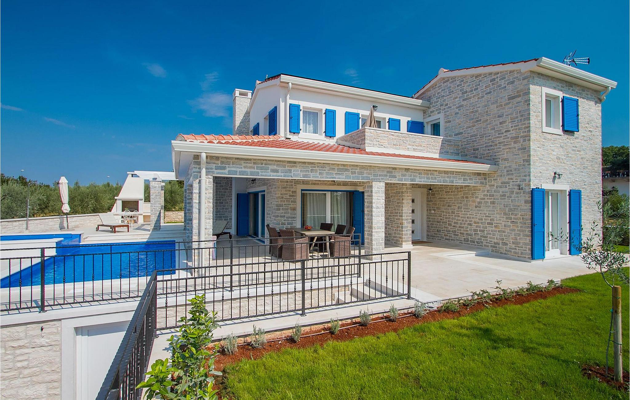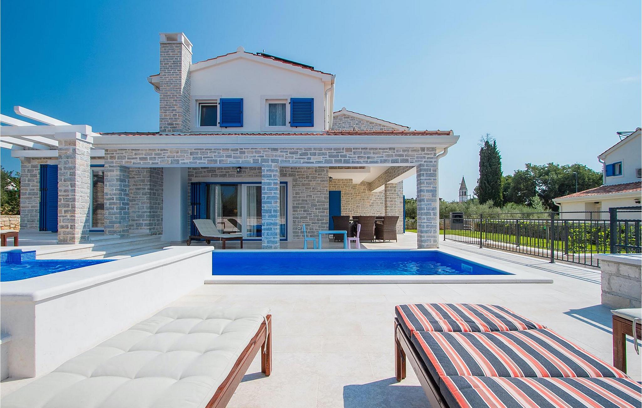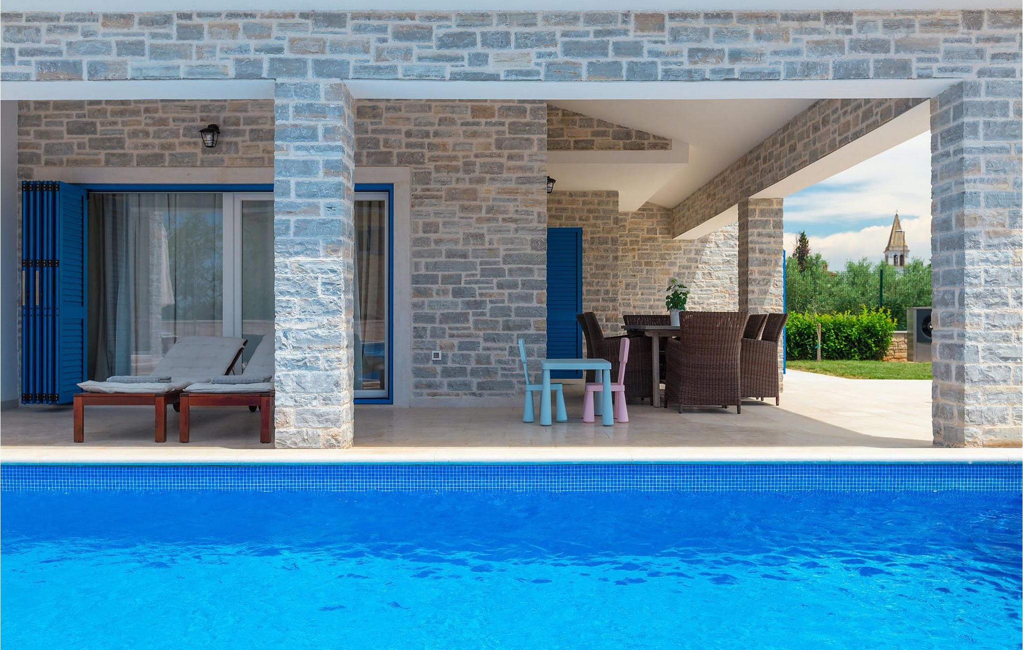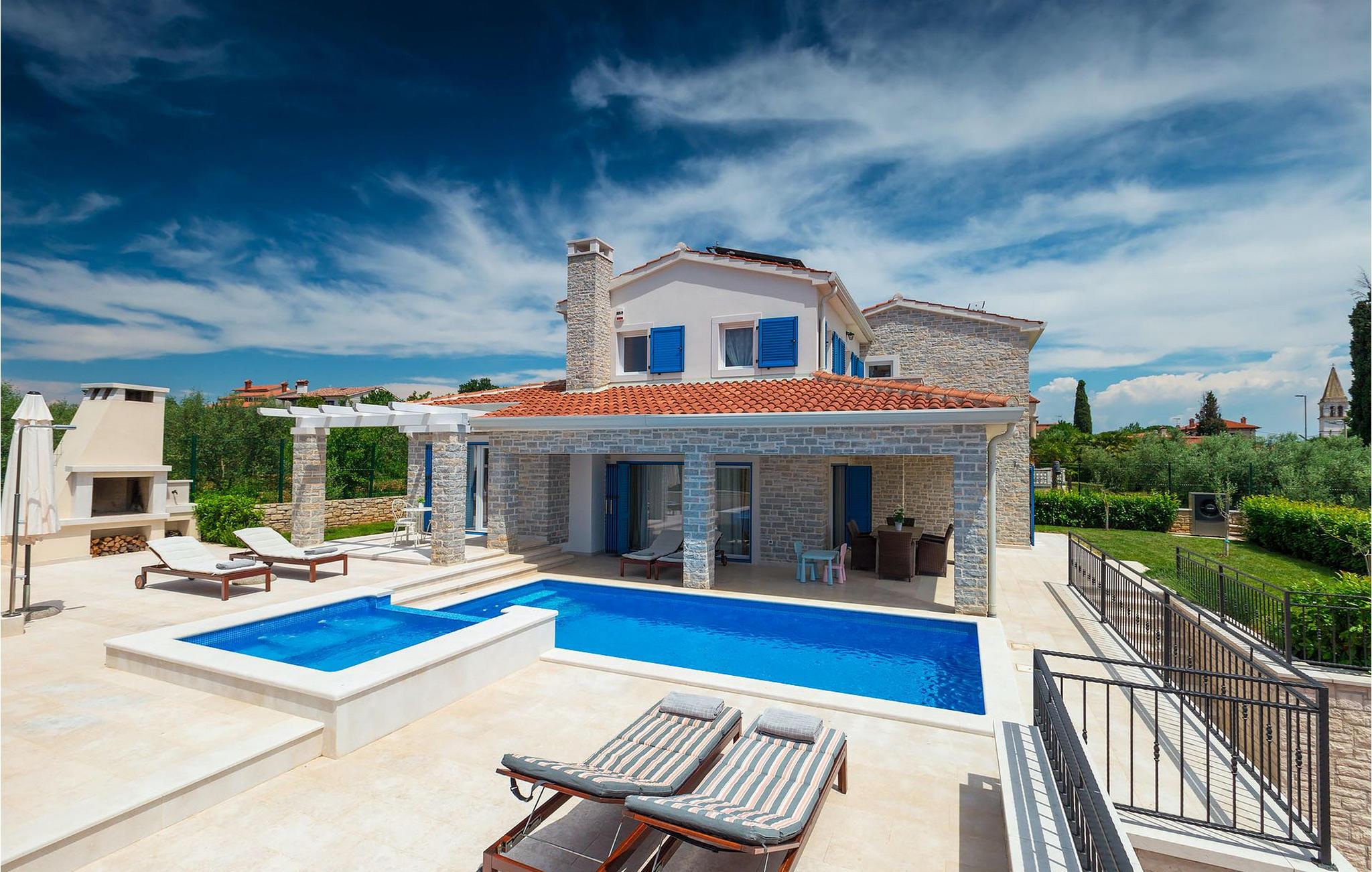Der Außenbereich zeichnet sich durch den Pool und den überdachten Essbereich aus. Der Pool besteht aus zwei Teilen — dem tieferen zum Schwimmen und dem flacheren mit Hydromassage. Ein Holzkohlengrill steht allen Grill-Fans zur Verfügung. Genießen Sie die warmen istrischen Sommerabende auf der Terrasse und gönnen Sie sich ein leckeres Gericht oder ein kühles GetränkDas neu erbaute Ferienhaus befindet sich in der Ortschaft Tar bei Porec. Die Villa ist nur 2.5 km vom Strand entfernt. Das Tar-Vabriga-Gebiet bietet Kultur- und Freizeitveranstaltungen (z.B. Eselrennen). Während Ihres Aufenthaltes besuchen Sie die Euphrasius-Basilika (Unesco Kulturerbe) in der Kultur- und Altstadt Porec (9 km). Die Basilika wurde in byzantinischem Stil erbaut und gilt als eines der schönsten Kunstwerke auf der Welt. Porec ist eine Stadt mit reichem kulturellen Erbe, deren mächtige Stadtmauern trotz Herausforderungen der Zeit standhielten und heute Touristen aus der ganzen Welt begrüßen. Višnjan (11 km von Porec entfernt) ist eine kleine Stadt auf einem Hügel, umgeben von Wäldern, bekannt für das international berühmte astronomische Observatorium. Die Stadt ist umgeben von Wäldern und befindet sich 11 km nordöstlich von Porec. Die antike Terrasse auf dem Platz, die durch einen venezianischen Bogen betreten wird, bietet einen bemerkenswerten Blick auf das Meer. Je, seitdem Venedig über Visnjan herrschte, war die Stadt eine renommiertes Handelszentrum, in dem landwirtschaftliche Produkte und Werkzeuge aller Art verkauft wurden. Noch heute findet an jedem letzten Donnerstag im Monat ein traditioneller Markt statt, der eine besondere Attraktion für Menschen aus ganz Istrien darstellt. Višnjan ist wegen seines international renommierten astronomischen Observatoriums ein besonders interessanter Ort für Liebhaber der Astrologie.
