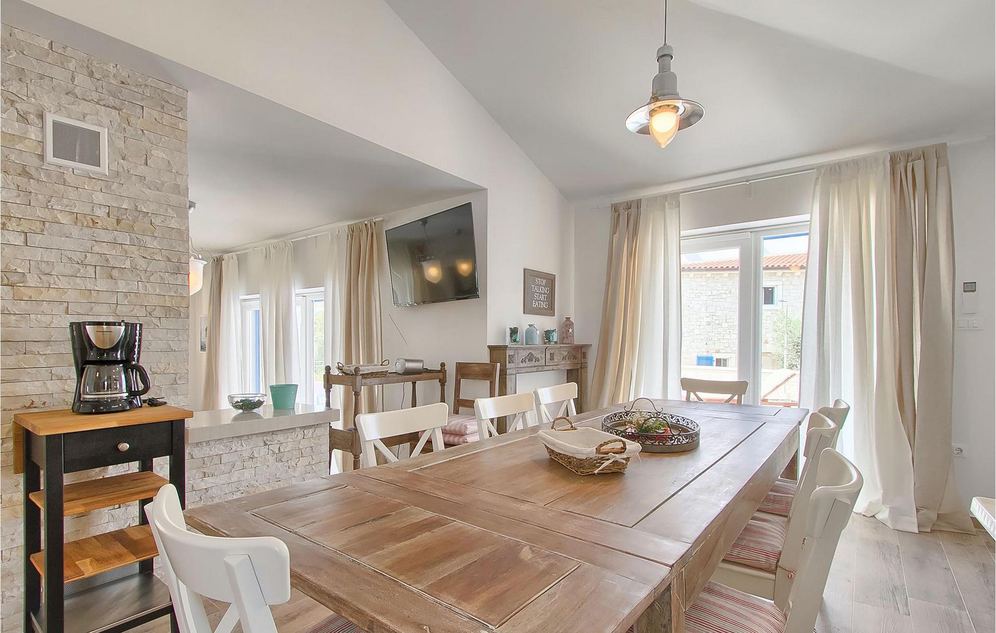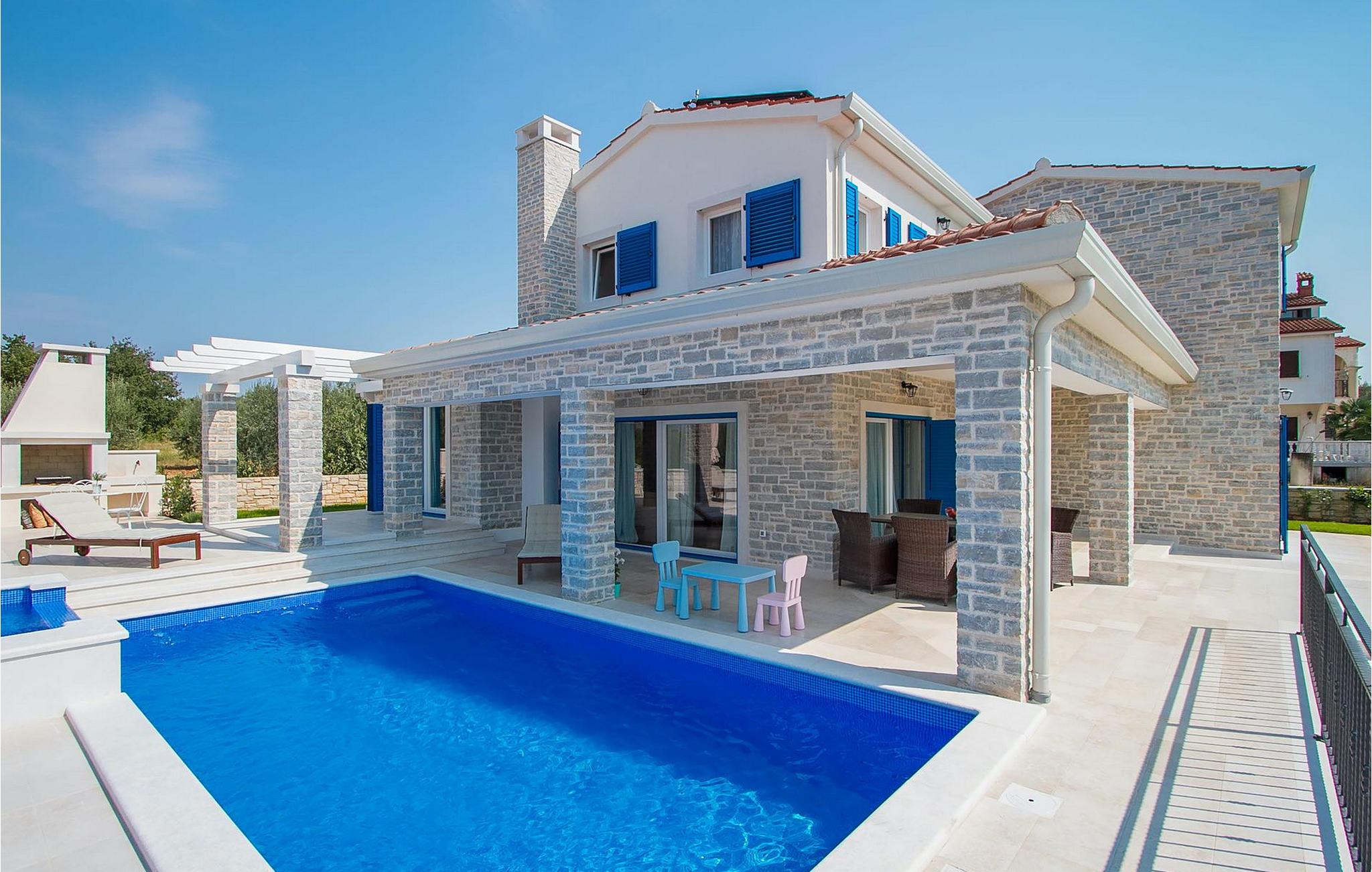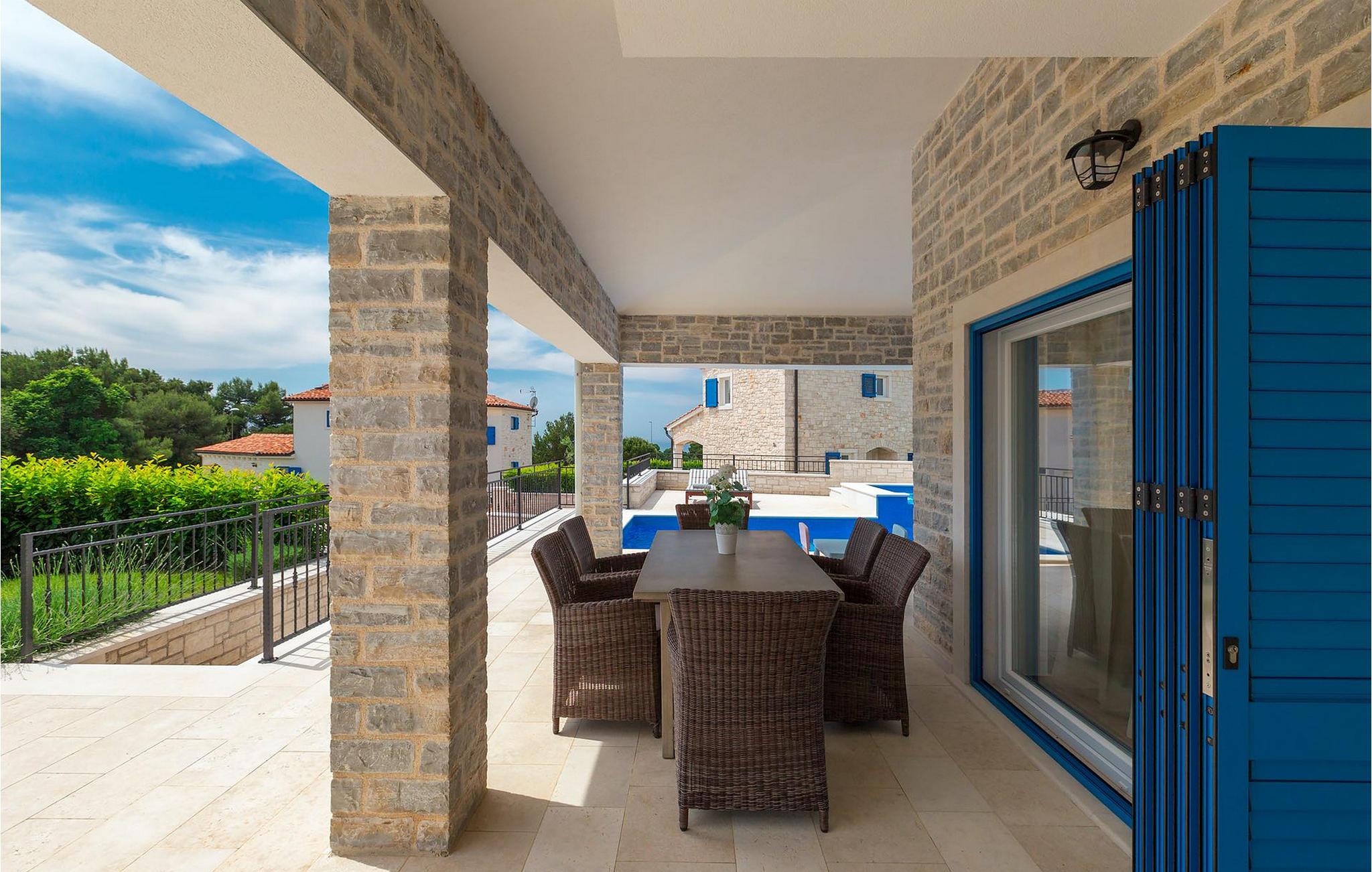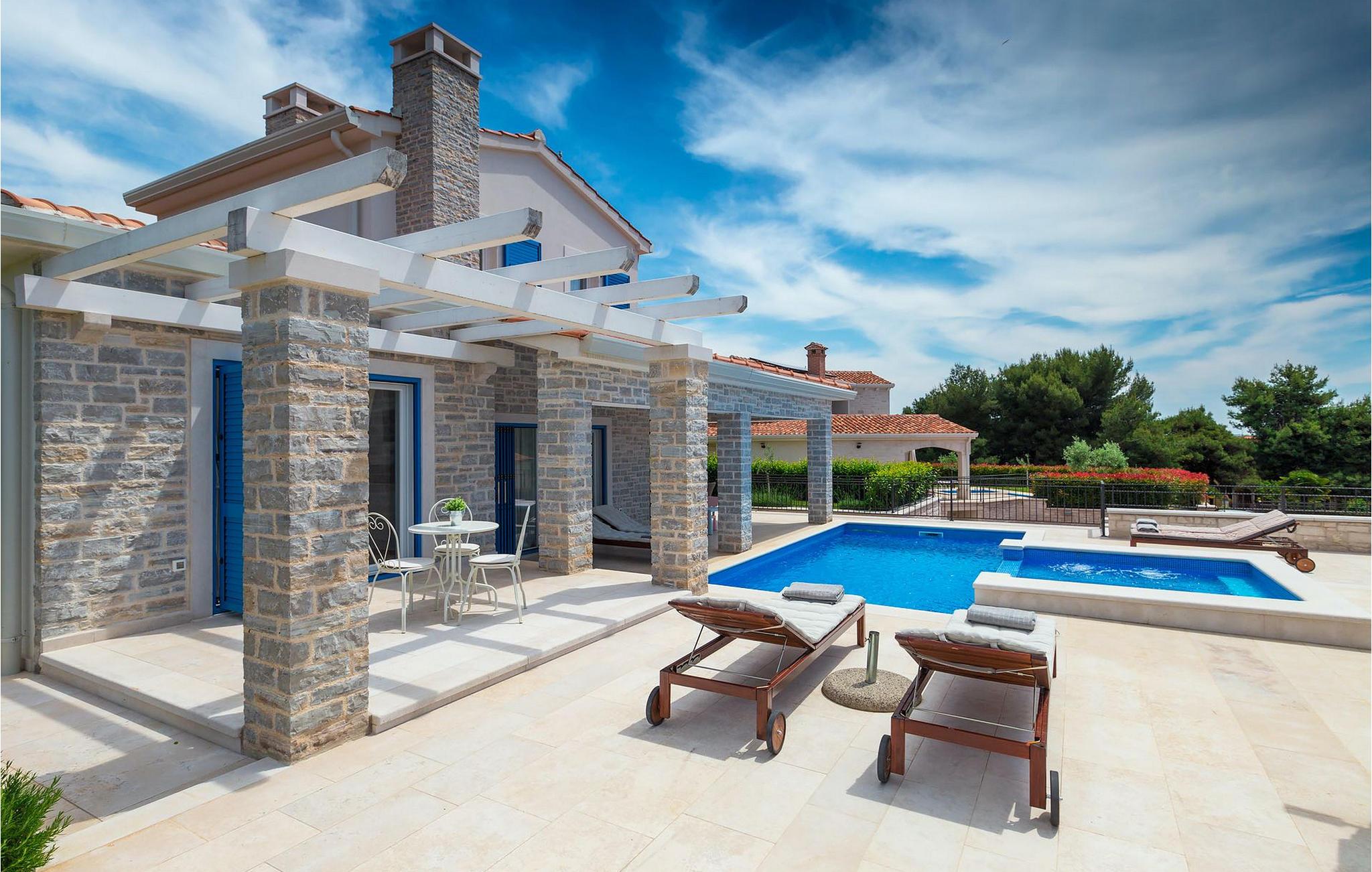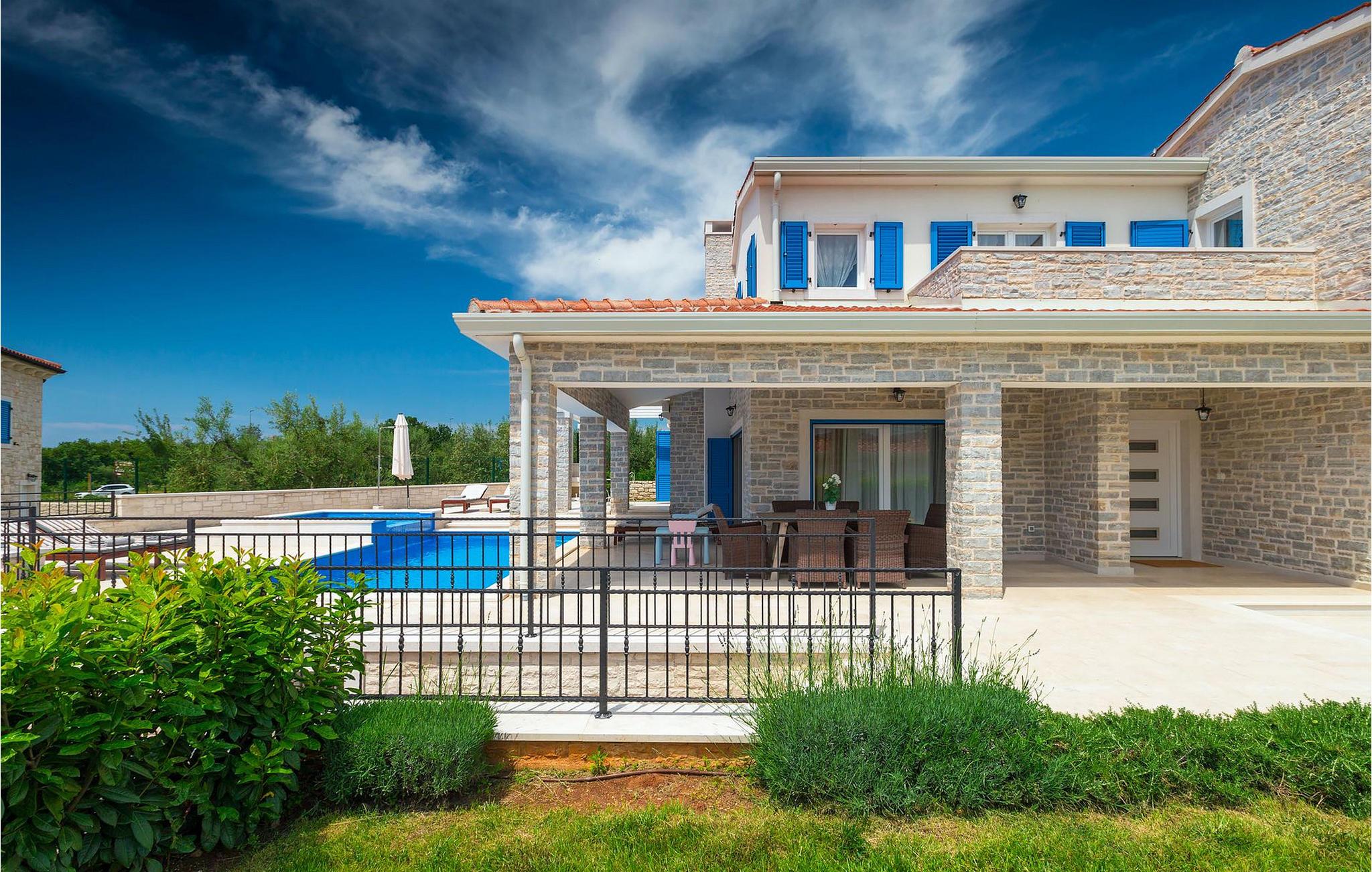 Der Außenbereich zeichnet sich durch den Pool und den überdachten Essbereich aus. Der Pool besteht aus zwei Teilen — dem tieferen zum Schwimmen und dem flacheren mit Hydromassage. Ein Holzkohlengrill steht allen Grill-Fans zur Verfügung. Genießen Sie die warmen istrischen Sommerabende auf der Terrasse und gönnen Sie sich ein leckeres Gericht oder ein kühles GetränkDas neu erbaute Ferienhaus befindet sich in der Ortschaft Tar bei Porec. Die Villa ist nur 2.5 km vom Strand entfernt. Das Tar-Vabriga-Gebiet bietet Kultur- und Freizeitveranstaltungen (z.B. Eselrennen). Während Ihres Aufenthaltes besuchen Sie die Euphrasius-Basilika (Unesco Kulturerbe) in der Kultur- und Altstadt Porec (9 km). Die Basilika wurde in byzantinischem Stil erbaut und gilt als eines der schönsten Kunstwerke auf der Welt. Porec ist eine Stadt mit reichem kulturellen Erbe, deren mächtige Stadtmauern trotz Herausforderungen der Zeit standhielten und heute Touristen aus der ganzen Welt begrüßen. Višnjan (11 km von Porec entfernt) ist eine kleine Stadt auf einem Hügel, umgeben von Wäldern, bekannt für das international berühmte astronomische Observatorium. Die Stadt ist umgeben von Wäldern und befindet sich 11 km nordöstlich von Porec. Die antike Terrasse auf dem Platz, die durch einen venezianischen Bogen betreten wird, bietet einen bemerkenswerten Blick auf das Meer. Je, seitdem Venedig über Visnjan herrschte, war die Stadt eine renommiertes Handelszentrum, in dem landwirtschaftliche Produkte und Werkzeuge aller Art verkauft wurden. Noch heute findet an jedem letzten Donnerstag im Monat ein traditioneller Markt statt, der eine besondere Attraktion für Menschen aus ganz Istrien darstellt. Višnjan ist wegen seines international renommierten astronomischen Observatoriums ein besonders interessanter Ort für Liebhaber der Astrologie.