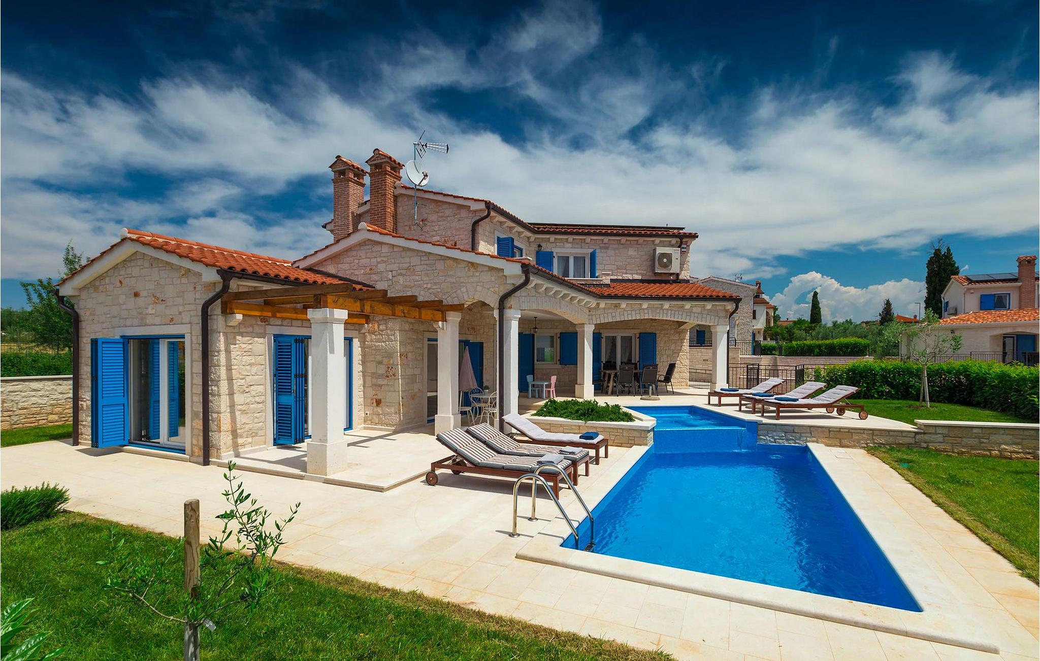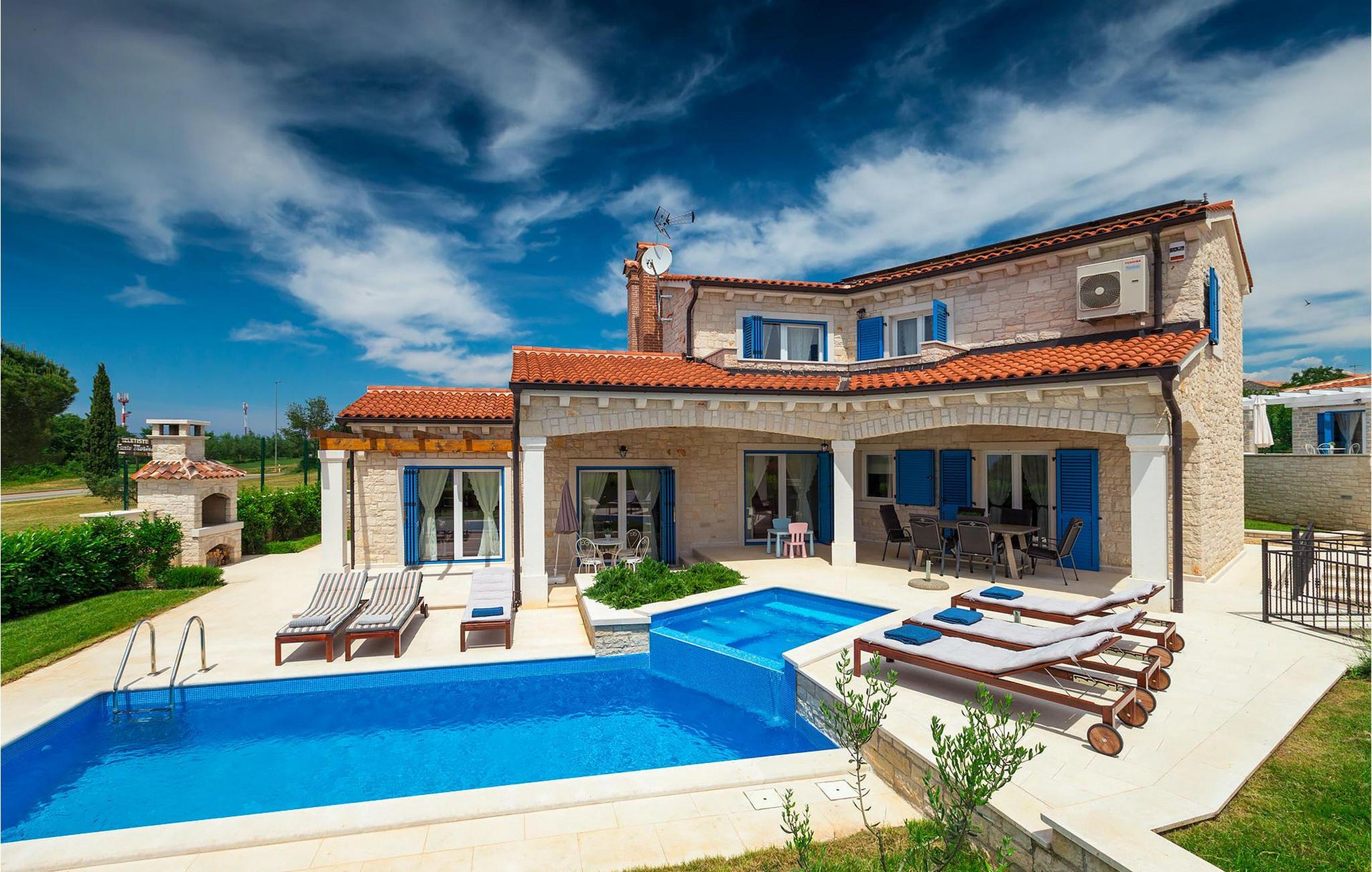 Sie werden über die großzügige Terrasse und den wunderschönen Pool erstaunt sein. Der Pool besteht aus zwei Teilen — dem tieferen zum Schwimmen und dem flacheren mit Hydromassage. Ein Holzkohlengrill steht Ihnen auch zur Verfügung. Die große Terrasse lädt Sie einfach ein, Ihren Urlaub auszukostenDas neu erbaute Ferienhaus befindet sich in der Ortschaft Tar bei Porec. Die Villa ist nur 2.5 km vom Strand entfernt. Das Tar-Vabriga-Gebiet bietet Kultur- und Freizeitveranstaltungen (z.B. Eselrennen).