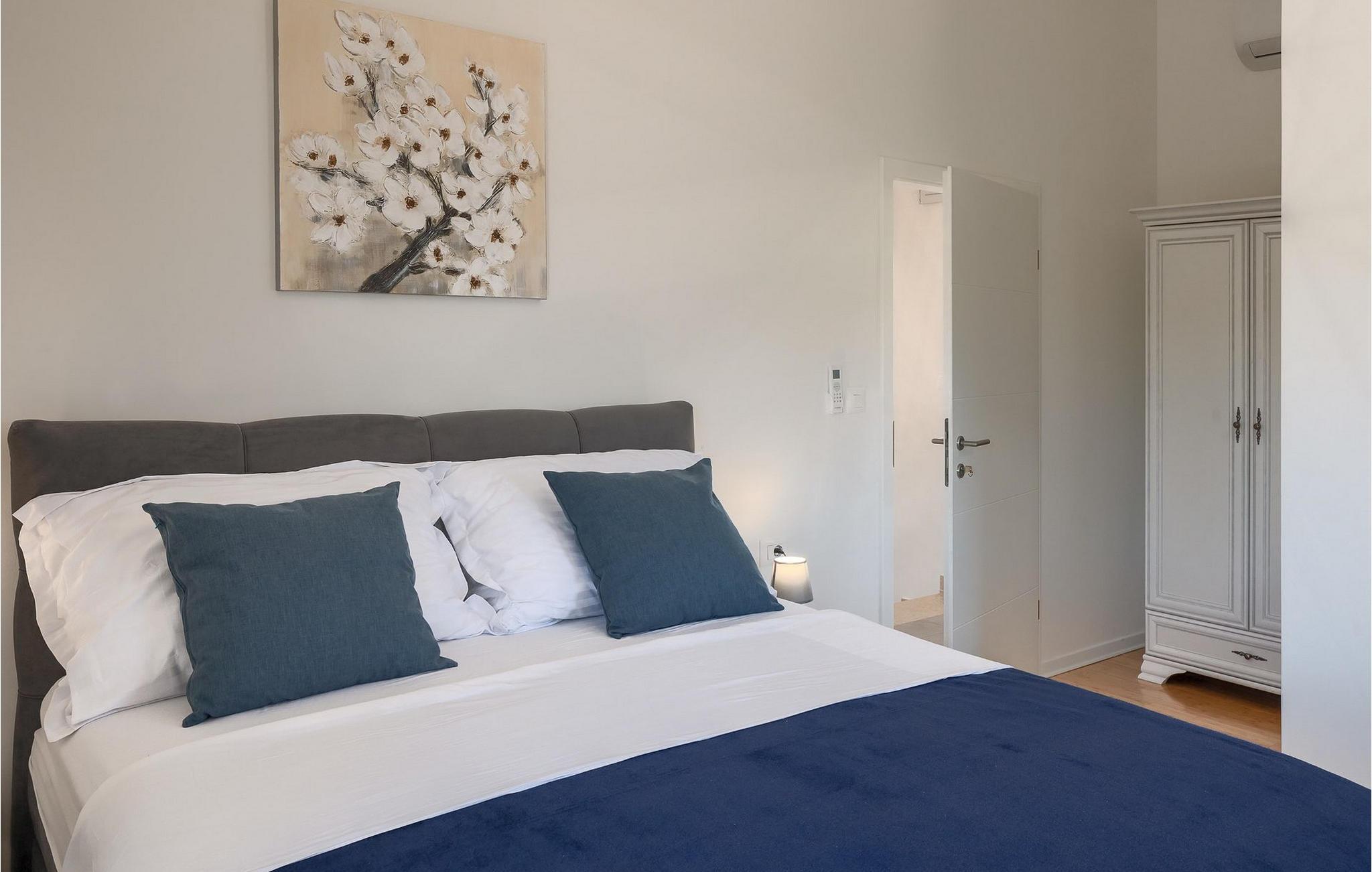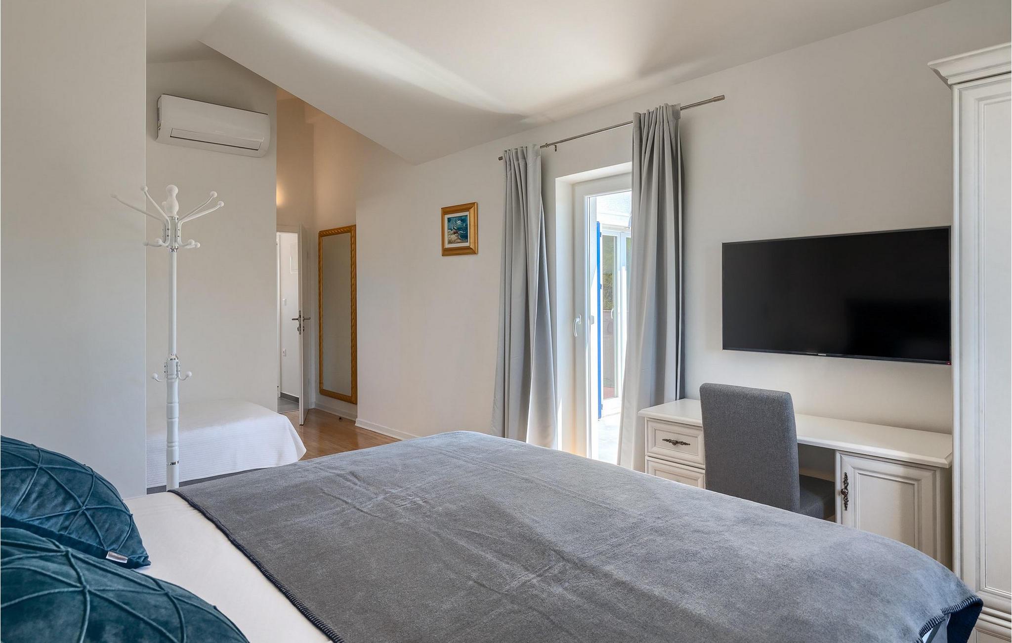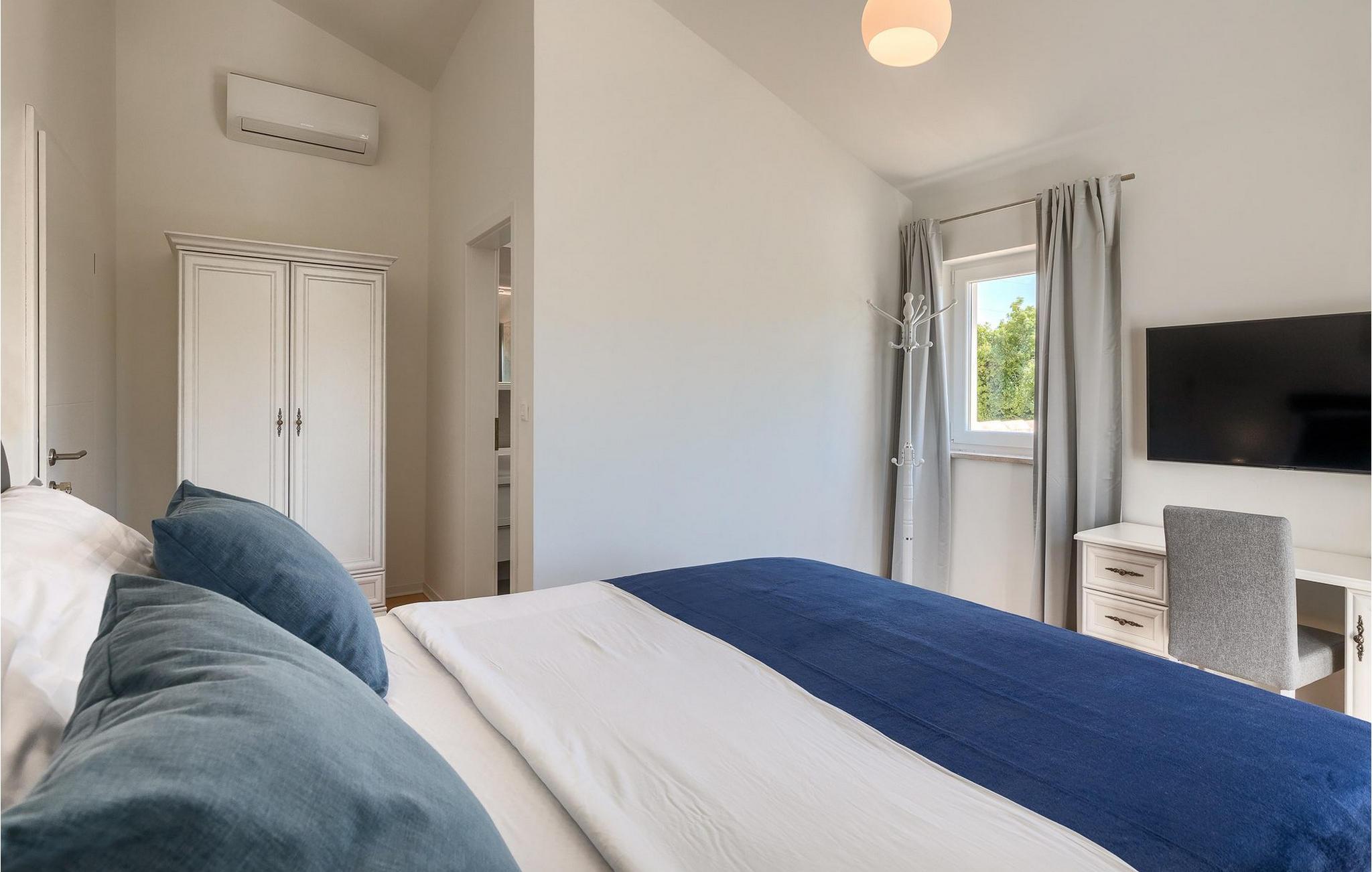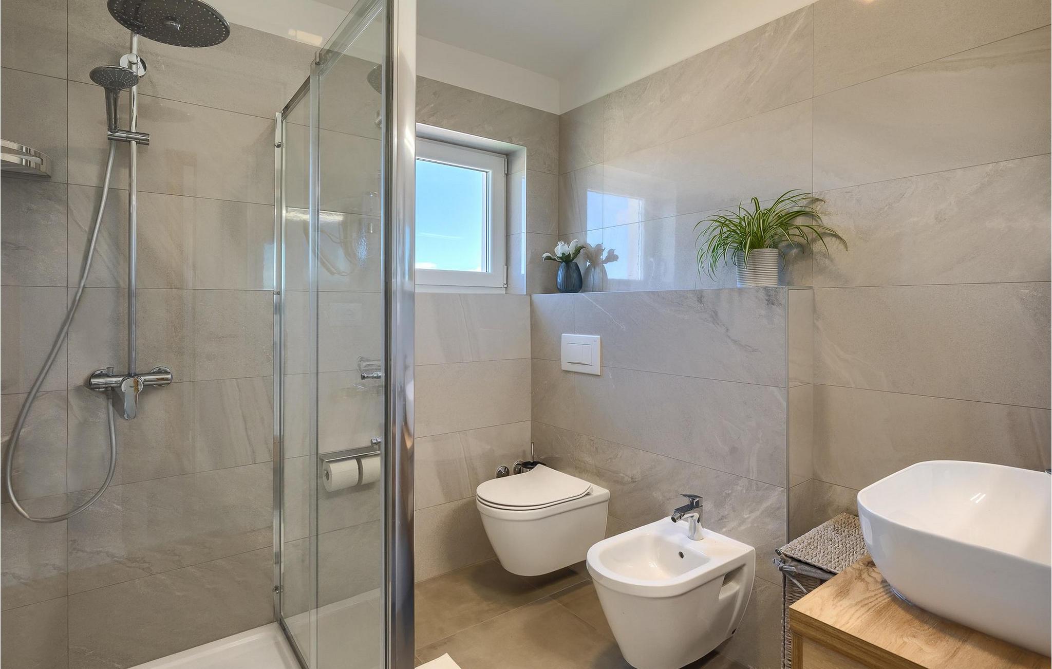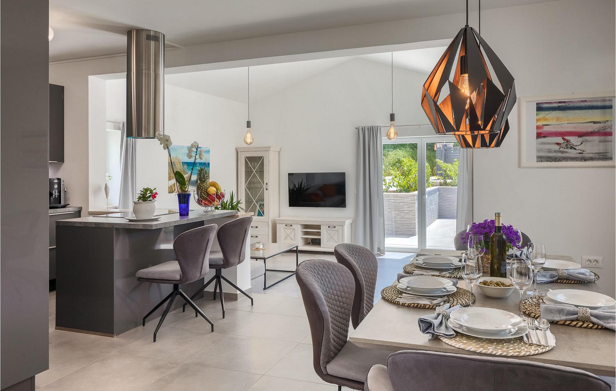 Im Wohnzimmer finden Sie ein gemütliches graues Sofa, auf dem Sie sich entspannen oder einen Filmabend mit Familie oder Freunden verbringen können. Die Terrassentür im Wohnzimmer bietet einen atemberaubenden Blick auf den Pool und die wunderschöne Landschaft. Im ersten Stock befinden sich 2 Schlafzimmer mit en-suite Badezimmern. Beide Schlafzimmer haben Zugang zum Balkon. Im Außenbereich der Villa auf der Terrasse befindet sich ein Tisch mit 8 Stühlen, an dem Sie eine köstliche Mahlzeit servieren können, die auf dem verfügbaren Holzkohlegrill zubereitet wurde. Es gibt auch Gartenmöbel, in denen Sie nach einem langen Tag voller Freude bei einem kalten Getränk entspannen können. Erfrischen Sie sich im Pool vor der Terrasse oder entspannen Sie auf den Sonnenliegen. Sonnenbaden auf den Sonnenliegen rundet Ihren Tag ab. Die Villa Camelia ist ideal für einen schönen Urlaub mit Familie oder Freunden und wird Sie mit ihrer schönen mediterranen Umgebung begeistern.Die Villa Camelia befindet sich unweit von Novigrad in der kleinen Stadt Tar. Tar ist bekannt für seinen Olivenanbau und Fischfang sowie für die gastfreundlichen Gastgeber. Das Zentrum der kleinen Stadt bewahrt den traditionellen istrischen Geist in vielen Steinhäusern und Tavernen, in denen Sie die besten istrischen Spezialitäten probieren können, darunter Olivenöl, Meeresfrüchte, Trüffel und köstliche Desserts. Die Halbinsel Lanterna ist ein ideales Ziel für alle Liebhaber von Sonne und Meer. Am Strand können Sie viele sportliche Aktivitäten ausüben oder in einem der Cafés mit Blick auf Novigrad entspannen. Naturliebhaber sollten es sich nicht entgehen lassen, an die Mündung des Flusses Mirna zu gehen. Der Fluss Mirna ist der längste Fluss Istriens und erstreckt sich entlang des Motovun-Waldes, der ein beliebtes Ziel für alle Trüffelfans ist. Der Fluss Mirna ist ein geschätztes und bekanntes ornithologisches Reservat. Entlang des Flusses gibt es kleine Städte wie Motovun, Grožnjan und Oprtalj, die unbedingt erkundet werden sollten.