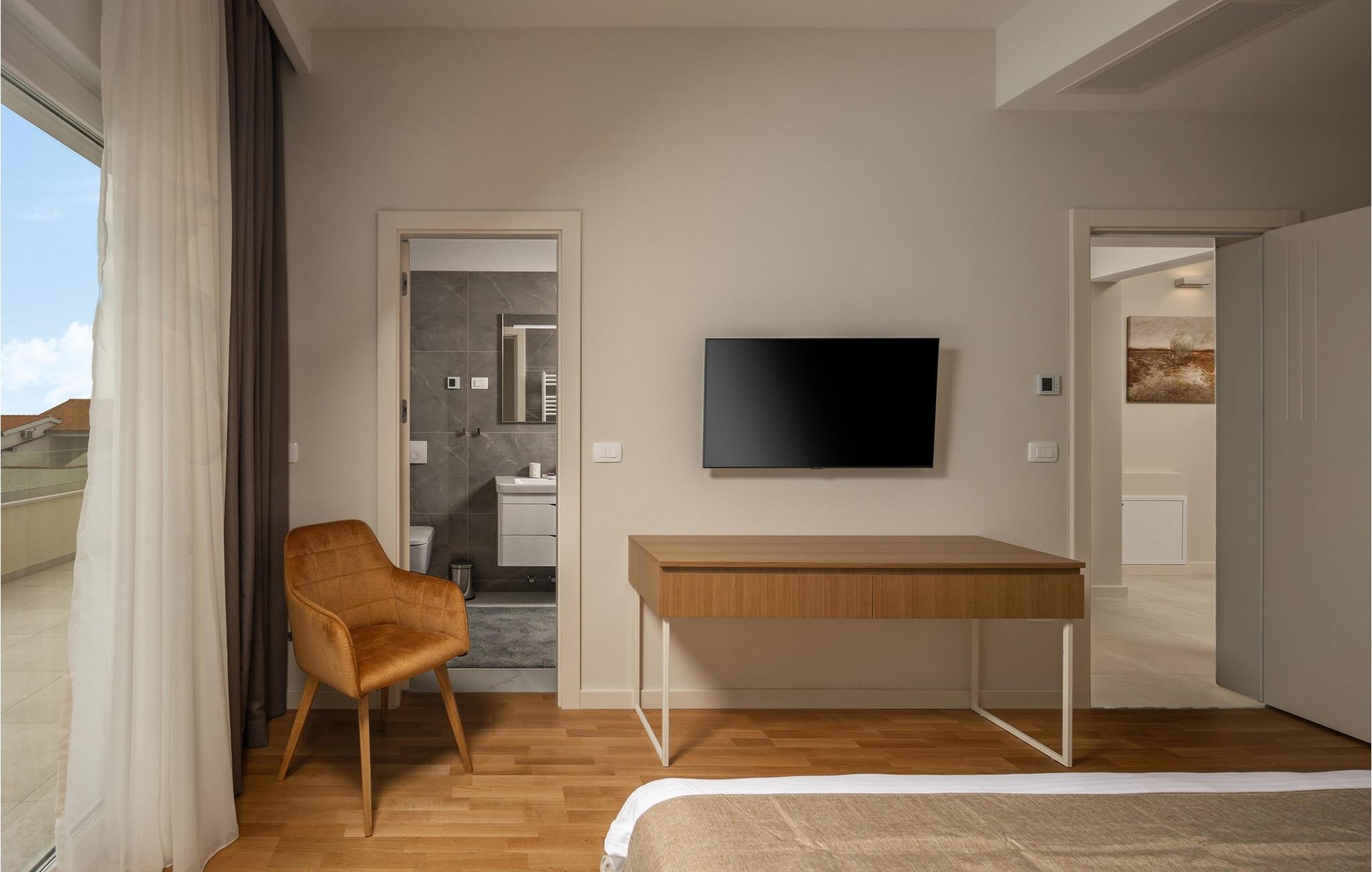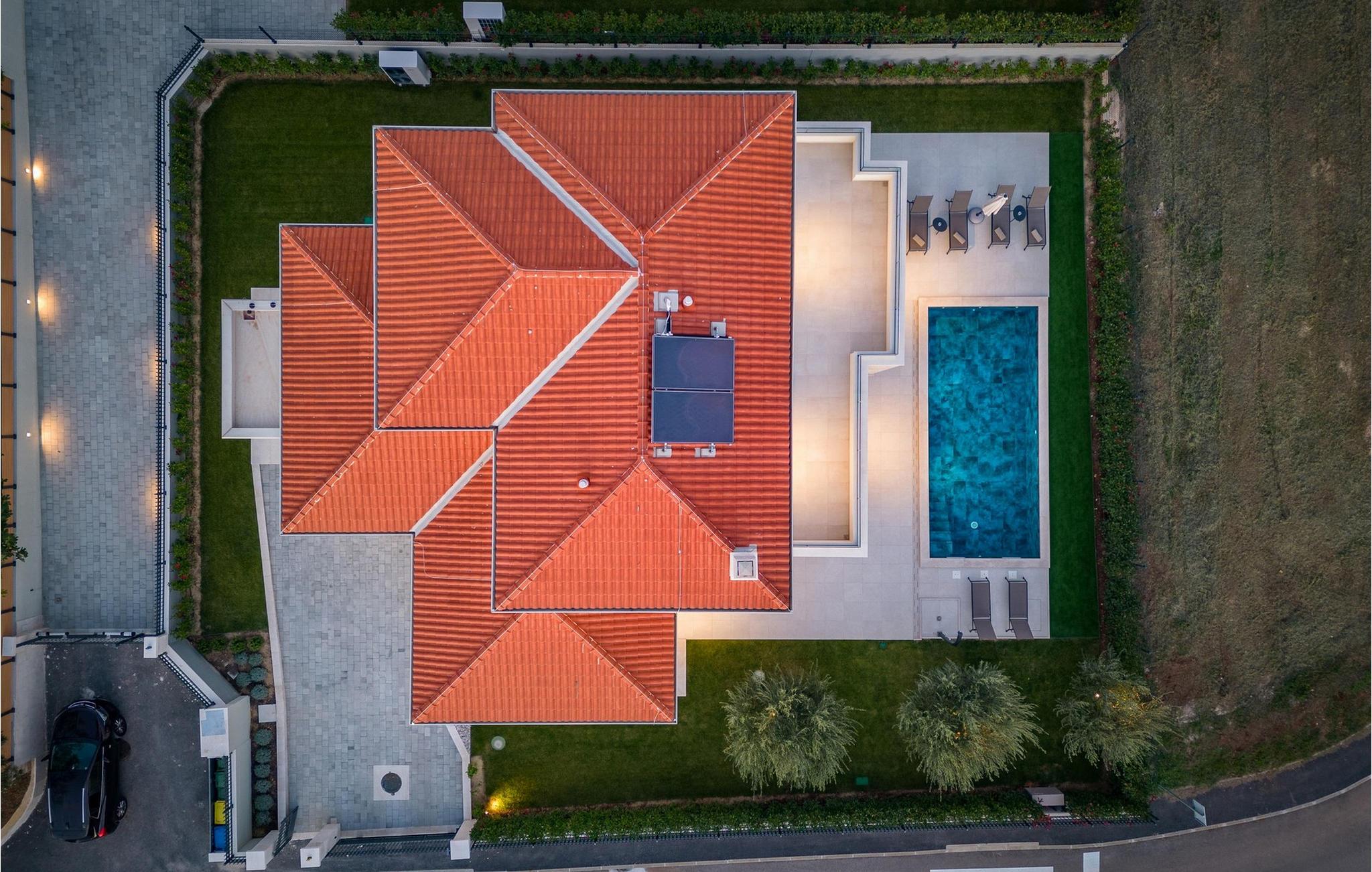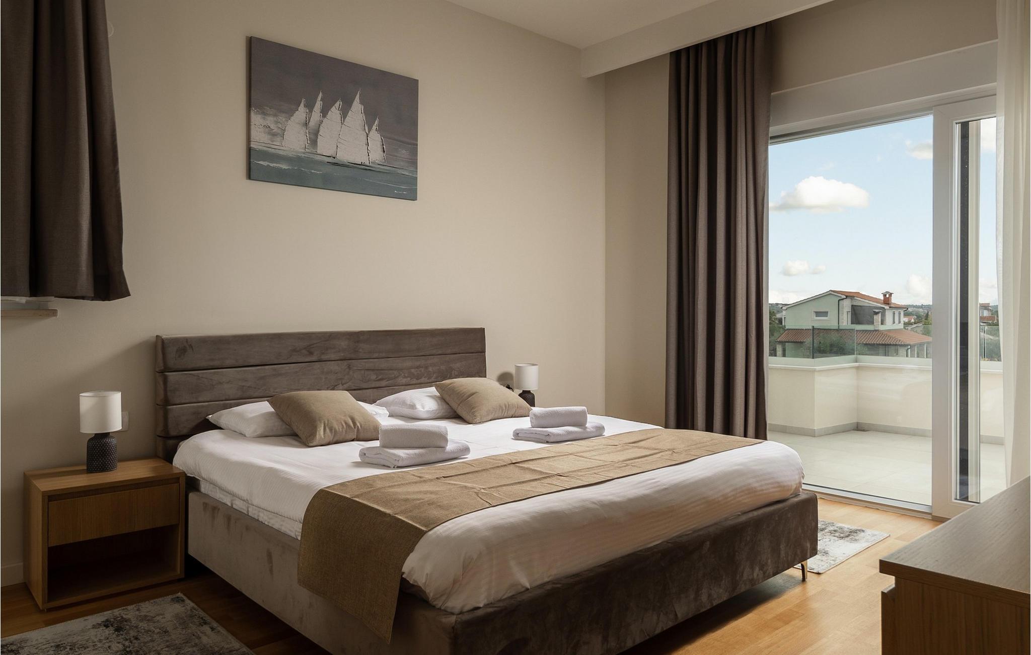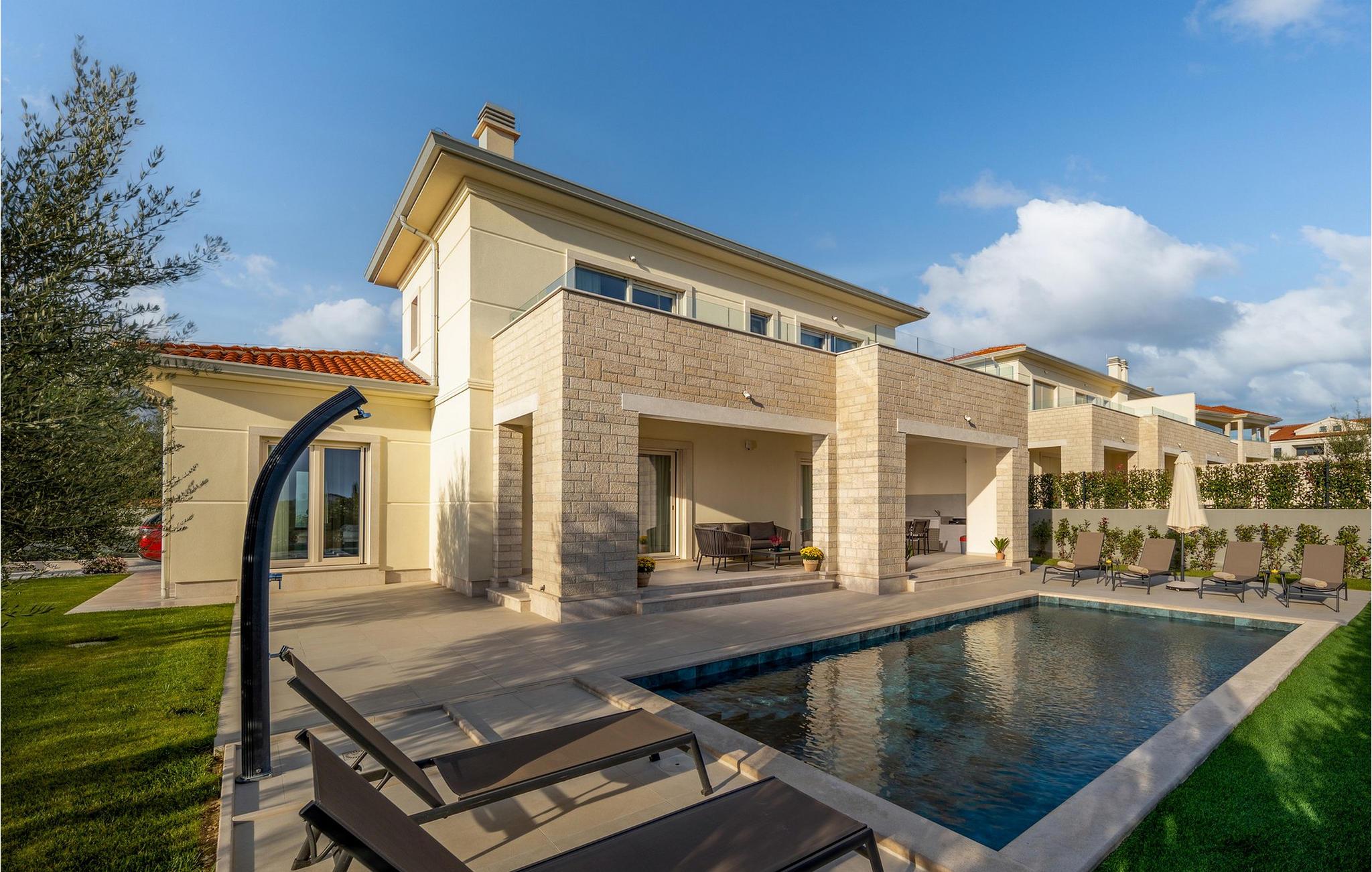 Villa Santina liegt im märchenhaften Istrien, in Vabriga. Dieses kleine Dorf liegt an der Westküste Istriens und ist nur 7 km von der Stadt Porec entfernt. Die Lage der Villa Santina ist ideal für einen ruhigen und erholsamen Urlaub mit Familie oder Freunden und gleichzeitig nah genug an allen Aktivitäten, die Sie sich wünschen. Wenn Sie sich und Ihren Lieben einen luxuriösen Urlaub gönnen möchten, dann ist diese Villa die richtige Wahl für Sie! Villa Santina wurde im rustikalen Baustil erbaut und bietet ihren Gästen 208 m2 Wohnfläche, während die Gesamtfläche des Anwesens 725 m2 beträgt. Es ist 1,5 km vom nächsten Strand und dem klaren Meer entfernt, wo Sie die Sonne genießen und die Tiefen des Meeres erkunden können. Die Villa ist voll klimatisiert und bietet Platz für maximal 8, optimalerweise 6 Personen. Die Gäste werden in 3 komfortablen und wunderschön eingerichteten Schlafzimmern mit Doppelbetten untergebracht und Sie werden begeistert sein, dass jedes der genannten Zimmer über ein eigenes Badezimmer mit Dusche verfügt. Zwei Schlafzimmer befinden sich im obersten Stockwerk der Villa und haben Zugang zu einer eigenen Terrasse mit Meerblick, während sich das dritte Schlafzimmer im Erdgeschoss befindet. Im Erdgeschoss gibt es außerdem ein geräumiges Wohnzimmer mit zwei Sofas, einem Sessel, einem Couchtisch und einem Fernseher. Direkt neben dem Wohnzimmer befindet sich das Esszimmer mit einem Esstisch für 8 Personen, sowie eine moderne und voll ausgestattete Küche mit einer Bar, hinter der sich 4 weitere Barhocker befinden. Vom Esszimmer und Wohnzimmer gibt es direkten Zugang zur Außenterrasse, wo Sie sich an heißen Sommertagen bequem im beheizten Pool von 28 m2 und einer Tiefe von 1,6 Metern erfrischen können. Sie können sich auf 8 Liegestühlen sonnen und Ihr Lieblingsbuch lesen oder einfach Ihren Körper und Ihre Seele in aller Ruhe ausruhen lassen. Außerdem gibt es auf der Außenterrasse einen überdachten Esstisch, neben dem sich ein Holzkohle- oder Holzgrill im Freien befindet, auf dem Sie köstliche Mahlzeiten für die ganze Familie zubereiten können. Neben dem Pool gibt es auch einen Sitzbereich, der sich ideal zum Kaffeetrinken am Morgen oder zum geselligen Beisammensein am Abend eignet. Zu den weiteren Ausstattungsmerkmalen der Villa Santina gehören 1 separate Toilette, eine Waschmaschine, ein Trockner und ein Bügeleisen. Als zusätzliche Schlafgelegenheit für zwei Personen gibt es außerdem ein Schlafsofa im Wohnzimmer, sowie einen Futtertisch und ein Babybett. Nach vorheriger Absprache ist eine Massage möglich. Die Villa ist komplett eingezäunt und bietet 2 private Parkplätze im Hof. Ebenso gibt es genügend Grünflächen, wo Kinder unbeschwert spielen können. Wenn Sie sich entscheiden, Istrien und Vabriga zu besuchen, können wir garantieren, dass Sie nicht enttäuscht werden. Istrien wird jedes Jahr von zahlreichen in- und ausländischen Touristen besucht, die von der Schönheit, der unberührten Natur und den märchenhaften Orten in der Nähe von Vabriga begeistert sind. Naturliebhaber können die Umgebung erkunden, in kleinen und versteckten Buchten schwimmen und das Tal des Flusses Mirna besuchen, wo es trüffelreiche Wälder gibt. Wenn Sie sich mehr für das kulturelle Erbe interessieren, erreichen Sie in nur 20 Minuten mit dem Auto die Stadt Porec, und in der Nähe liegen weitere Städte wie Novigrad, Rovinj oder Pula, wo Sie das römische Amphitheater begeistern wird. Das gastronomische Angebot ist ausgezeichnet und umfasst zahlreiche Restaurants, Tavernen und ländliche Haushalte, in denen Sie istrische Spezialitäten und erstklassige lokale Weine probieren können. Geben Sie sich dem Charme Istriens hin und genießen Sie einen wunderschönen Jahresurlaub in der Villa Santina! Haustiere sind in dieser Unterkunft nach Ermessen des Eigentümers oder gegen eine Gebühr gestattet.