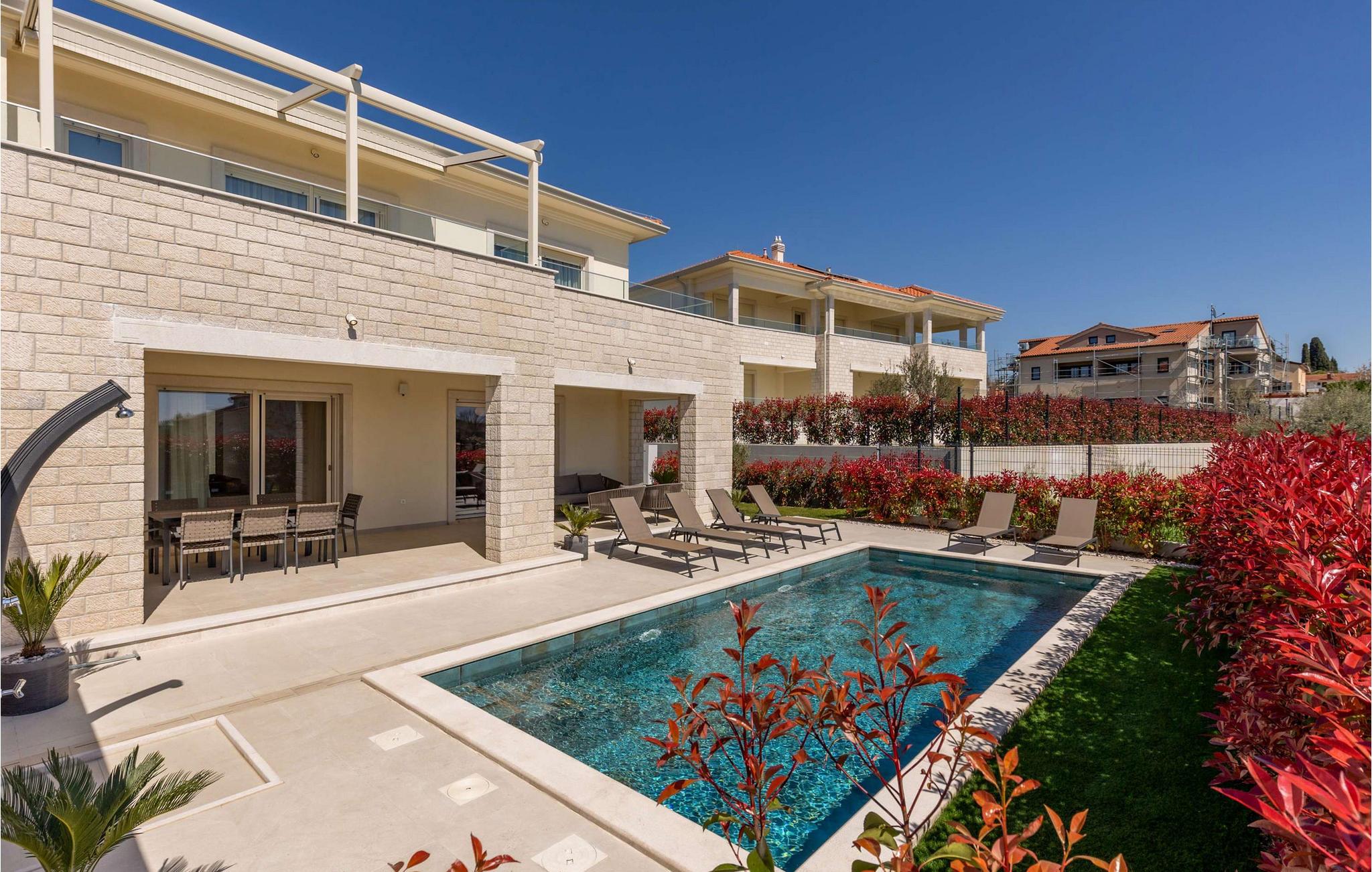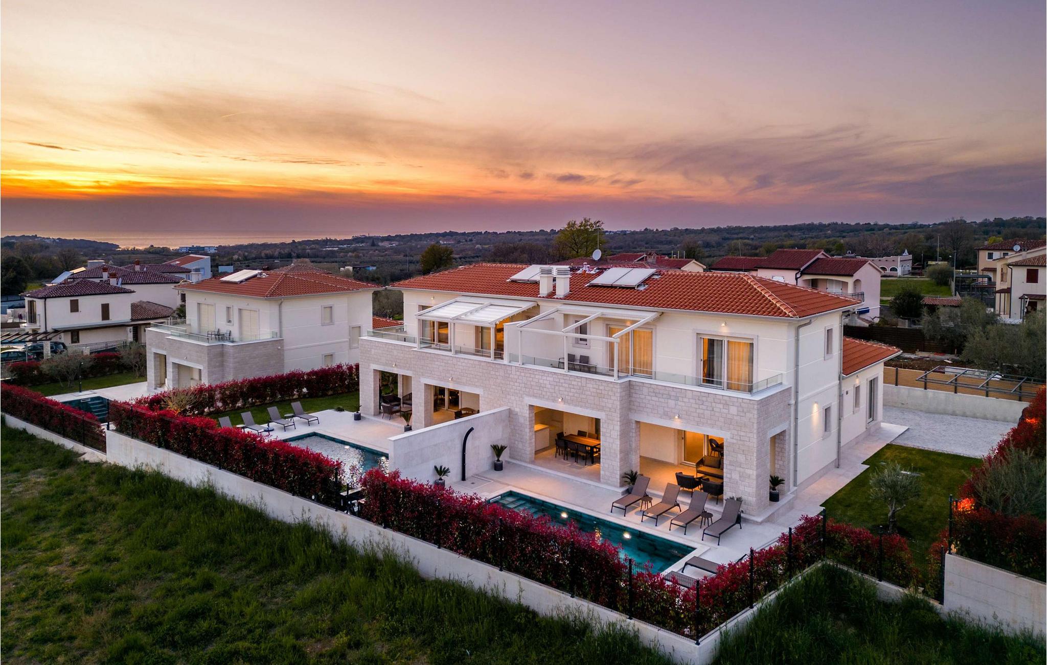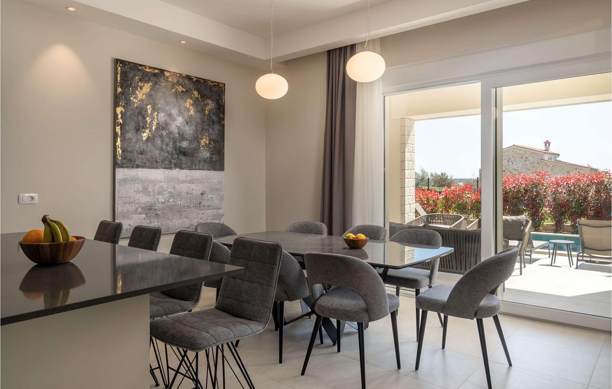 Vabriga ist eine kleine, romantische istrische Stadt an der Westküste Istriens, in der Nähe des beliebten Touristenziels Porec. Es gibt viele Schönheiten an diesem wunderschönen Ort, aber eine der schönsten ist sicherlich eine bezaubernde Villa, die Ihnen den Atem raubt und sich in unmittelbarer Nähe des Zentrums von Vabriga befindet. Villa Lara Vabriga ist eine moderne Villa mit einer Fläche von 208 m2. Es liegt in einer ruhigen Umgebung, umgeben von viel Grün und den Düften der mediterranen Flora. Diese bezaubernde Villa bietet alles, was Sie für einen erholsamen und komfortablen Aufenthalt in Istrien benötigen. Die Villa ist ideal für eine optimale Anzahl von 6 Personen, die maximale Anzahl beträgt 8. Sie ist mit 3 geräumigen, klimatisierten Schlafzimmern mit einem Doppelbett und jeweils einem eigenen Badezimmer ausgestattet, was sie zu einem idealen Aufenthaltsort macht mit Familie oder Freunden. Darüber hinaus verfügt die Villa über eine moderne Küche und ein geräumiges Wohnzimmer mit einem ausziehbaren Sofa für weitere 2 Personen. Vom Wohnzimmer aus haben Sie direkten Zugang zur großen Terrasse, die sich ideal zum Entspannen und Genießen eines romantischen Abends unter dem Sternenhimmel mit Blick auf den wunderschönen Pool eignet. Der Pool ist 28 m2 groß und verfügt über eine Heizung, weshalb diese Villa eine ausgezeichnete Wahl für alle Liebhaber eines Urlaubs abseits der Touristenströme und der Badesaison ist. Im umzäunten Garten der Villa steht außerdem ein überdachter Parkplatz für 2 Autos zur Verfügung. Wenn es um eine größere Anzahl von Personen geht, befindet sich neben der Villa Lara Vabriga die Schwestervilla Bor, die insgesamt optimal 12, maximal 16 Personen beherbergen kann. Villa Lara Vabriga ist ein idealer Ort für alle, die möchten um die Schönheit Istriens zu genießen, aber auch für diejenigen, die Ruhe und Privatsphäre suchen. Hier finden Sie alles, was Sie für einen erholsamen Urlaub mit Ihren Lieben benötigen, und das alles in der wunderschönen Umgebung eines der schönsten Orte Istriens, der nur 1,3 km vom nächsten Strand entfernt ist. Für Abenteuerlustige bietet die gesamte Region zahlreiche Aktivitäten wie einen Aquapark, Weintouren, Tauchen, Golf, Reiten auf den schönsten Radwegen, einen Besuch im Botanischen Garten usw. Wenn Sie sich selbst davon überzeugen möchten, sind wir herzlich willkommen Sie in unserer Villa Lara Vabriga.