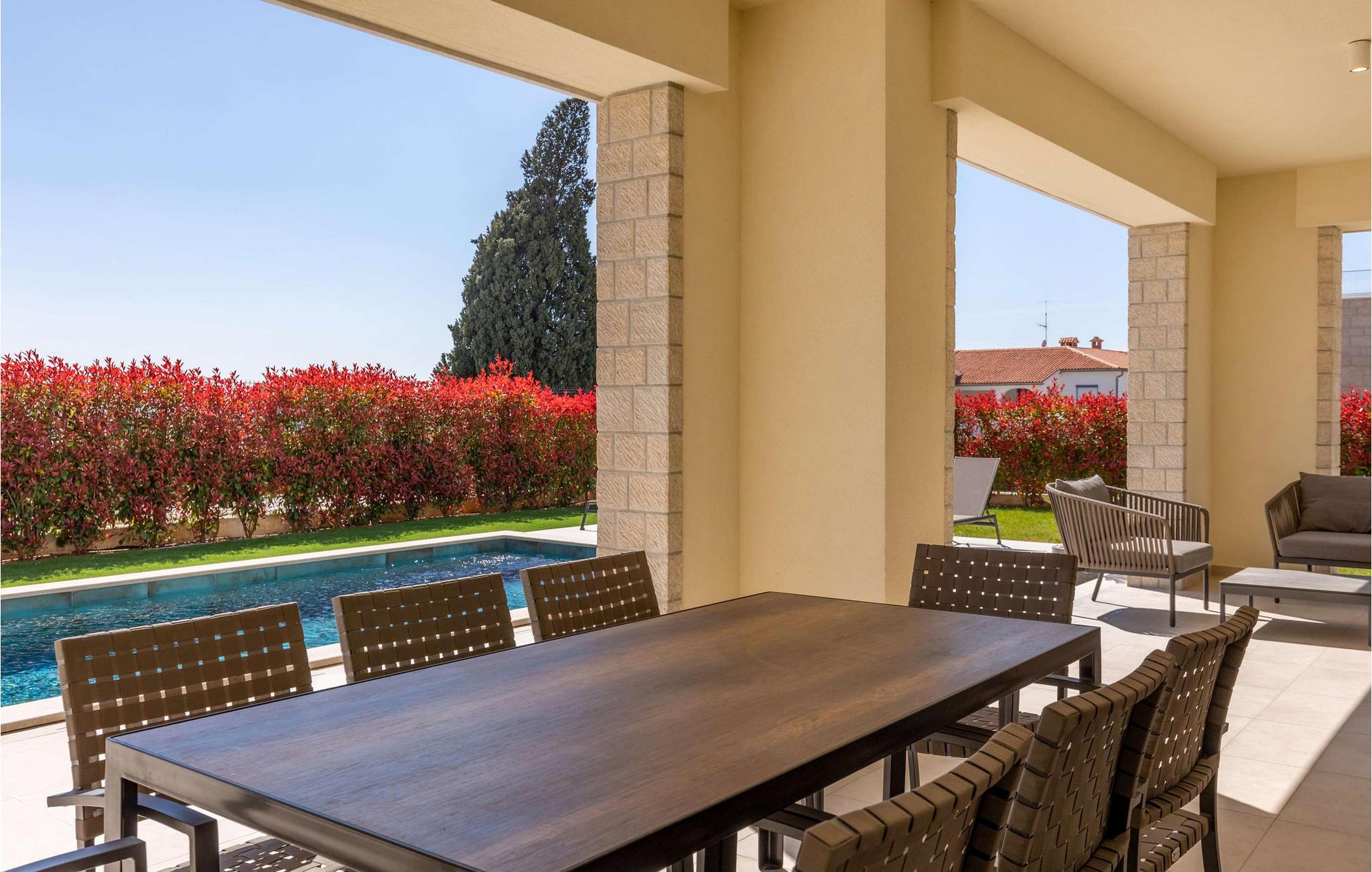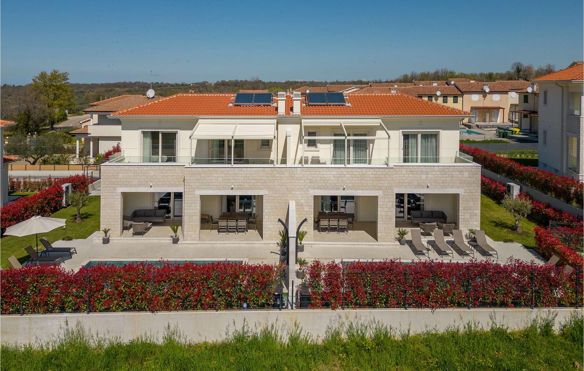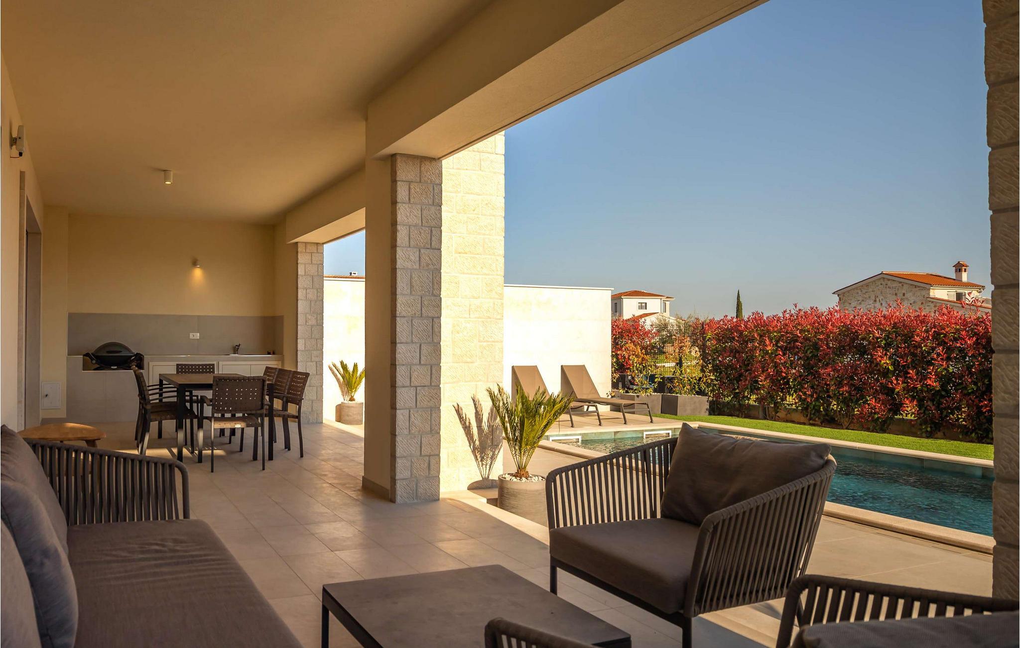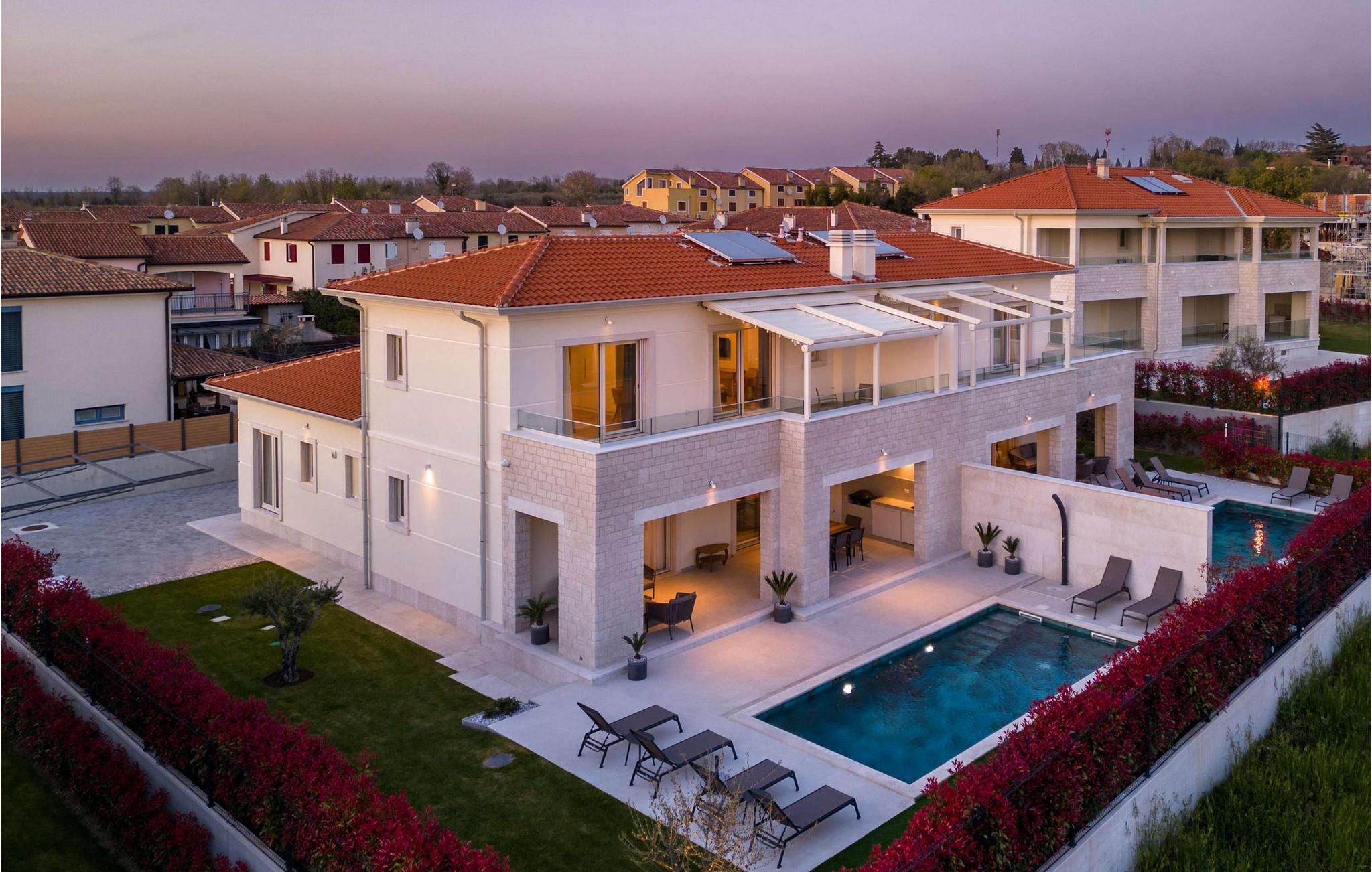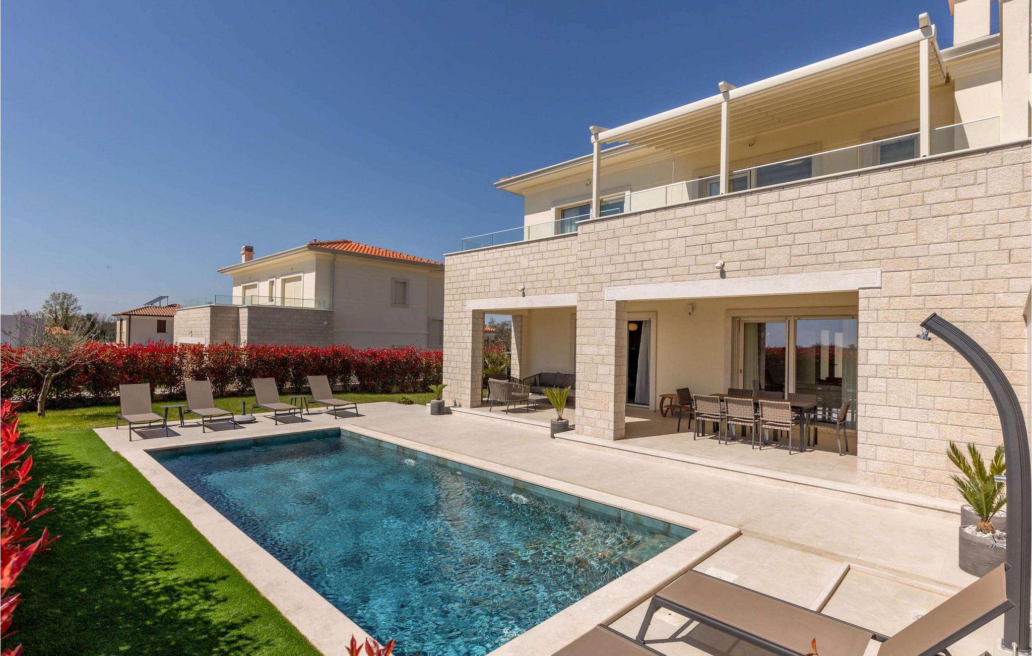 Auf der wunderschönen istrischen Halbinsel, in der ruhigen Stadt Vabriga, befindet sich eine der märchenhaftesten Villen der Region – Villa Bor. Diese wunderschöne Villa liegt in der Nähe des Meeres, nur 1,3 km vom nächsten Strand entfernt, und bietet einen unglaublichen Blick auf die malerische Natur Istriens und die Landschaft, in der Sie zu den schönsten Gedanken reisen und sich vollkommen entspannen können. Villa Bor ist ein perfektes Beispiel für modernes Design. Diese Luxusvilla liegt auf einem wunderschönen Grundstück und besteht aus 3 klimatisierten Schlafzimmern, jedes mit eigenem Bad, sowie einem modernen Wohnzimmer und einer Küche. Das Innere der Villa ist mit modernsten Geräten und hochwertigen Möbeln ausgestattet und strahlt Eleganz und Raffinesse aus. Dementsprechend beeindruckend ist auch die Gartenanlage der Villa Bor. Eine großzügige Terrasse mit großem Pool ist von viel Grün und mediterranen Pflanzen umgeben und der Garten bietet einen wunderschönen Blick auf die umliegenden Hügel. Hier finden Sie den perfekten Ort zum Entspannen und Genießen der Privatsphäre, aber auch zum Spaß mit Familie oder Freunden. Ihnen steht ein 28 m² großes, beheiztes Schwimmbad zur Verfügung, das die Atmosphäre unter dem Sternenhimmel noch schöner macht. Die Villa ist komplett eingezäunt und bietet im Hof 2 überdachte Parkplätze für Ihre Autos. Wenn es um eine größere Anzahl von Personen geht, befindet sich neben der Villa Bor die Schwestervilla Lara Vabriga, die insgesamt optimal 12, maximal 16 Personen beherbergen kann. Villa Bor ist ein ideales Reiseziel für alle, die es möchten Genießen Sie den Luxus und die wunderschöne Natur Istriens. Es liegt in der Nähe vieler Touristenattraktionen, darunter berühmte istrische Weine, istrische Gastronomie und viele kulturelle und historische Sehenswürdigkeiten. Darüber hinaus bietet Ihnen diese wunderschöne Villa absolute Privatsphäre und Entspannung für einen perfekten Urlaub, an den Sie sich noch lange erinnern werden. Willkommen in der Villa Bor!