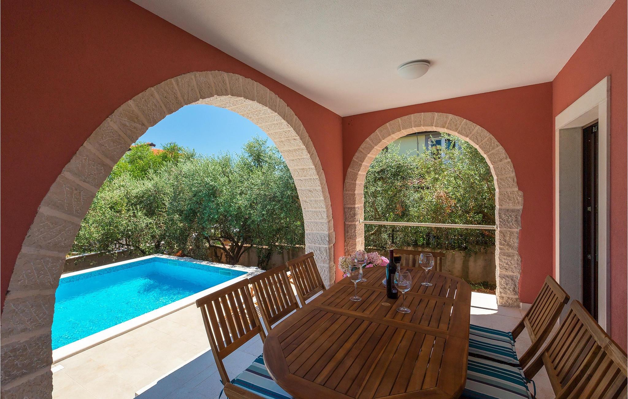 Charmante Villa Rea befindet sich in Porec, einer wunderschönen Küstenstadt, die für reiches Kulturerbe, schöne Strände und zahlreiche Restaurants bekannt ist, in denen Sie die leckere istrische Küche ausprobieren können. Die Villa Rea ist nur 3 km vom Porec Stadtzentrum entfernt und kann im gemütlich eingerichteten Interieur 8 Gäste beherbergen, was sie ideal für einen Familienurlaub macht. Im Erdgeschoß befindet sich das geräumige Wohnzimmer mit SAT TV und einem Kamin. Neben dem Wohnzimmer ist die komplett ausgestattete Küche mit Essbereich, wovon Sie einen direkten Zugang zur Terrasse haben. Die Villa hat insgesamt 5 Schlafzimmer und 2 Badezimmer, von denen sich ein Schlafzimmer und ein Badezimmer im Erdgeschoß befinden.