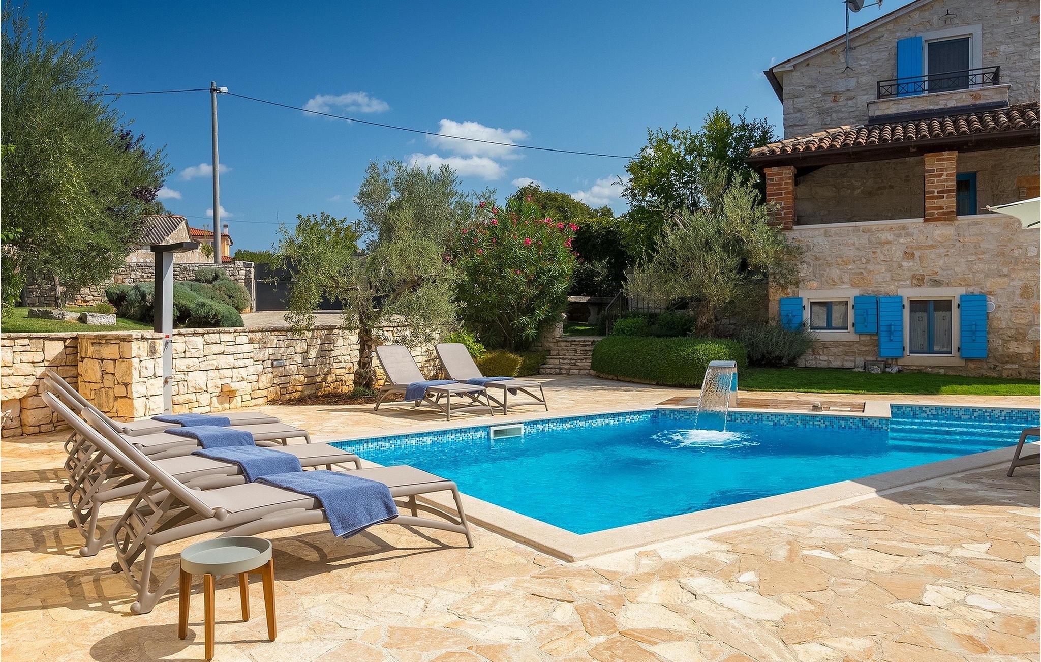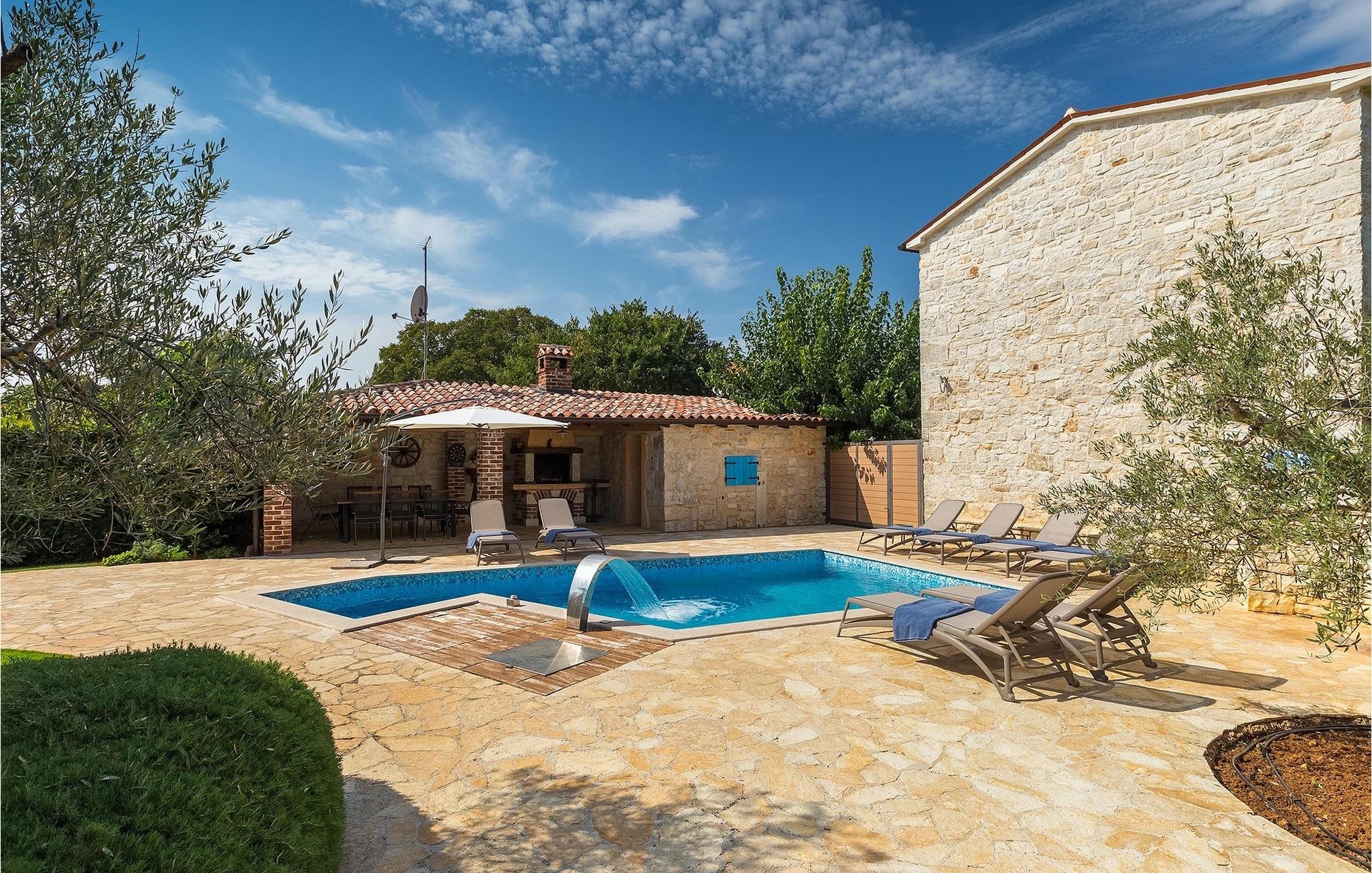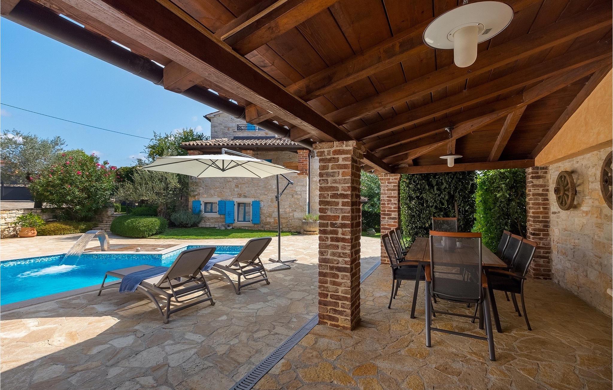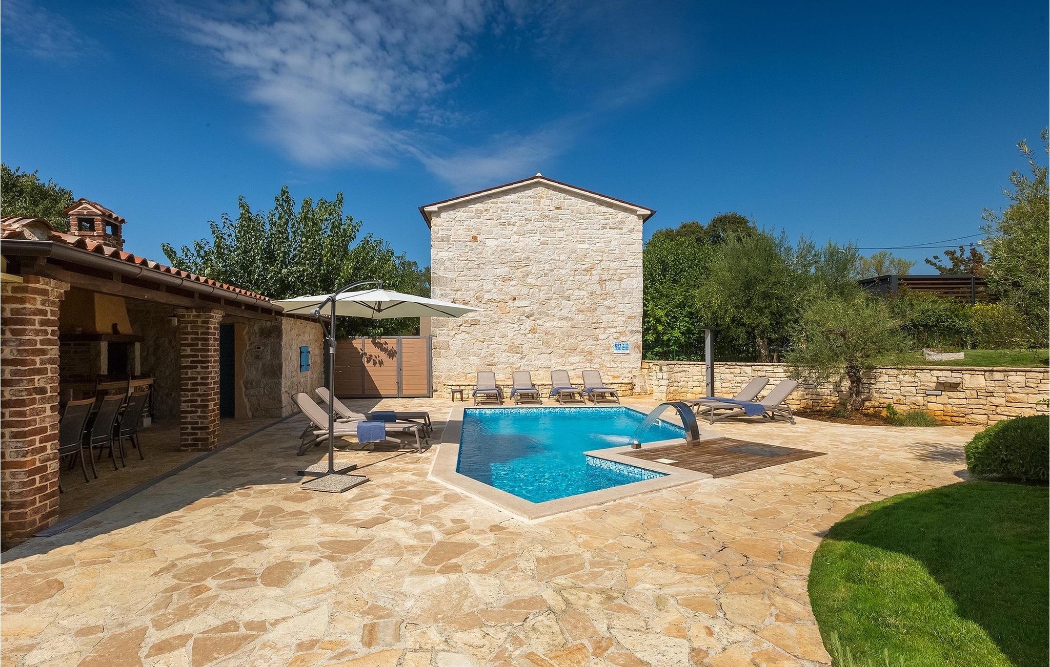 Diese Villa liegt in ruhiger, ländlicher Umgebung, die es zu einem perfekten ruhigen Rückzug aus der Hektik einer modernen Leben macht . Dennoch, nur eine kurze Autofahrt entfernt von Istrien touristischen und historischen Zentren. Das vier Schlafzimmer Villa aus Stein bietet allen eigenem Bad und eigenem Pool. Es ist ideal für Paare oder für Familien Urlaub.Die Stein Residenz, von 170 m2, hat die Kapazität für 8 Personen . Es ist in völliger Harmonie mit der Landschaft und der traditionellen Architektur angepasst. Die Villa wurde vor zwei Jahrhunderten mit lokalem Stein und natürlichen Materialien gebaut. Von den Veranden des Hauses kann man die Abende, Sternenhimmel mit herrlichem Meerblick genießen.