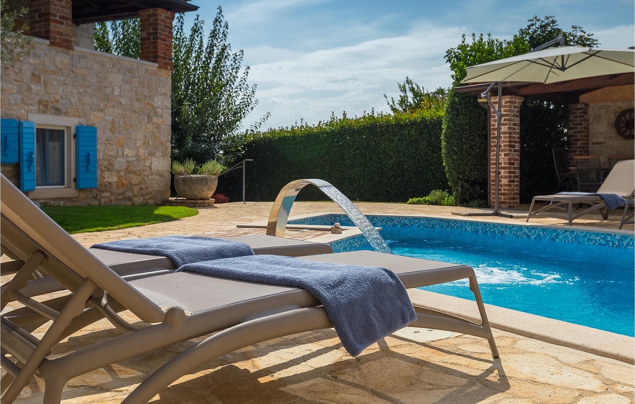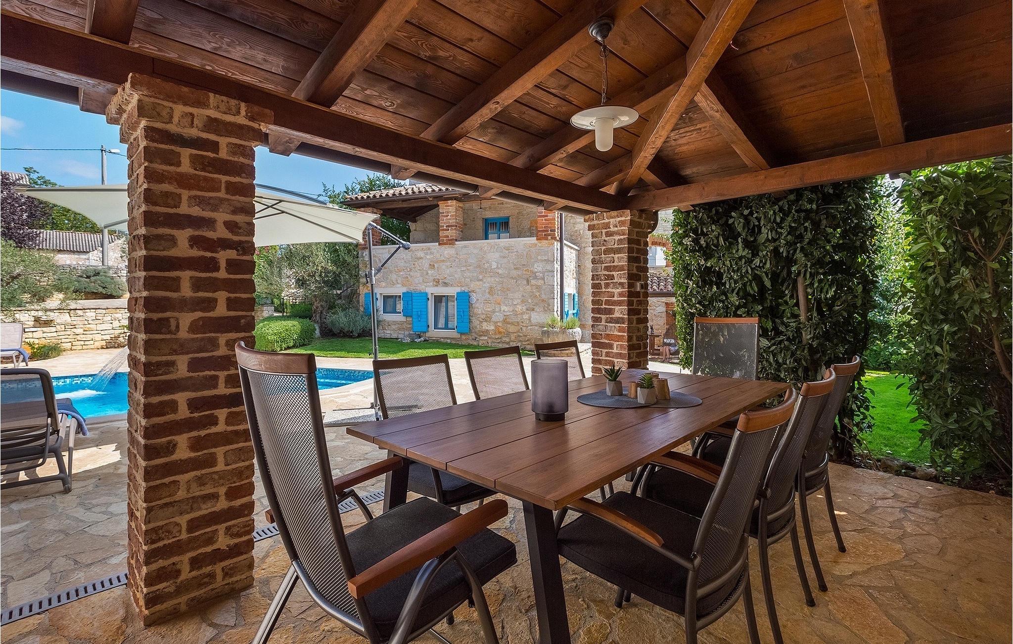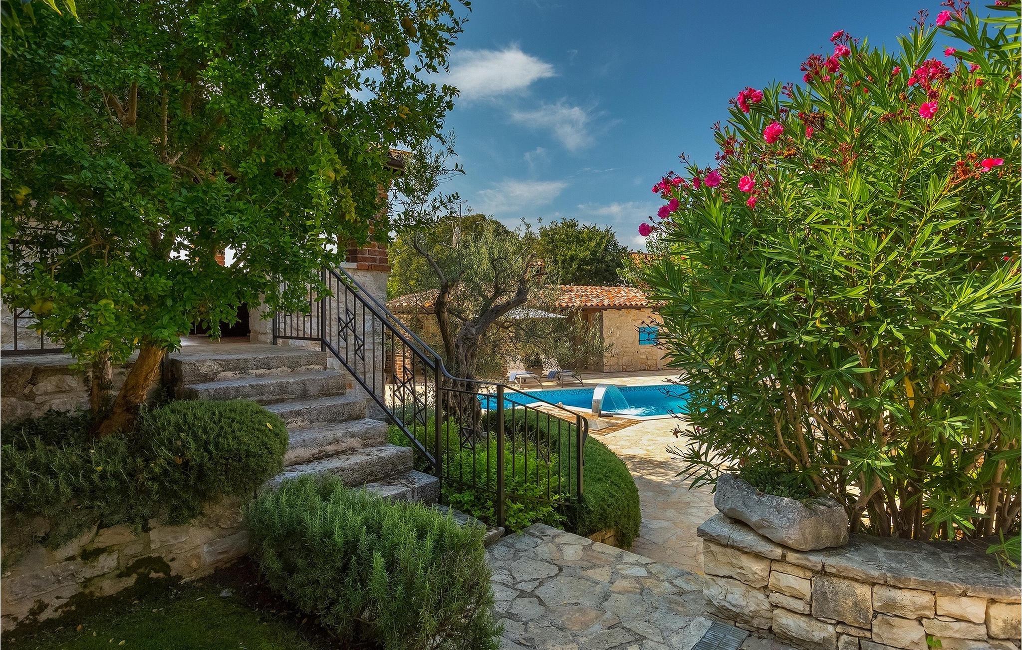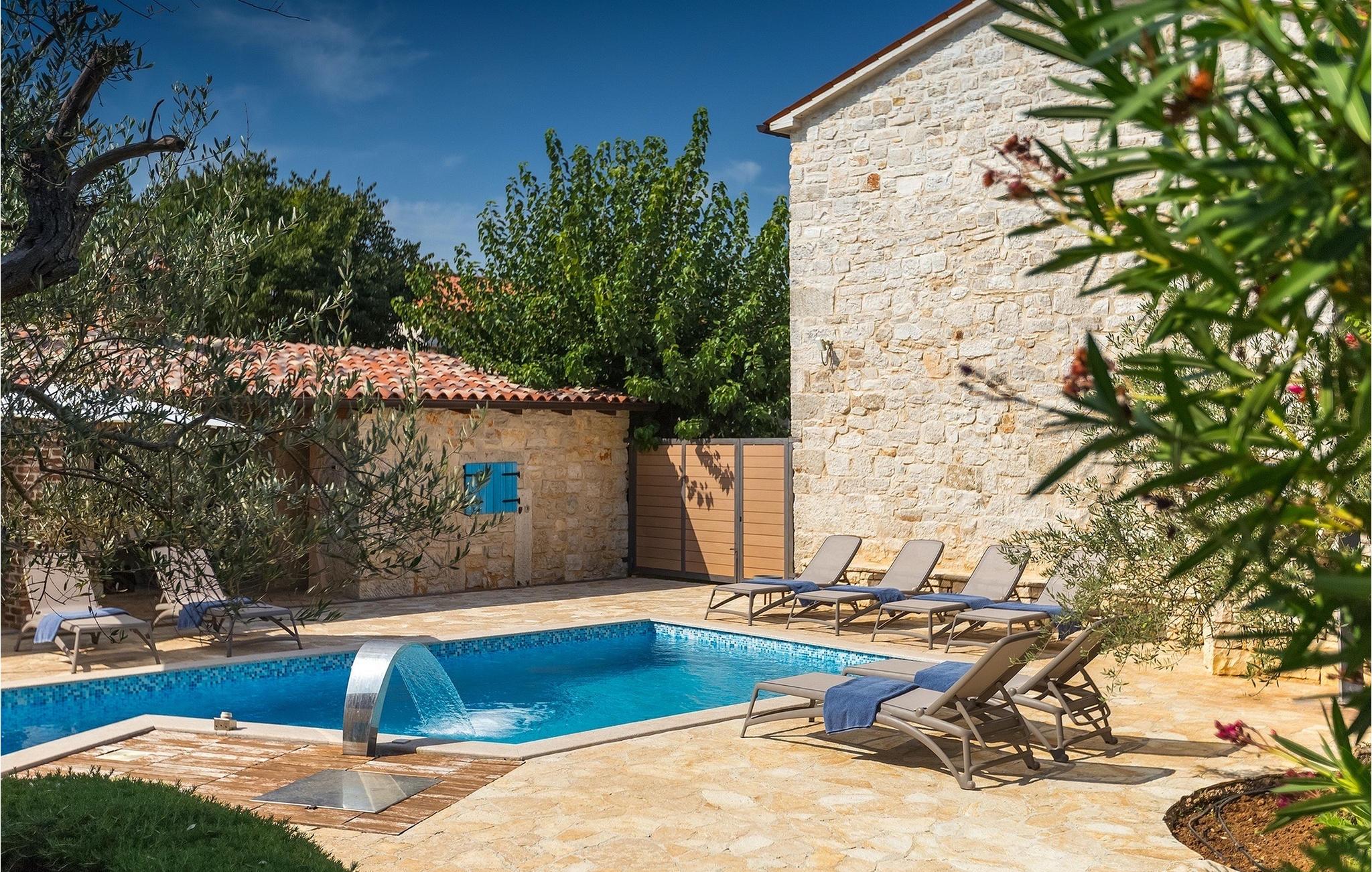 Diese Villa liegt in ruhiger, ländlicher Umgebung, die es zu einem perfekten ruhigen Rückzug aus der Hektik einer modernen Leben macht . Dennoch, nur eine kurze Autofahrt entfernt von Istrien touristischen und historischen Zentren. Das vier Schlafzimmer Villa aus Stein bietet allen eigenem Bad und eigenem Pool. Es ist ideal für Paare oder für Familien Urlaub.Die Stein Residenz, von 170 m2, hat die Kapazität für 8 Personen . Es ist in völliger Harmonie mit der Landschaft und der traditionellen Architektur angepasst. Die Villa wurde vor zwei Jahrhunderten mit lokalem Stein und natürlichen Materialien gebaut. Von den Veranden des Hauses kann man die Abende, Sternenhimmel mit herrlichem Meerblick genießen.