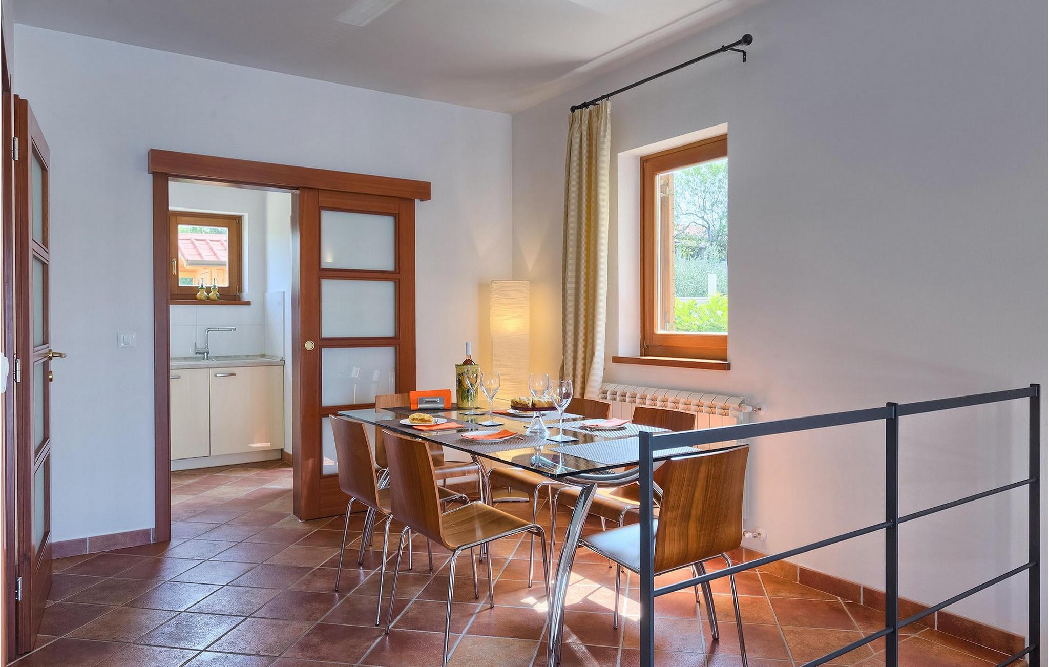 Diese charmante Familienvilla befindet sich in einem kleinen Dorf in der Nähe von Porec. Die schicke Villa Roza hat drei Schlafzimmern und einen schönen Garten mit privatem Pool. Es ist die perfekte Traumvilla für den erholsamen Urlaub, den Sie suchen. Im wunderschönen Garten befinden sich Olivenbäume, die ein authentisches Symbol Istriens sind. Sobald Sie die Villa Roza betreten, befinden Sie sich im offenen Erdgeschoss, das aus einem hellen und eleganten Ess-Bereich und einer voll ausgestatteten Küche besteht.