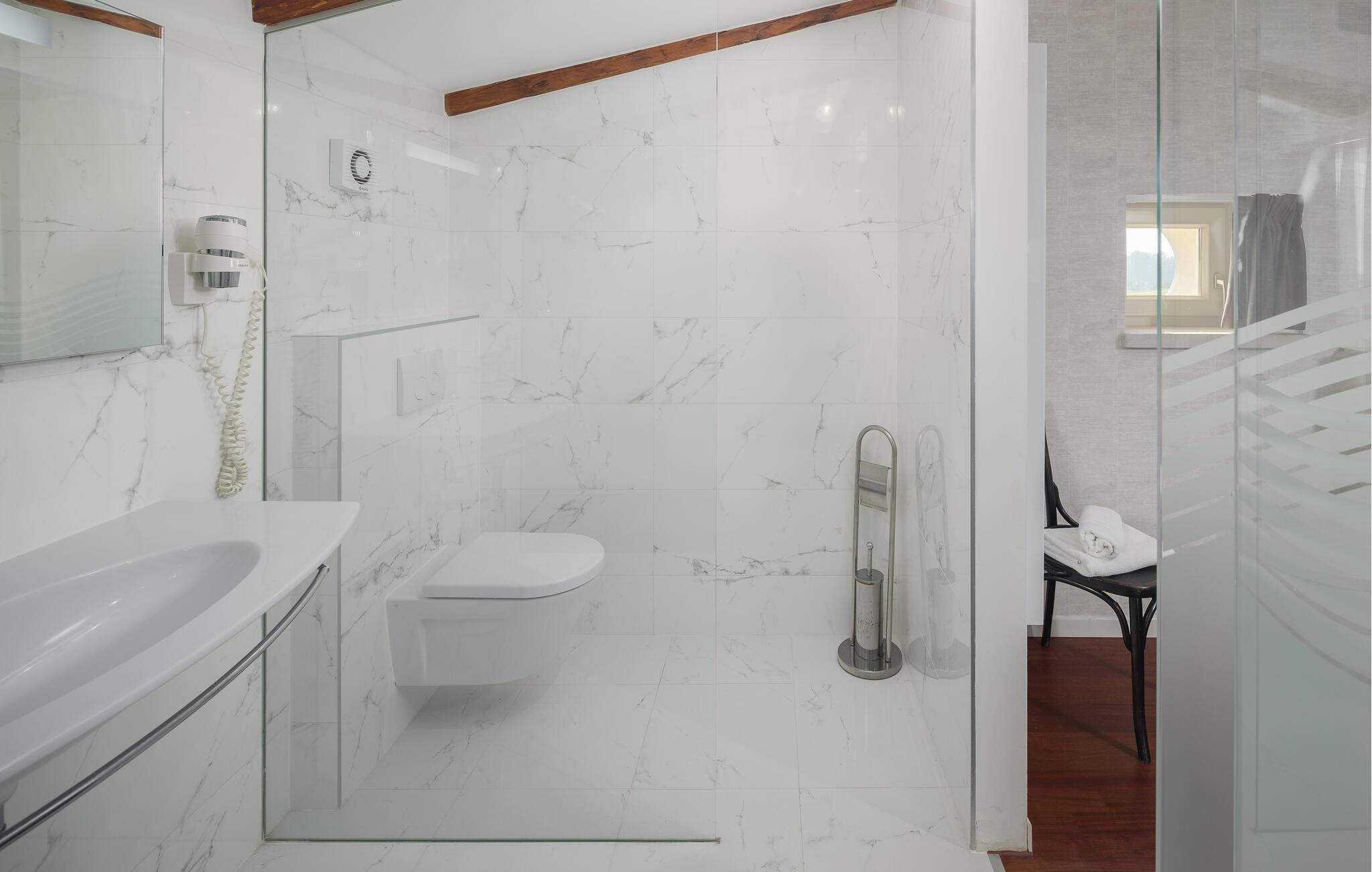 - WC mit warmem und kaltem Wasser, Dusche