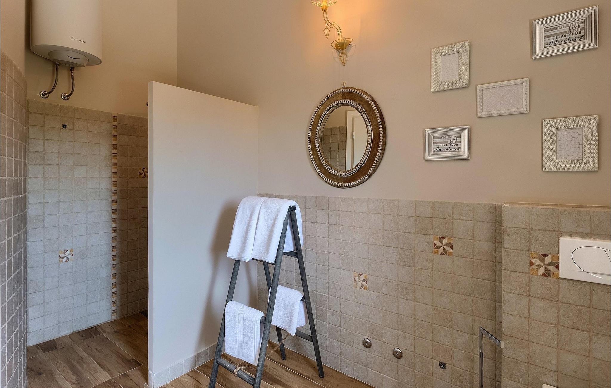 Das Erdgeschoß bietet einen gemütlichen Wohn- und Essbereich, die Küche, ein Schlafzimmer, ein Badezimmer und die separate Toilette. Im ersten Stock finden Sie 3 weitere Schlafzimmer und 2 weitere Badezimmer. Alle Schlafzimmer sind klimatisiert und haben ein Doppelbett.