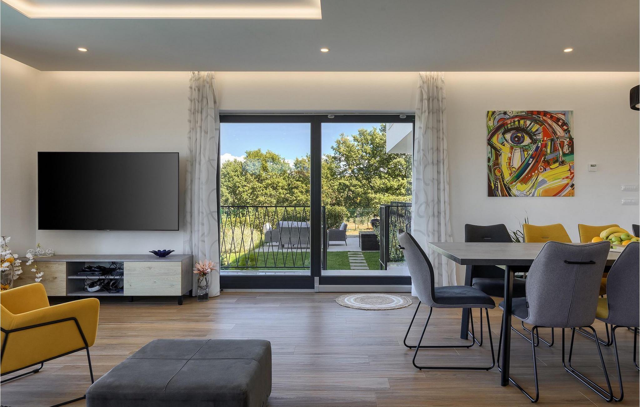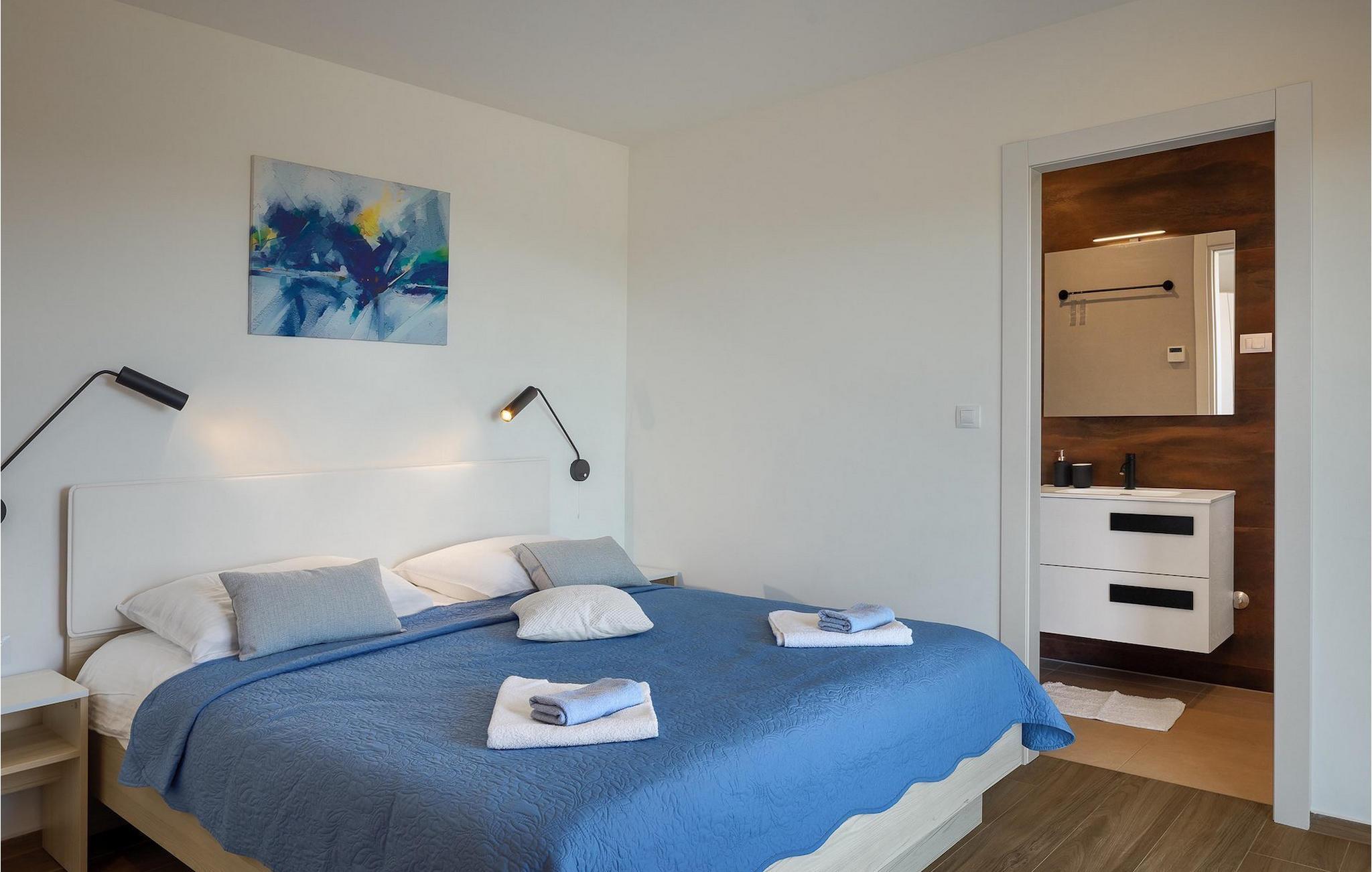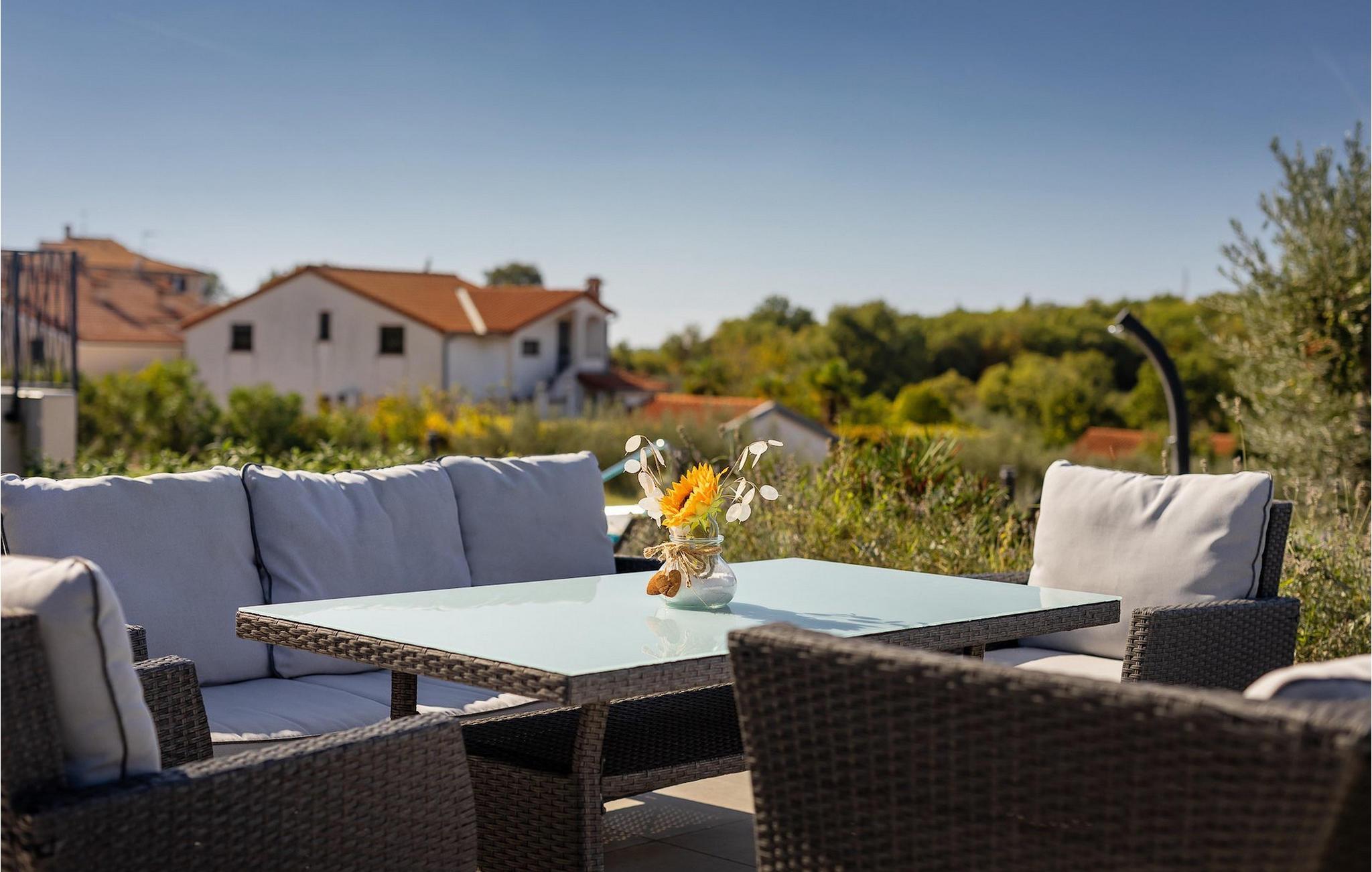 Brauchen Sie ein wenig mehr Abwechslung? Im Untergeschoss der Villa finden Sie mehr Inhalte für Ihren Urlaub. Außerdem stehen Ihnen 3 Fahrräder zur Verfügung, auf denen Sie die malerische Küstenstadt Porec erkunden können. Die Villa Maya Mugeba bietet nicht nur eine ausgezeichnete Lage, sondern auch die besten Voraussetzungen für einen erholsamen Urlaub im schönen Istrien.Villa Maya Mugeba befindet sich in Mugeba, einem ruhigen Dorf nahe Porec. Der nächste Strand ist nur 2 km entfernt und befindet sich im Badeort Zelena and der Westküste Istriens. Dort finden Sie zauberhafte Stein - und Kieselstrände, an denen Sie die Seele baumeln lassen können. Für diverse Aktivitäten müssen Sie Mugeba nicht verlassen. Das nächste Restaurant, Geschäft und Cafe befinden sich Laufnähe der Villa. Natürlich sollten Sie sich einen Besuch der historischen Küstenstadt Porec, die nur 10 Autominuten von Villa Maya Mugeba entfernt ist, nicht entgehen lassen. Besuchen Sie Sehenswürdigkeiten wie z. B. die Euphrasius-Basilika, die zum Unesco Kulturerbe zählt, oder spazieren Sie entlang der Promenade. Zahlreiche Cafes und Restaurants locken mit einem gastronomischen Angebot, das keine Wünsche offen lässt.