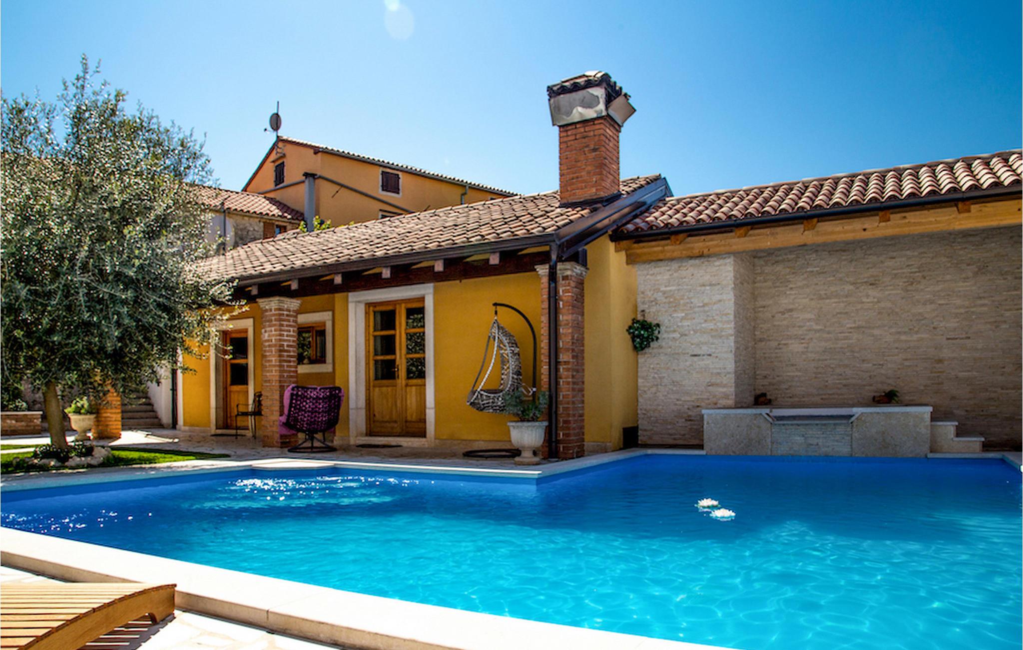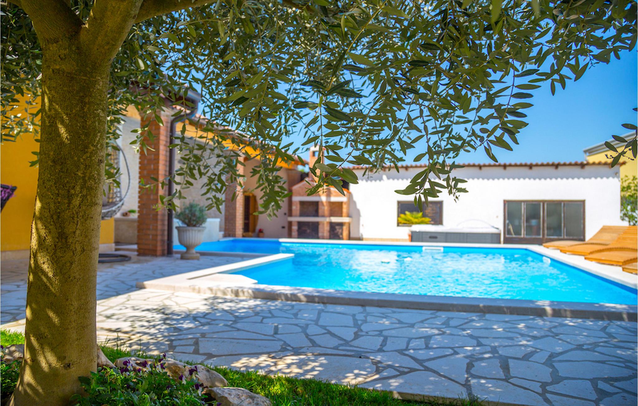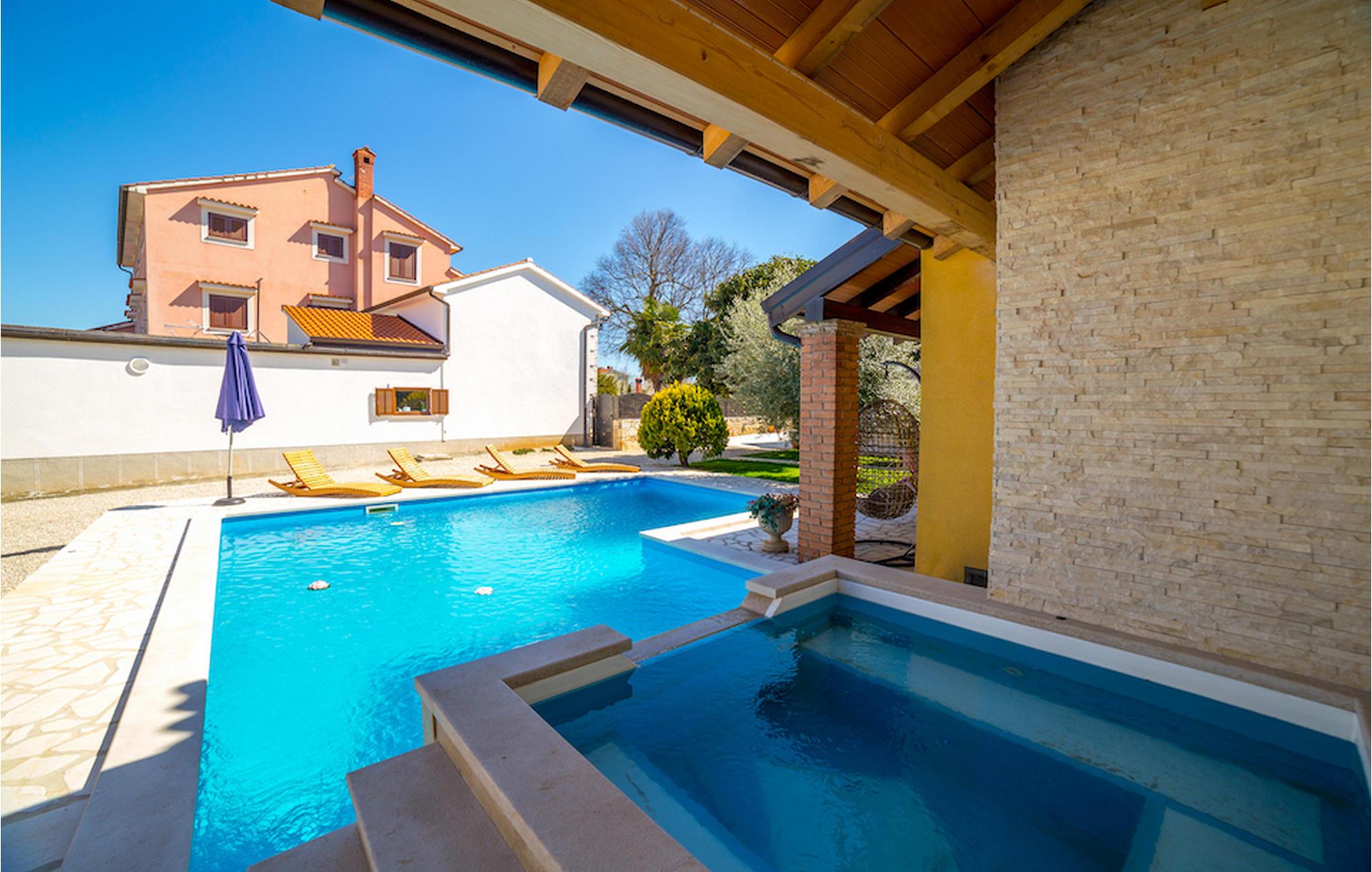 Gelegen am Rande der wunderschönen Küstenstadt Porec, die für ihr reiches kulturelles Erbe bekannt ist, die Villa Olea Histria kann bis zu 6+2 Personen beherbergen. Aus diesem Grund ist Sie ideal für größere Familien. Diese schöne Villa hat 3 Schlafzimmer mit Doppelbetten und 3 Badezimmer, wovon 2 ensuite sind. Im Erdgeschoß finden Sie das gemütliche Wohnzimmer mit Essbereich und eine komplett ausgestattete Küche. Im Inneren der Villa wurde ein traditionelles Aussehen mit teilweise offenen Steinwänden und vintage Möbeln mit moderner Ausstattung kombiniert, wie z.B. WiFi und Klimaanlage. Einer der Hauptvorteile dieser Villa ist die gut ausgerüstete Taverne mit Essbereich, massiven Holzmöbeln und einem Steinkamin, der eine warme und einladende Atmosphäre schafft. Tauchen Sie in den einladenden Pool im Garten ein oder entspannen Sie sich im Jacuzzi. Ihre private Sauna verleiht der Villa einen ganz besonderen Hauch von Exklusivität. Denjenigen, die gerne Rad fahren, wird die Tatsache, dass in der Villa Fahrräder für die ganze Gruppe verfügbar sind, sicherlich gefallen.Villa Olea Histria befindet sich in einem kleinen, pittoresken Dorf nahe Porec, der Perle der Adria. Porec hat tiefe Wurzeln, die bis in die Römerzeit zurückgehen, also es ist kein Wunder, dass die Stadt vor allem für ihr reiches kulturelles Erbe bekannt ist. Falls Sie gerne besichtigen, ist die Euphrasius - Basillika unter Unesco - Schutz ein Muß. Hier finden Sie zahlreiche Museen und Galerien, aber den Sportbegeisterten stehen auch verschiedene Sportarten zur Verfügung (Tennis, Beachvolleyball, Fußball, Reiten, Radfahren, Wandern, und selbstverständlich Wassersporte). Nicht zuletzt ist die Stadt Porec auch für viele, atemberaubende Strände bekannt, auf denen Sie entspannen und die Sonne genießen können.