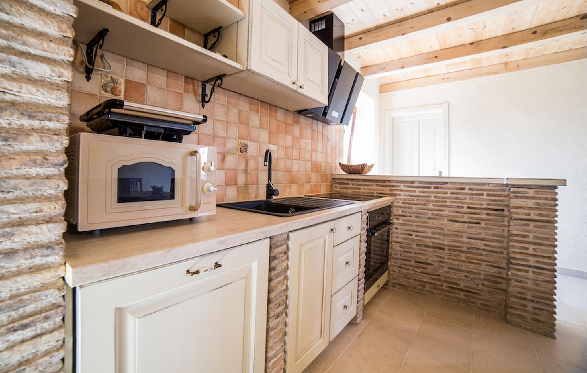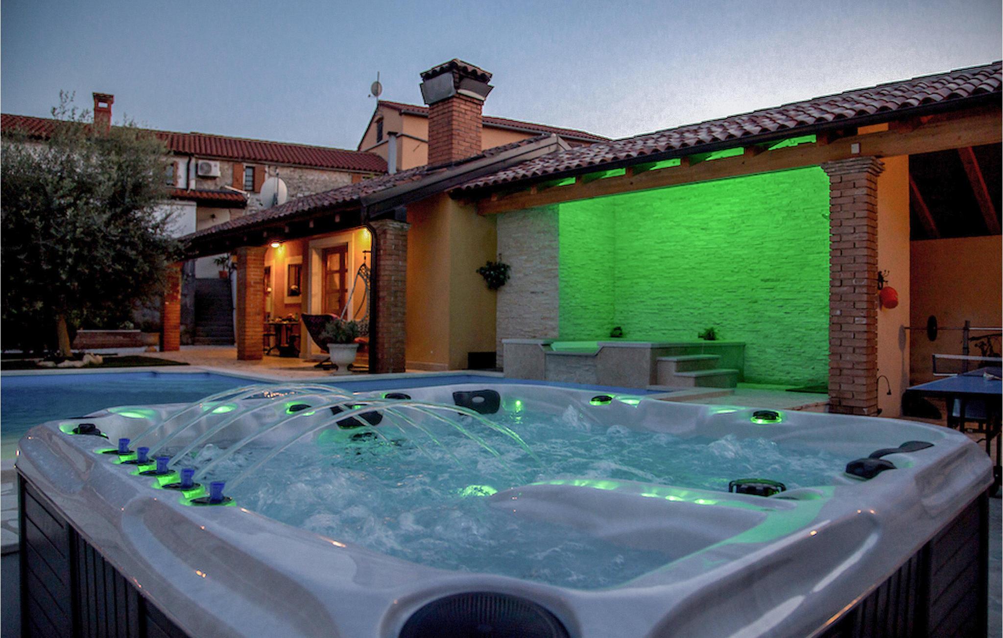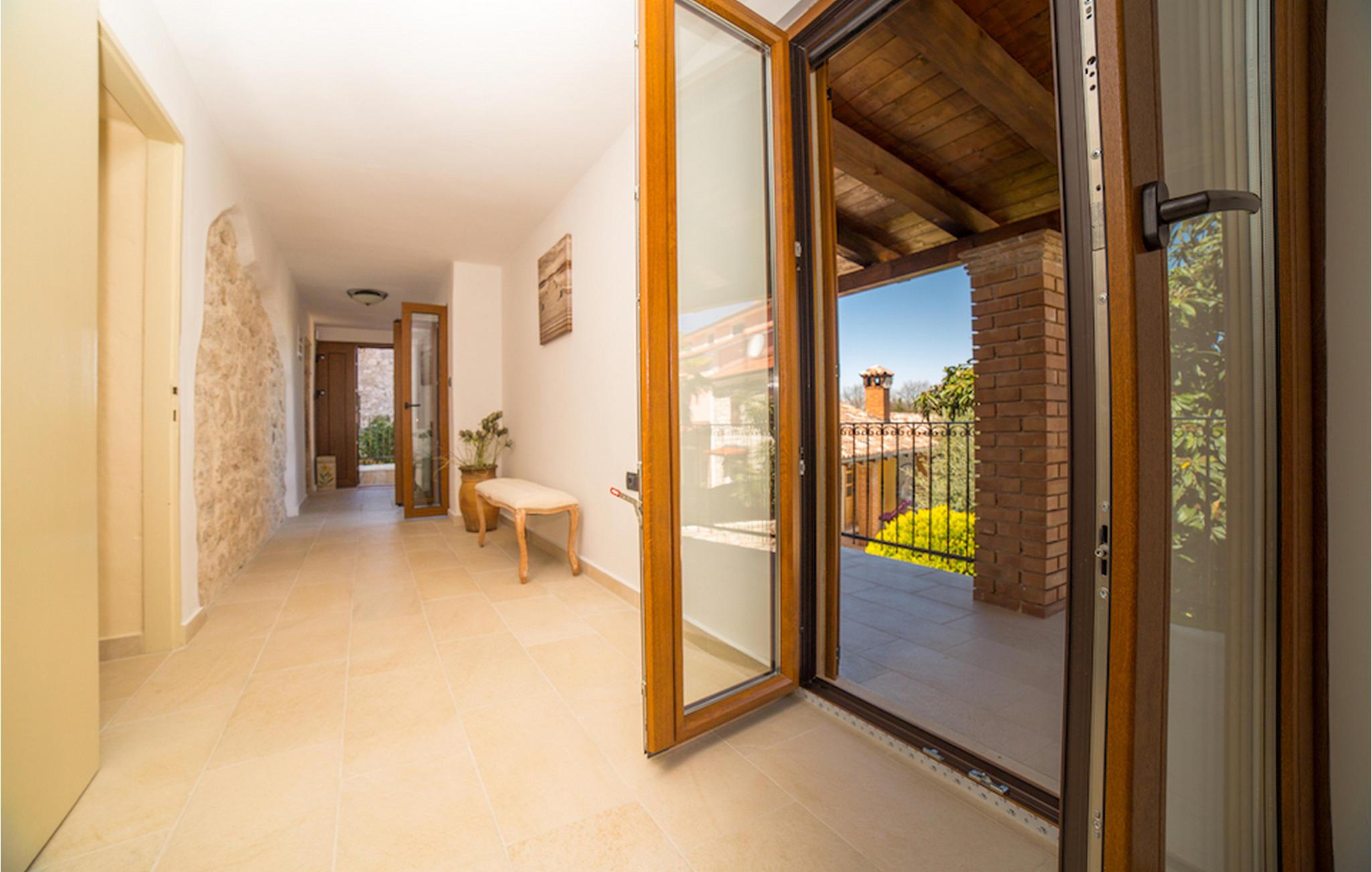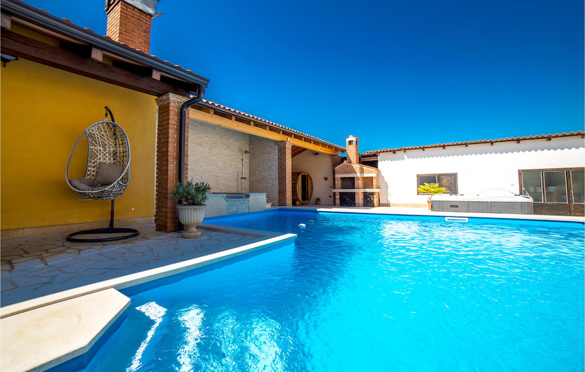 Gelegen am Rande der wunderschönen Küstenstadt Porec, die für ihr reiches kulturelles Erbe bekannt ist, die Villa Olea Histria kann bis zu 6+2 Personen beherbergen. Aus diesem Grund ist Sie ideal für größere Familien. Diese schöne Villa hat 3 Schlafzimmer mit Doppelbetten und 3 Badezimmer, wovon 2 ensuite sind. Im Erdgeschoß finden Sie das gemütliche Wohnzimmer mit Essbereich und eine komplett ausgestattete Küche. Im Inneren der Villa wurde ein traditionelles Aussehen mit teilweise offenen Steinwänden und vintage Möbeln mit moderner Ausstattung kombiniert, wie z.B. WiFi und Klimaanlage. Einer der Hauptvorteile dieser Villa ist die gut ausgerüstete Taverne mit Essbereich, massiven Holzmöbeln und einem Steinkamin, der eine warme und einladende Atmosphäre schafft. Tauchen Sie in den einladenden Pool im Garten ein oder entspannen Sie sich im Jacuzzi. Ihre private Sauna verleiht der Villa einen ganz besonderen Hauch von Exklusivität. Denjenigen, die gerne Rad fahren, wird die Tatsache, dass in der Villa Fahrräder für die ganze Gruppe verfügbar sind, sicherlich gefallen.Villa Olea Histria befindet sich in einem kleinen, pittoresken Dorf nahe Porec, der Perle der Adria. Porec hat tiefe Wurzeln, die bis in die Römerzeit zurückgehen, also es ist kein Wunder, dass die Stadt vor allem für ihr reiches kulturelles Erbe bekannt ist. Falls Sie gerne besichtigen, ist die Euphrasius - Basillika unter Unesco - Schutz ein Muß. Hier finden Sie zahlreiche Museen und Galerien, aber den Sportbegeisterten stehen auch verschiedene Sportarten zur Verfügung (Tennis, Beachvolleyball, Fußball, Reiten, Radfahren, Wandern, und selbstverständlich Wassersporte). Nicht zuletzt ist die Stadt Porec auch für viele, atemberaubende Strände bekannt, auf denen Sie entspannen und die Sonne genießen können.