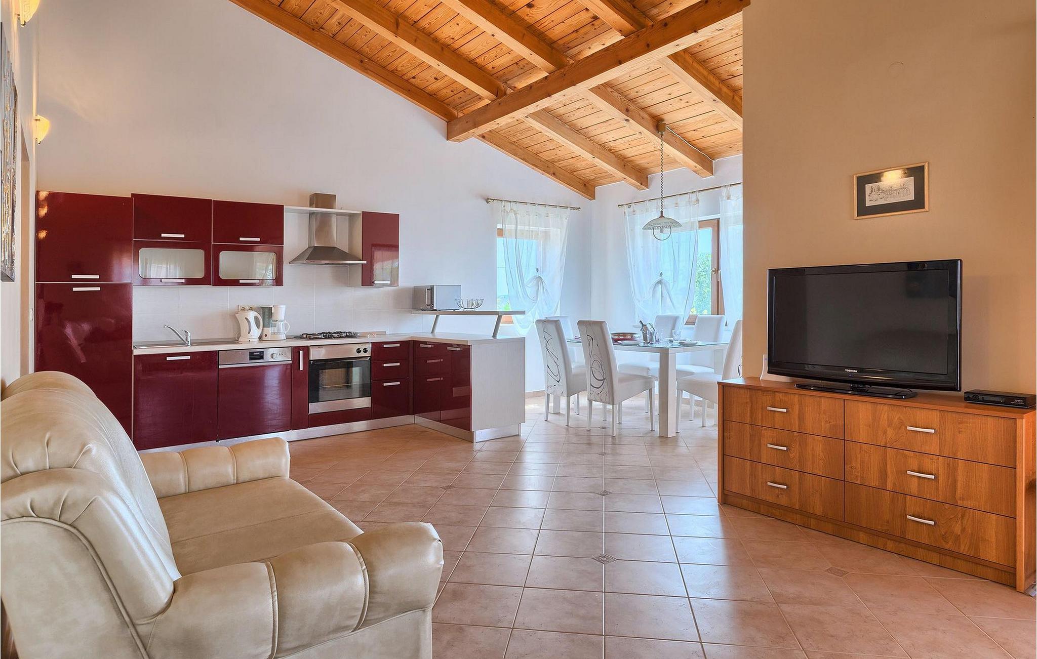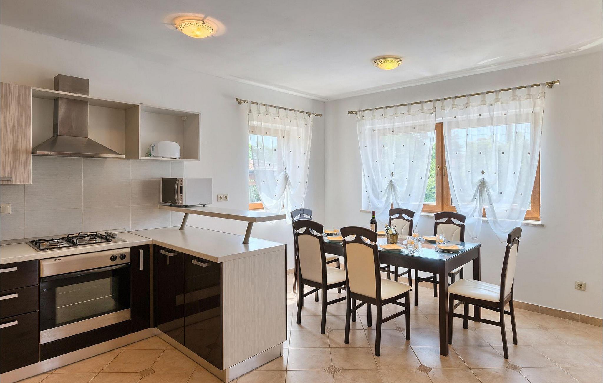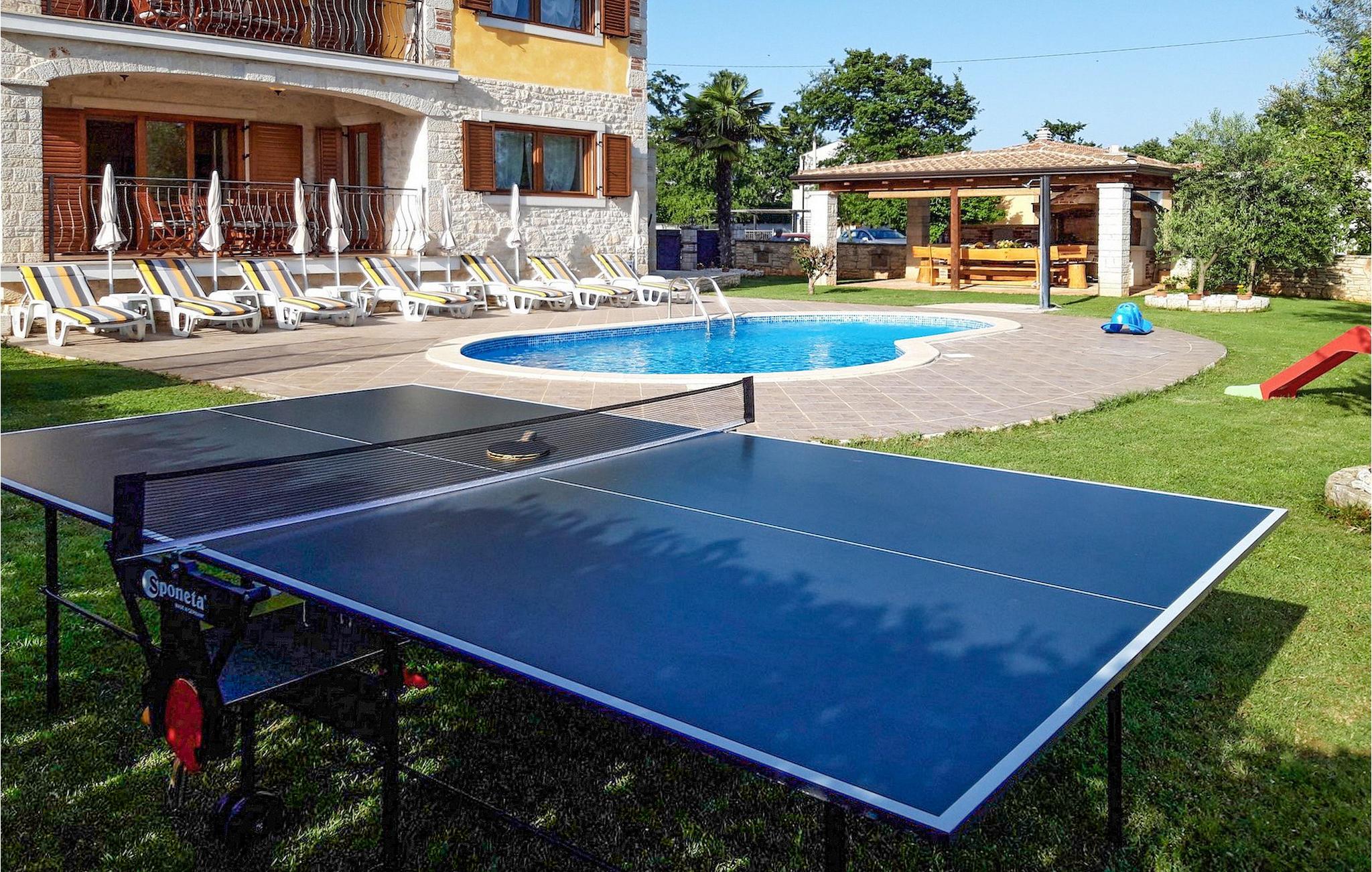 Falls Sie von einem entspannenden Urlaub in der Nähe von Porec und seinen wunderschönen Stränden träumen, könnte die Villa Jenny die ideale Wahl für Sie sein! Diese schöne Villa wurde in 2011 gebaut und bietet alles an, was man im Urlaub brauchen könnte. Die Villa kann bis zu 10 Personen (einschließlich Babys) beherbergen und besteht aus 2 separaten Wohnungen, die über 2 Etagen verteilt sind. Jede Wohnung hat einen eigenen Wohn-/Essbereich und eine gut ausgestattete Küche. Im Erdgeschoß gibt es 3 und im ersten Stock 2 Schlafzimmer. Auf jeder Etage steht Ihnen ein Badezimmer zur Verfügung. Dank dem hellen und geräumigen Innenbereich kann die Villa Jenny am besten mit dem Adjektiv "gemütlich" beschrieben werden - hier fühlt man sich wirklich wie zu Hause. Falls Sie in vollen Zügen den warmen istrischen Sommer genießen möchten, müssen Sie unbedingt in den einladenden Pool eintauchen oder die Sonne auf der Terrasse genießen. Villa Jenny hat einen Steingrill, auf dem Sie regionale Spezialitäten zubereiten können, während die jüngsten Gäste auf dem Spielplatz Spaß haben.