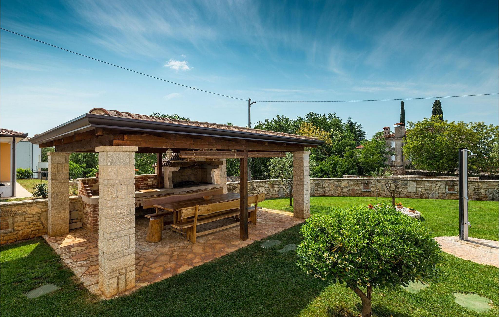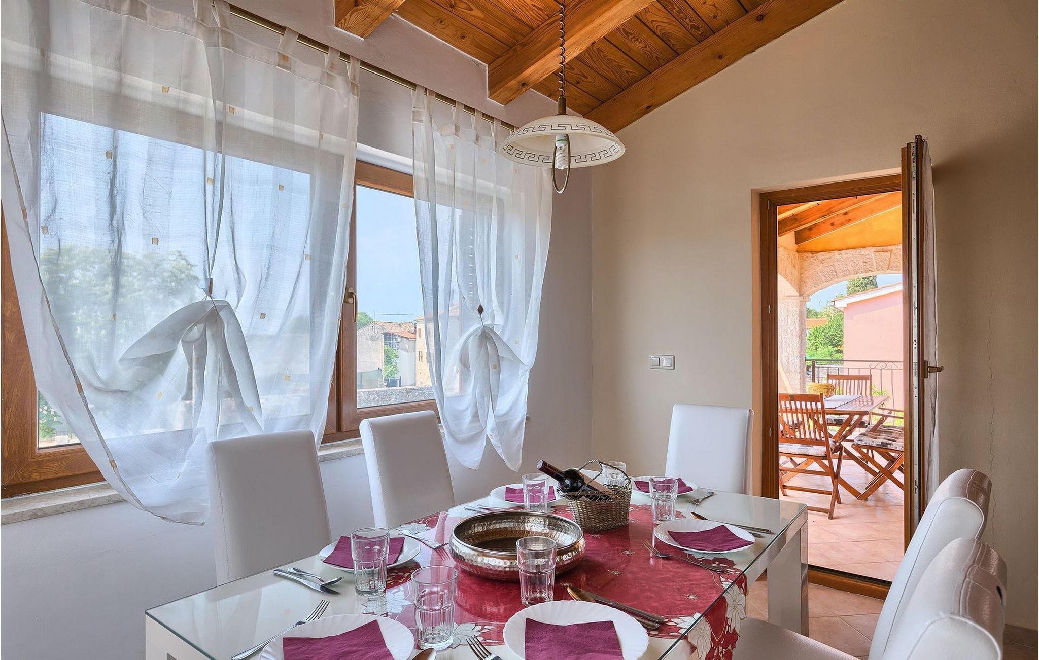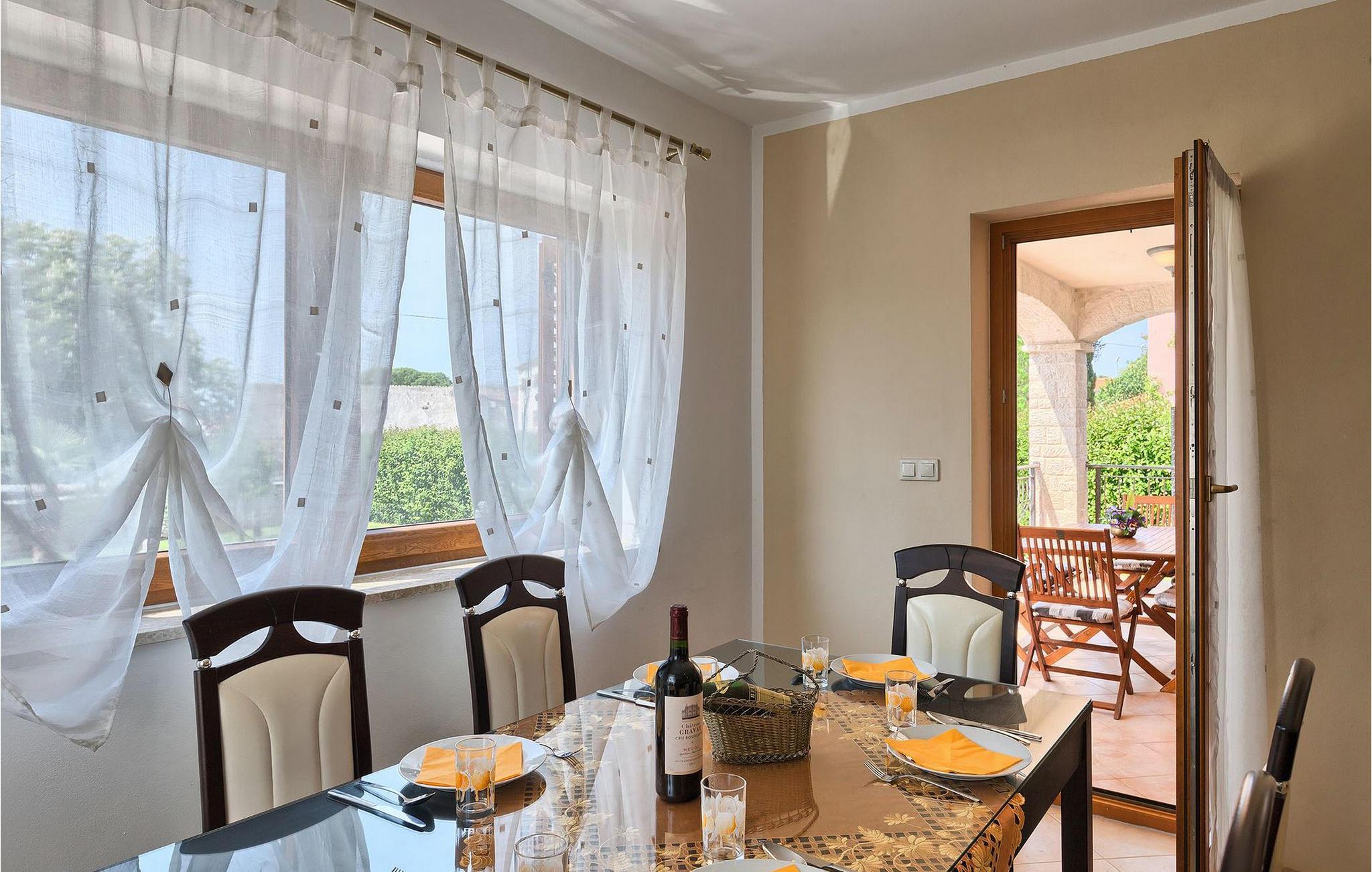WICHTIG: Villa Jenny ist für einen Familienurlaub vorgesehen, jüngere Besuchergruppen sind nicht erlaubt! Haustiere sind gegen einen Aufpreis von 15,- EUR pro Tag erlaubt.Die Lage der Villa Jenny ist ideal für Familien, die einen entspannenden Urlaub in der Nähe der Tourismuszentren verbringen möchten. Die Villa Jenny befindet sich nahe Porec, eines der touristischen Juwelen Kroatiens. Die Stadt hat eine lange und reiche Geschichte. Sie wurde auf einer kleinen Halbinsel gegründet, lange bevor die Illyrer sich angesiedelt haben. Wo heute die Altstadt ist, war früher eine römische Siedlung. Das Aussehen der Altstadt ist bis heute erhalten geblieben, inklusive der Hauptstraßen Cardo Maximus und Decumanus und des Forums. Wenn Sie sich in Porec befinden, müssen Sie unbedingt die Euphrasius Basilika besuchen, die im 6. Jahrhundert gebaut wurde. Seit 1998 ist die Basilika unter dem Schutz von UNESCO. Neben dem reichen Kulturerbe, bietet Porec auch zahlreiche Restaurants, Bars und Cafes an, wo Sie die Spezialitäten der Region ausprobieren können. Falls Sie einfach die Sonne genießen möchten, sind Sie hier genau richtig, da sich in der Umgebung von Porec zahlreiche atemberaubende Strände befinden.