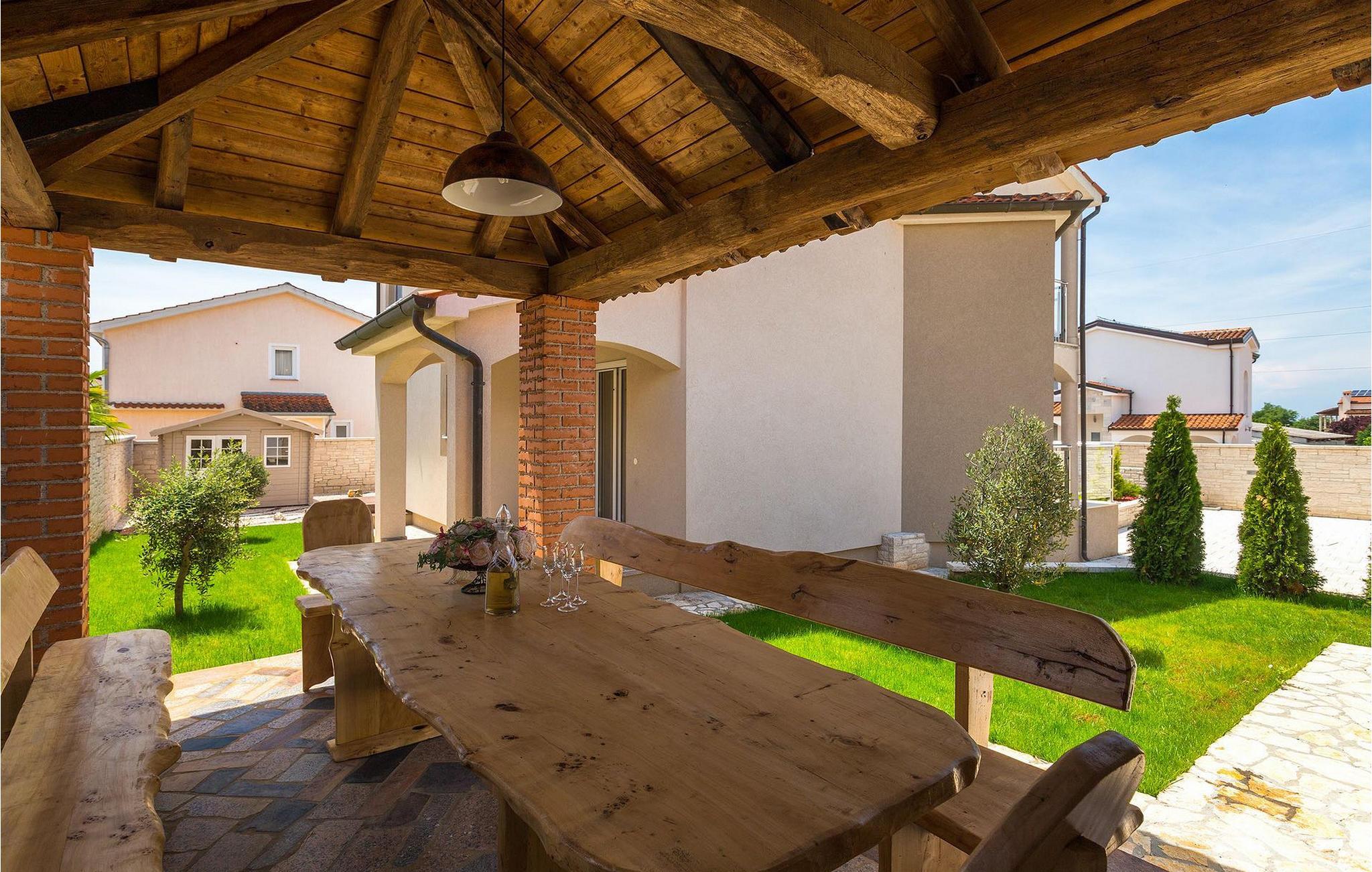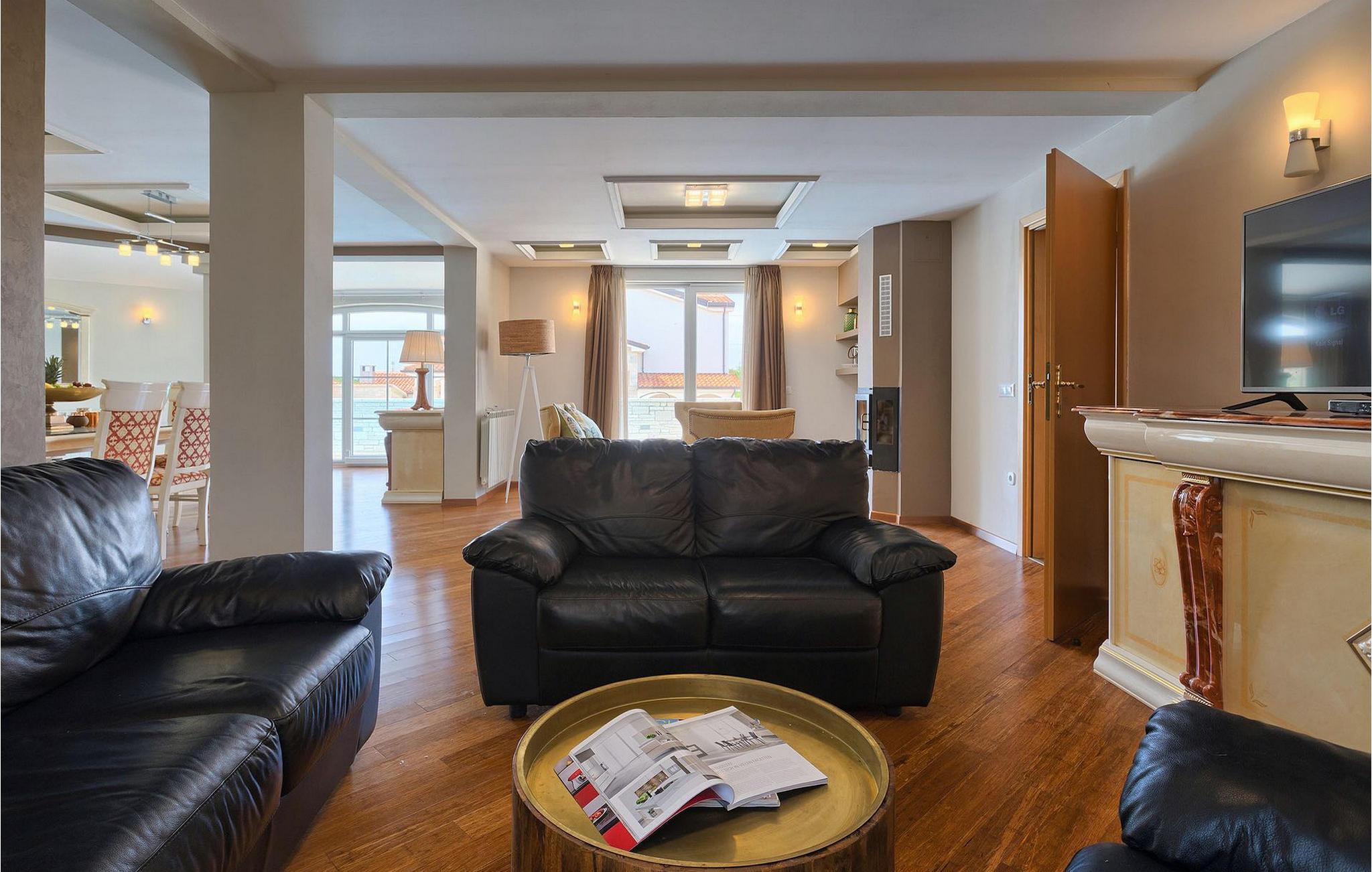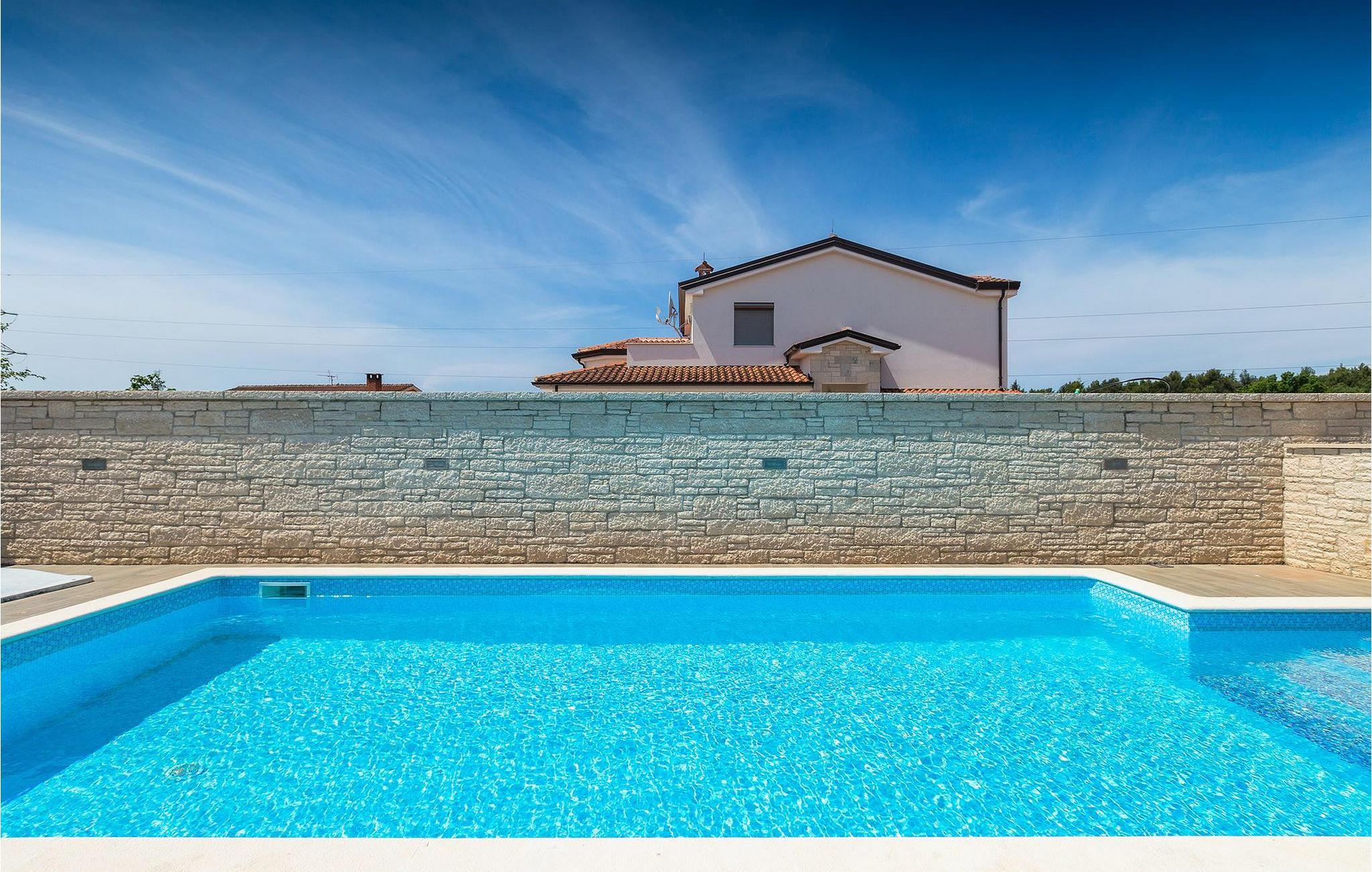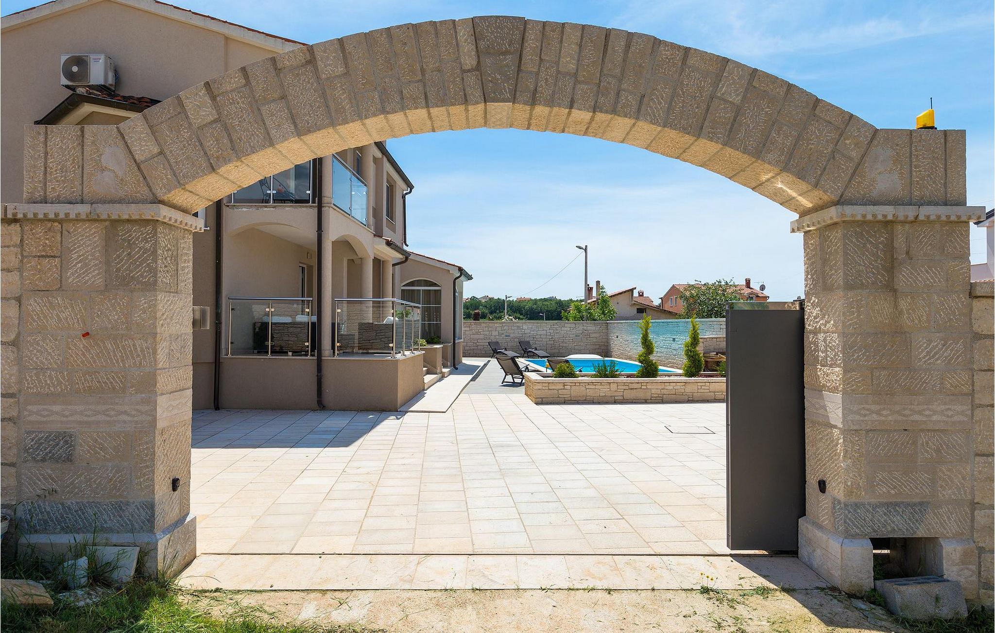 Villa Gordana, in der Nähe der Stadt Porec gelegen, sowie in der Nähe der Strände von Porec, ist für bis zu 8 Personen geeignet. Die obere Etage ist in 4 gemütliche Schlafzimmer unterteilt, von denen jedes klimatisiert ist, und eines auch Zugang zum schönen Balkon hat, von dem Sie die Aussicht auf die Umgebung genießen können. Das Erdgeschoss besteht aus dem geräumigen und sehr eleganten Wohnzimmer mit Kamin, das mit dem Essbereich und der völlig ausgestatteten Küche mit moderner Kochinsel und zusätzlichen Sitzplätzen verbunden ist. Die großen Glasflächen im Essbereich ermöglichen viel natürliches Licht in der Villa, ermöglichen Ihnen aber auch einen hervorragenden Blick auf den privaten Pool, den Sie auf einer der Sonnenliegen genießen können. Das Innenbereich dieser Villa ist sehr elegant und stilvoll eingerichtet und dekoriert, sowie sehr gut mit allen Annehmlichkeiten ausgestattet, die Sie benötigen könnten, damit Sie einen tatsächlich erholsamen Urlaub verbringen können. Jüngere Gruppen sind in der Villa nicht erlaubt.Porec ist ein wahres touristisches Hotspot, wo man alle Arten von Aktivitäten, Restaurants, Bars und Clubs finden kann. Die Stadt ist vor allem für ihr reiches kulturelles Erbe bekannt. Porec, früher eine römische Kolonie, erreichte seinen Höhepunkt während der Herrschaft des byzantinischen Kaiser Justinian. Die atemberaubende Euphrasius Basilika, die in der Mitte des 6. Jahrhunderts erbaut wurde und heute unter dem UNESCO- Schutz steht, ist definitiv ein “must see”.