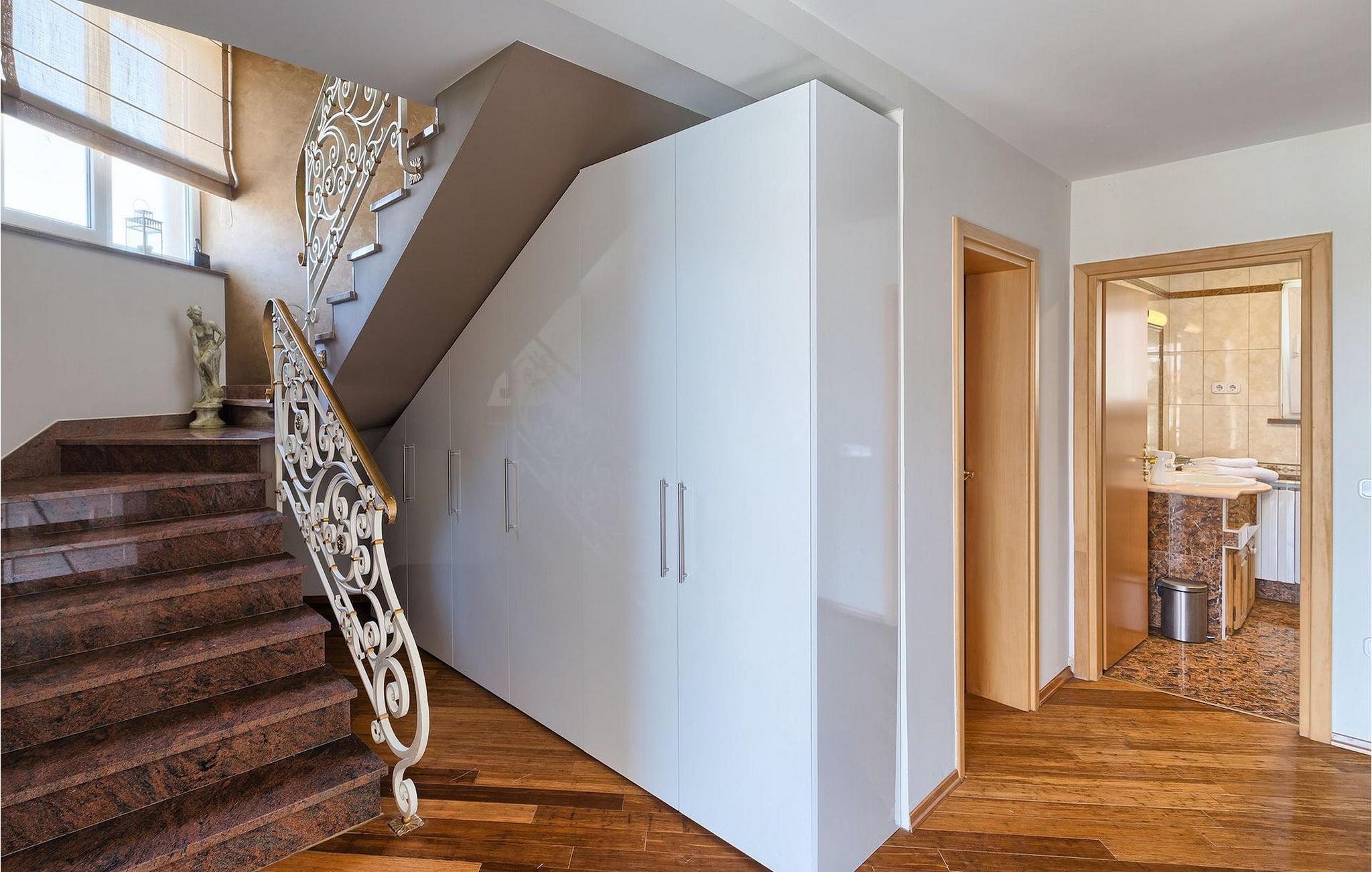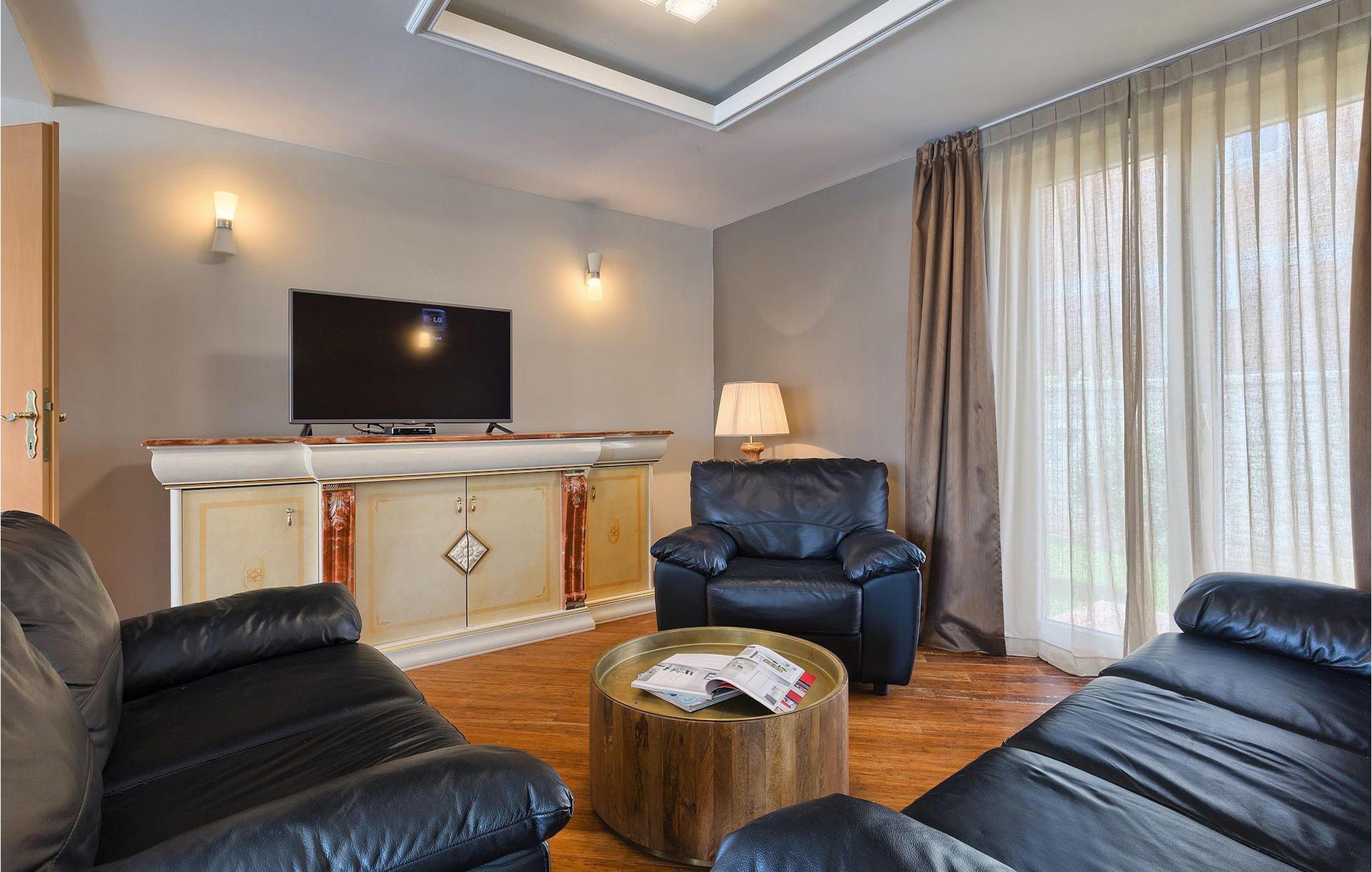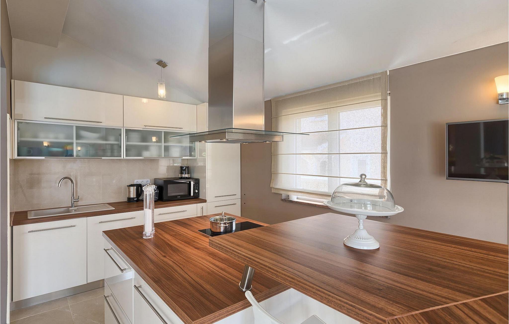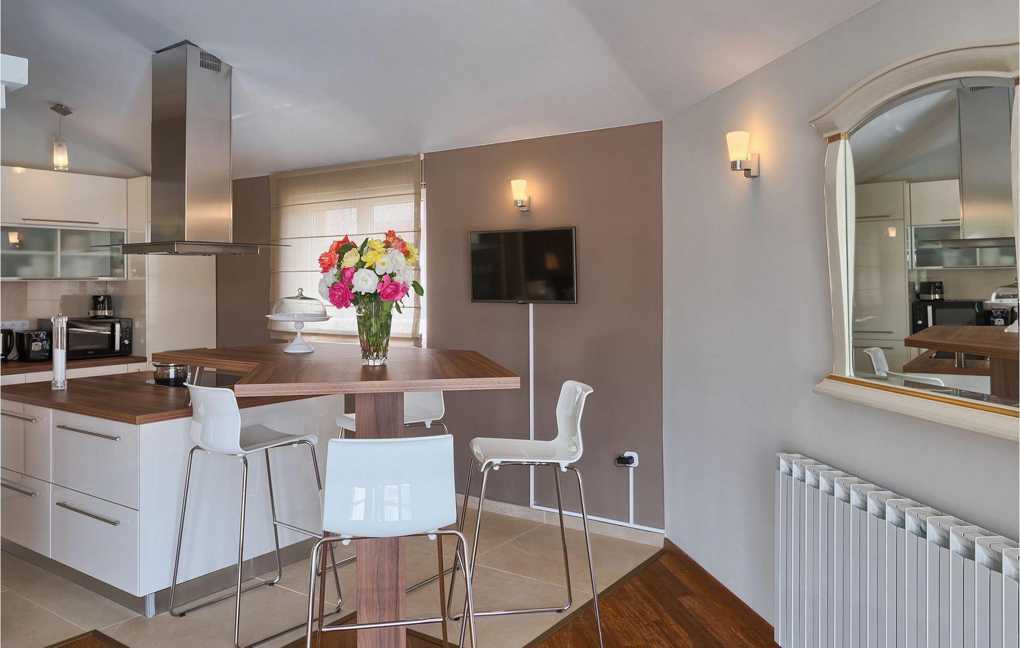 Villa Gordana, in der Nähe der Stadt Porec gelegen, sowie in der Nähe der Strände von Porec, ist für bis zu 8 Personen geeignet. Die obere Etage ist in 4 gemütliche Schlafzimmer unterteilt, von denen jedes klimatisiert ist, und eines auch Zugang zum schönen Balkon hat, von dem Sie die Aussicht auf die Umgebung genießen können. Das Erdgeschoss besteht aus dem geräumigen und sehr eleganten Wohnzimmer mit Kamin, das mit dem Essbereich und der völlig ausgestatteten Küche mit moderner Kochinsel und zusätzlichen Sitzplätzen verbunden ist. Die großen Glasflächen im Essbereich ermöglichen viel natürliches Licht in der Villa, ermöglichen Ihnen aber auch einen hervorragenden Blick auf den privaten Pool, den Sie auf einer der Sonnenliegen genießen können. Das Innenbereich dieser Villa ist sehr elegant und stilvoll eingerichtet und dekoriert, sowie sehr gut mit allen Annehmlichkeiten ausgestattet, die Sie benötigen könnten, damit Sie einen tatsächlich erholsamen Urlaub verbringen können. Jüngere Gruppen sind in der Villa nicht erlaubt.Porec ist ein wahres touristisches Hotspot, wo man alle Arten von Aktivitäten, Restaurants, Bars und Clubs finden kann. Die Stadt ist vor allem für ihr reiches kulturelles Erbe bekannt. Porec, früher eine römische Kolonie, erreichte seinen Höhepunkt während der Herrschaft des byzantinischen Kaiser Justinian. Die atemberaubende Euphrasius Basilika, die in der Mitte des 6. Jahrhunderts erbaut wurde und heute unter dem UNESCO- Schutz steht, ist definitiv ein “must see”.