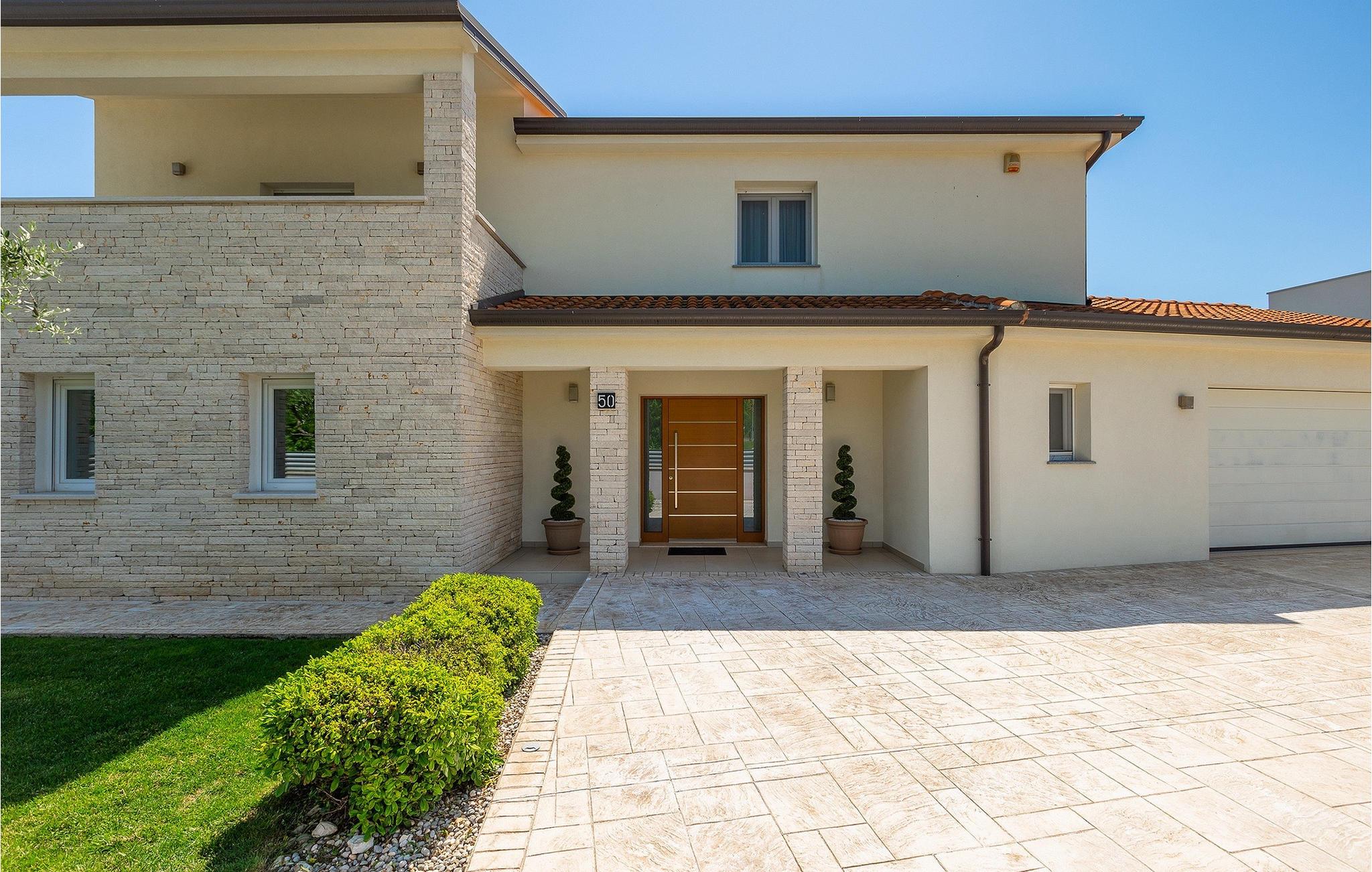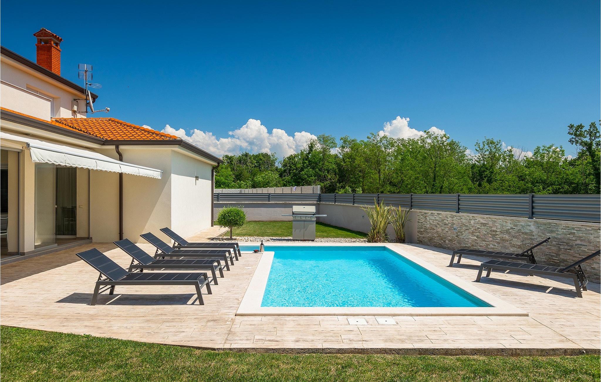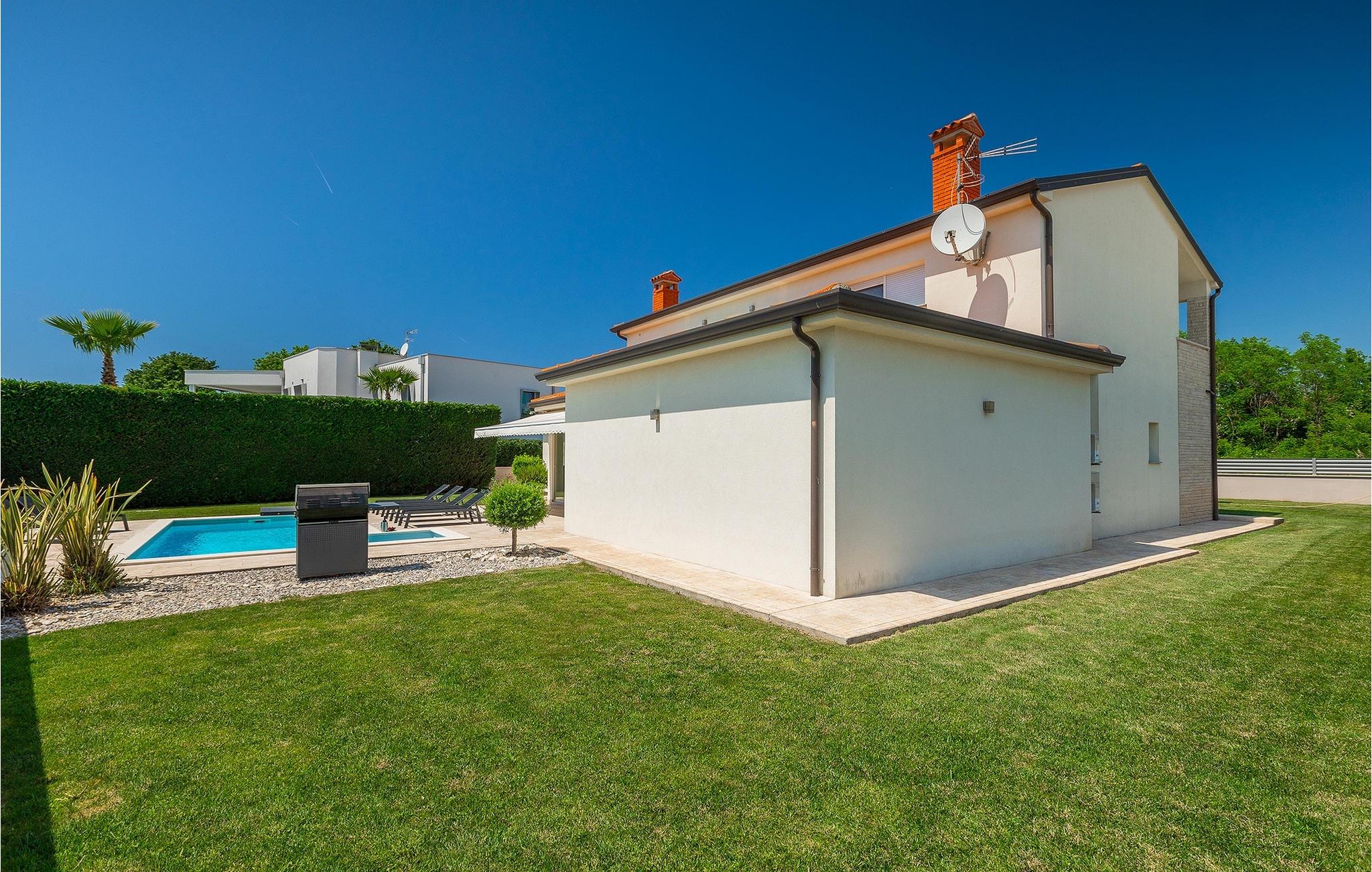 Wenn Sie auf der Suche nach einer wunderschönen Villa mit modernem Innendesign sind, dann sind Sie in der Villa Alex Exclusive genau richtig. Diese Villa bietet Platz für bis zu 6 Gäste in 3 Schlafzimmern mit Doppelbetten, jeweils mit eigenem Bad und Fernseher. Im Erdgeschoss befinden sich eines der Schlafzimmer, ein Wohnzimmer mit 2 Sofas, einem Fernseher und einem Kamin für einen gemütlichen Abend. Darüber hinaus gibt es eine große, voll ausgestattete Küche, einen Essbereich mit Platz für bis zu 8 Personen und ein separates WC. Im ersten Stock stehen Ihnen zwei weitere Schlafzimmer mit eigenem Bad und Fernseher sowie ein begehbarer Kleiderschrank zur Verfügung. Beide Etagen sind klimatisiert und mit Fußbodenheizung ausgestattet. Außerhalb der Villa, bevor Sie den Garten betreten, finden Sie auf der schattigen Terrasse eine Außenküche mit eigenem Kühlschrank, Herd und Spüle. Daneben steht ein weiterer Esstisch für bis zu 6 Personen für eine köstliche Mahlzeit an der frischen Luft zur verfügung. Wenn Sie ein klassisches Sommer-BBQ bevorzugen, brauchen Sie sich keine Sorgen zu machen, denn im schönen Garten gibt es einen Grill direkt neben dem Pool. Sechs Liegestühle stehen um den Pool rum, damit die ganze Gruppe in der Sonne entspannen kann, während der Zaun und die hohe Hecke für Privatsphäre sorgen. Vor dem Haus gibt es ausreichend Platz für bis zu 3 Autos. Wenn diese elegante Villa Ihnen entspricht, buchen Sie jetzt und gönnen Sie sich einen wunderschönen Urlaub für Familie und Freunde. Die Villa Alex Exclusive befindet sich in der historischen Stadt Porec an der Küste der Halbinsel Istrien im Westen Kroatiens. Dieser beliebte Ferienort beherbergt die Euphrasius-Basilika, die für ihre prächtigen byzantinischen Mosaike bekannt ist, die komplexe Bilder schaffen. Abgesehen von seiner kulturellen und historischen Bedeutung ist Porec ein fantastisches Reiseziel für sportliche und aktive Menschen. Die nahe gelegene Küste bietet viele Strände, an denen Sie an Aktivitäten wie Jetski fahren oder Golfen teilnehmen können. Überall in der Stadt gibt es viele charmante Restaurants, die köstliche lokale Gerichte von Fisch bis Steaks servieren. Nach einem schönen Familienessen können Sie einen entspannten Spaziergang entlang des atemberaubenden Yachthafens unternehmen, bevor Sie zu Ihrer luxuriösen Villa zurückkehren.