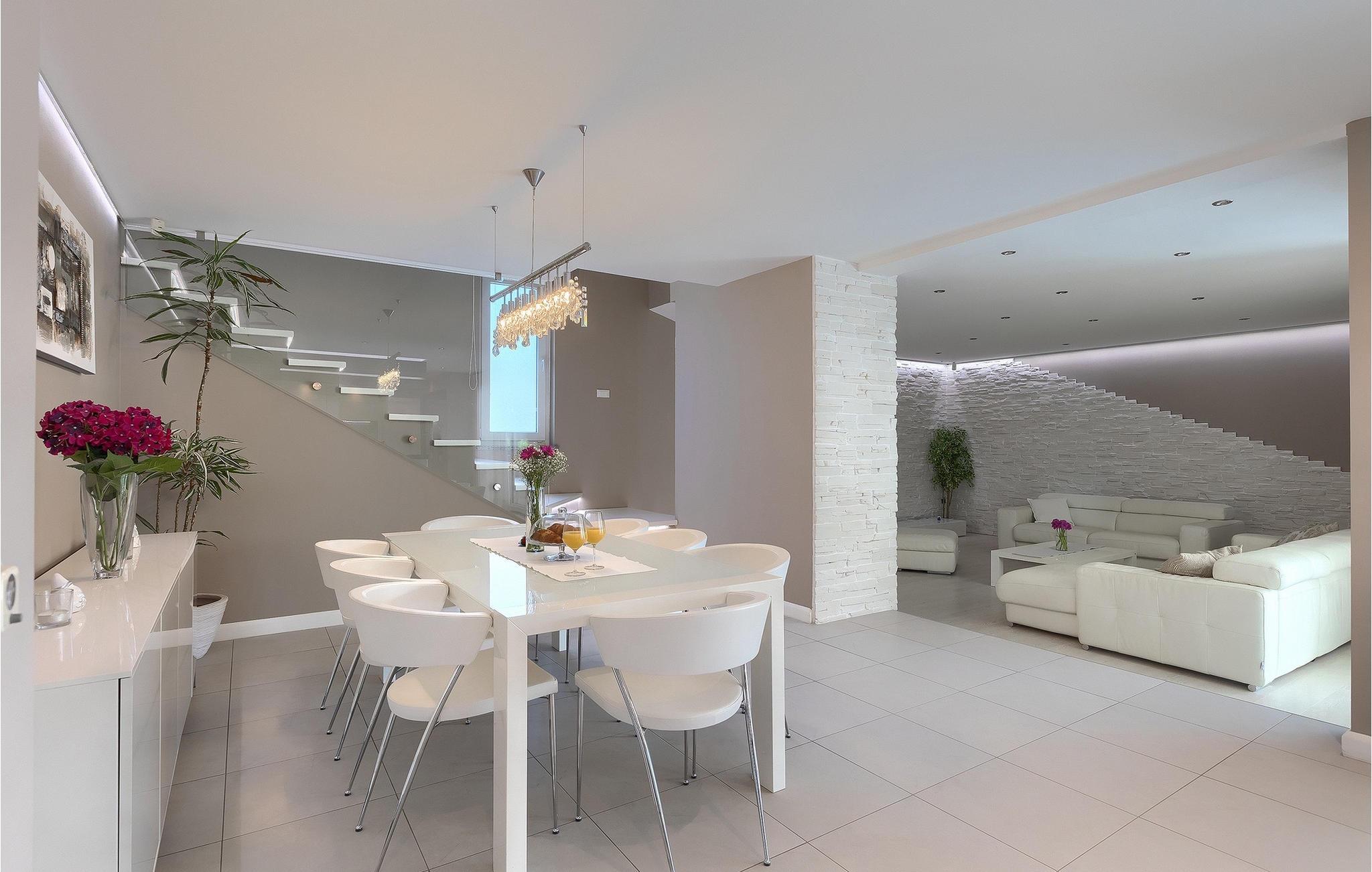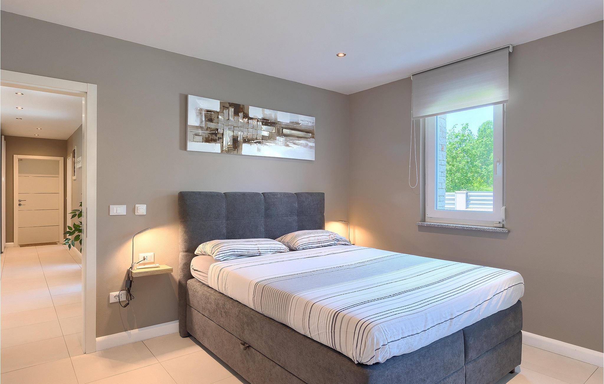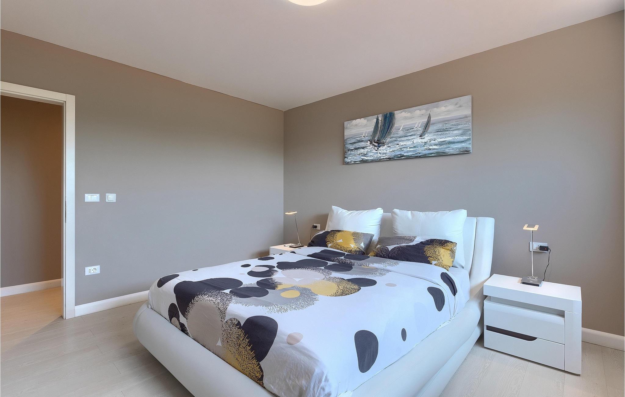 Wenn Sie auf der Suche nach einer wunderschönen Villa mit modernem Innendesign sind, dann sind Sie in der Villa Alex Exclusive genau richtig. Diese Villa bietet Platz für bis zu 6 Gäste in 3 Schlafzimmern mit Doppelbetten, jeweils mit eigenem Bad und Fernseher. Im Erdgeschoss befinden sich eines der Schlafzimmer, ein Wohnzimmer mit 2 Sofas, einem Fernseher und einem Kamin für einen gemütlichen Abend. Darüber hinaus gibt es eine große, voll ausgestattete Küche, einen Essbereich mit Platz für bis zu 8 Personen und ein separates WC. Im ersten Stock stehen Ihnen zwei weitere Schlafzimmer mit eigenem Bad und Fernseher sowie ein begehbarer Kleiderschrank zur Verfügung. Beide Etagen sind klimatisiert und mit Fußbodenheizung ausgestattet. Außerhalb der Villa, bevor Sie den Garten betreten, finden Sie auf der schattigen Terrasse eine Außenküche mit eigenem Kühlschrank, Herd und Spüle. Daneben steht ein weiterer Esstisch für bis zu 6 Personen für eine köstliche Mahlzeit an der frischen Luft zur verfügung. Wenn Sie ein klassisches Sommer-BBQ bevorzugen, brauchen Sie sich keine Sorgen zu machen, denn im schönen Garten gibt es einen Grill direkt neben dem Pool. Sechs Liegestühle stehen um den Pool rum, damit die ganze Gruppe in der Sonne entspannen kann, während der Zaun und die hohe Hecke für Privatsphäre sorgen. Vor dem Haus gibt es ausreichend Platz für bis zu 3 Autos. Wenn diese elegante Villa Ihnen entspricht, buchen Sie jetzt und gönnen Sie sich einen wunderschönen Urlaub für Familie und Freunde. Die Villa Alex Exclusive befindet sich in der historischen Stadt Porec an der Küste der Halbinsel Istrien im Westen Kroatiens. Dieser beliebte Ferienort beherbergt die Euphrasius-Basilika, die für ihre prächtigen byzantinischen Mosaike bekannt ist, die komplexe Bilder schaffen. Abgesehen von seiner kulturellen und historischen Bedeutung ist Porec ein fantastisches Reiseziel für sportliche und aktive Menschen. Die nahe gelegene Küste bietet viele Strände, an denen Sie an Aktivitäten wie Jetski fahren oder Golfen teilnehmen können. Überall in der Stadt gibt es viele charmante Restaurants, die köstliche lokale Gerichte von Fisch bis Steaks servieren. Nach einem schönen Familienessen können Sie einen entspannten Spaziergang entlang des atemberaubenden Yachthafens unternehmen, bevor Sie zu Ihrer luxuriösen Villa zurückkehren.