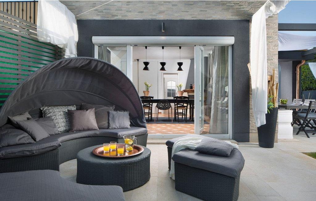 Das Haus wurde 2006 gebaut und 2015 mit modernen Qulitätsmöbeln ausgestattet. Das Haus liegt auf umzäunten Grundstück von 300 qm und bietet den Gästen folgende Aussenausstattung: 30 qm großes Pool, 4 Sonnenliegen, gepflegter Rasen, Sommerküche mit überdachter Terrasse im Garten, Grillkamin, geräumige Terrasse auf dem ersten Stock mit Lounge Möbeln und mehrere Parkplätze.