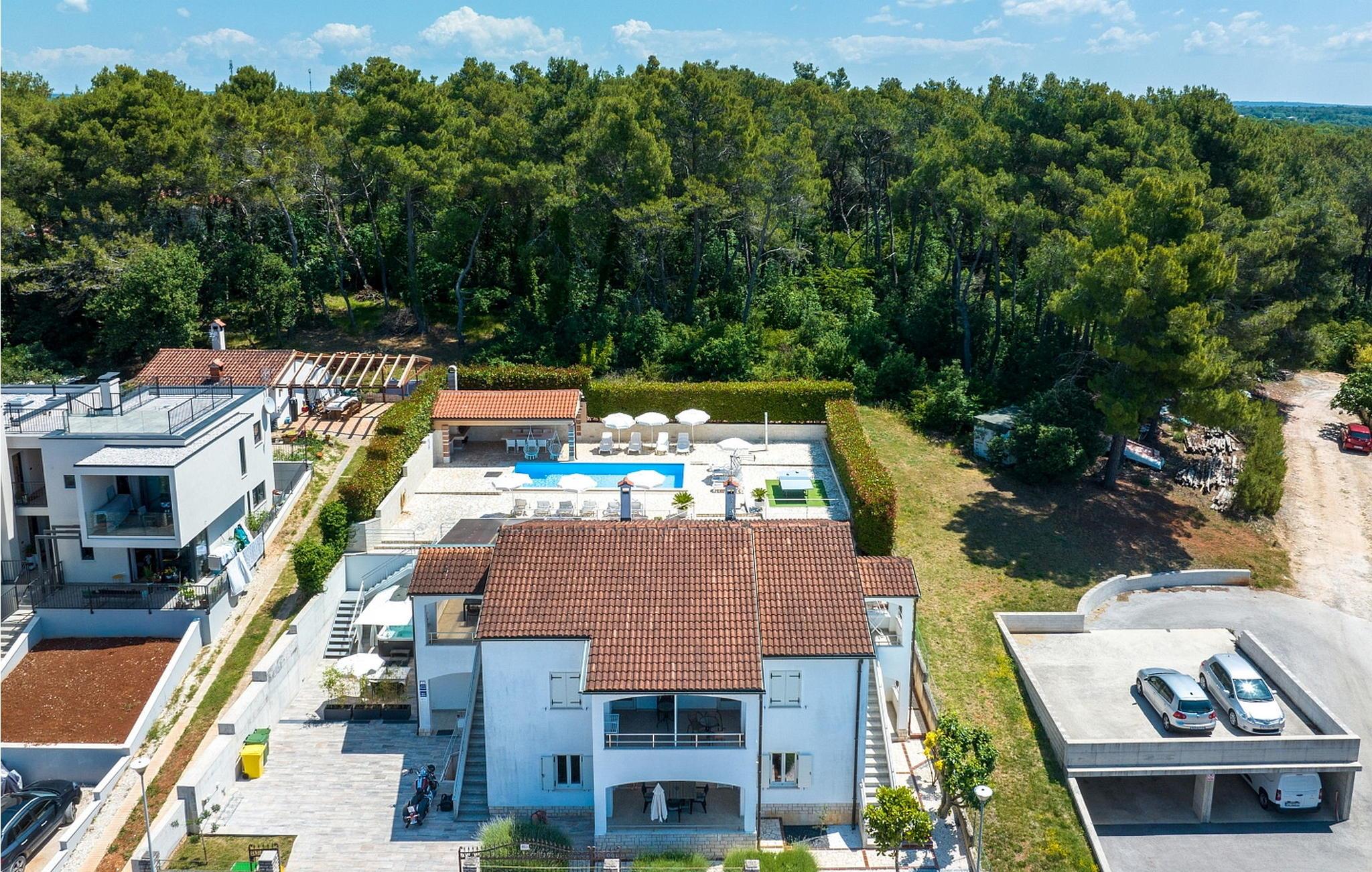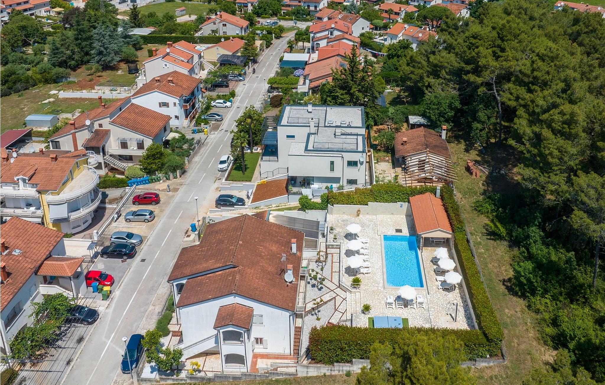 Das Haus verfügt über gemeinsamen Pool von 36 qm, großer überdachten Terrasse mit Grill und Esstisch und einem Parkplatz für jede Ferienwohnung.