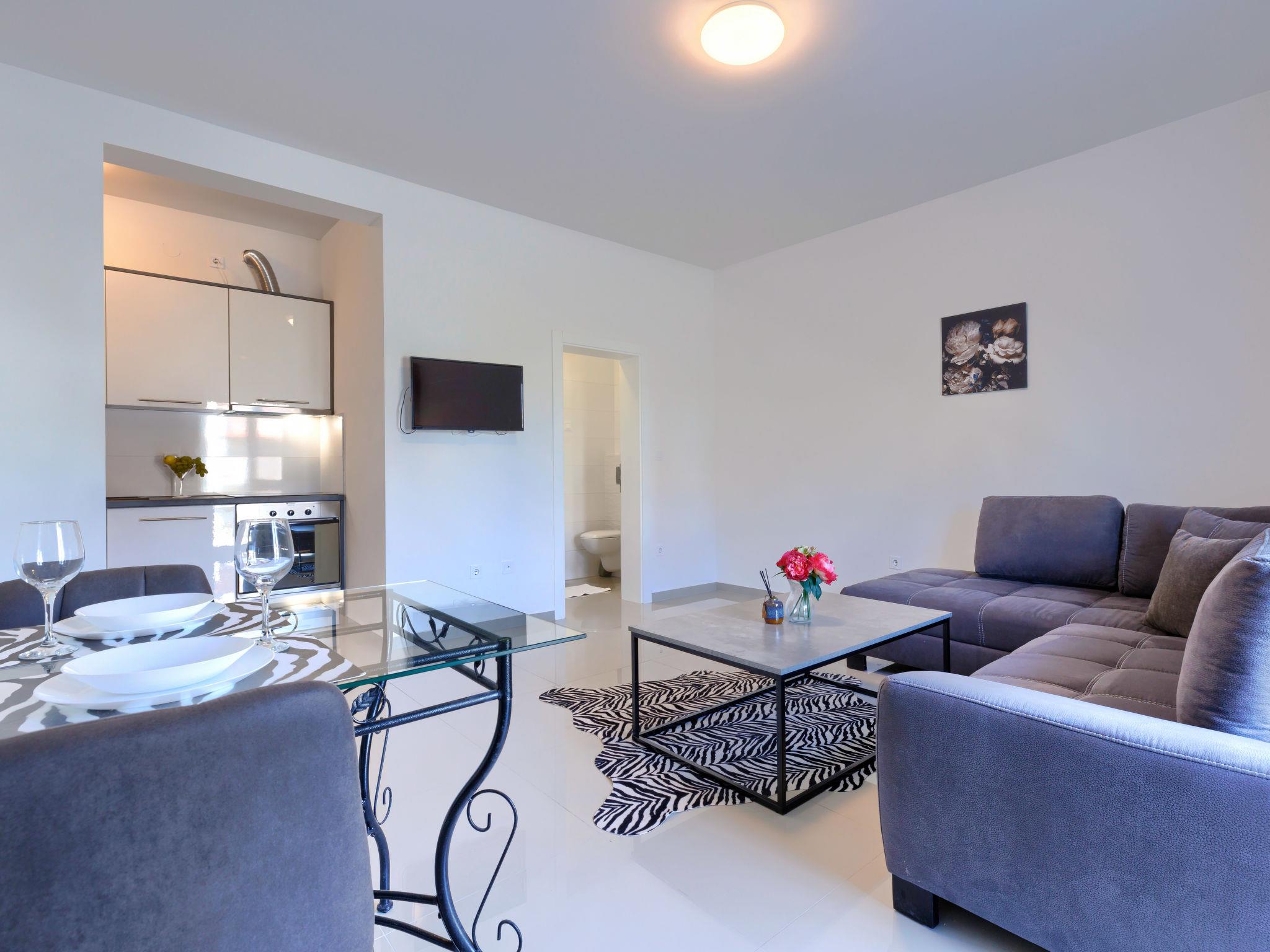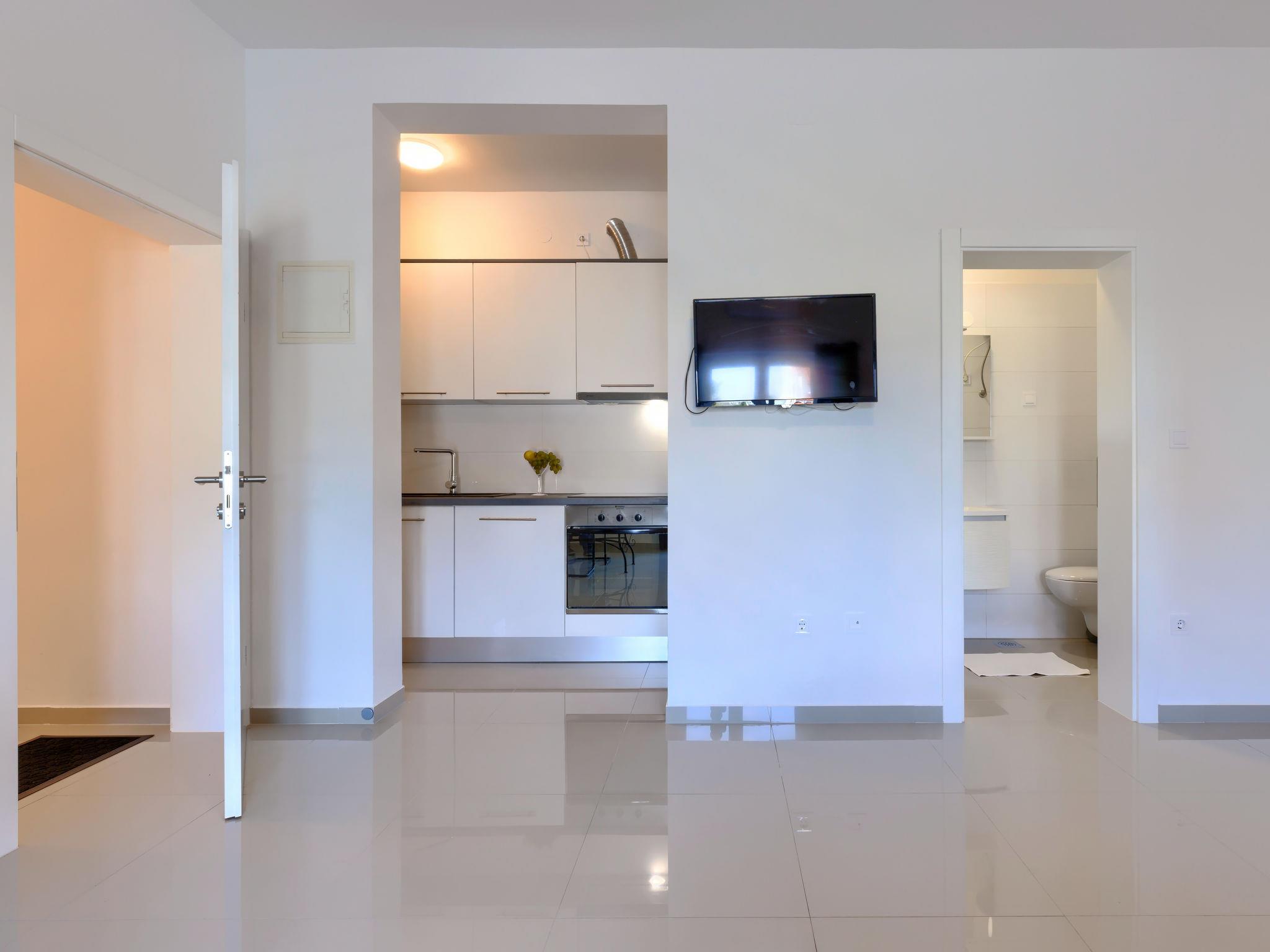 "Amra 3", 1-room studio 20 m2, on the ground floor. Simple furnishings: living/dining room with 1 double sofabed (160 cm, length 200 cm), satellite TV and air conditioning. Open kitchen (oven, 4 ceramic glass hob hotplates, toaster, kettle, electric coffee machine). Shower/WC. Forced-air heating. Facilities: iron, hair dryer. Internet (WiFi, free). Parking (1 car) at the house.