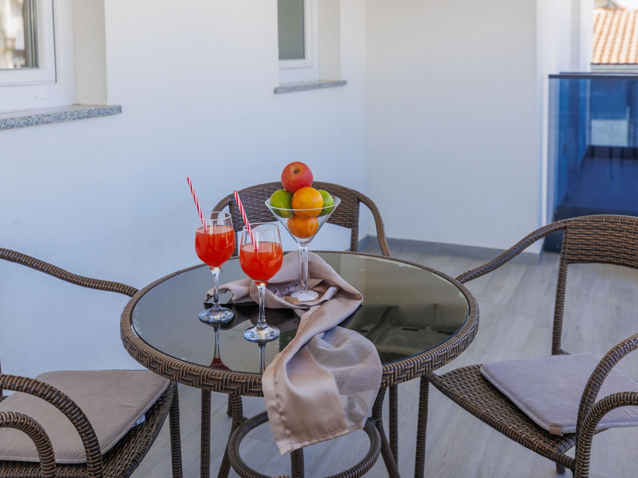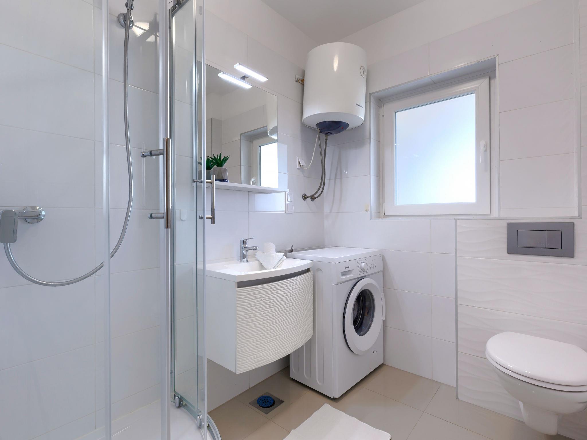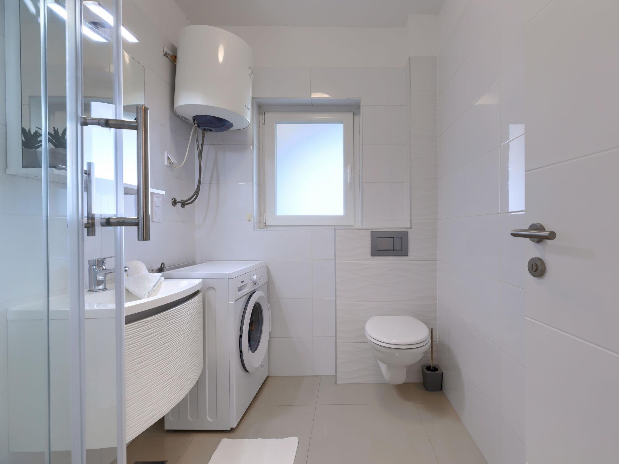 "Amra 4", 3-room apartment 40 m2, on the upper floor. Cosy furnishings: living/dining room with 1 sofabed (120 cm, length 200 cm), satellite TV and air conditioning. Exit to the terrace. 1 room with 1 sofabed (120 cm, length 190 cm). 1 room with 1 french bed (160 cm, length 200 cm). Exit to the terrace. Open kitchen (oven, dishwasher, 4 ceramic glass hob hotplates, toaster, kettle, freezer, electric coffee machine). Shower/WC. Forced-air heating. Terrace 3 m2, terrace 12 m2, roofed. Facilities: washing machine, iron, hair dryer. Internet (WiFi, free). Parking (1 car) at the house.