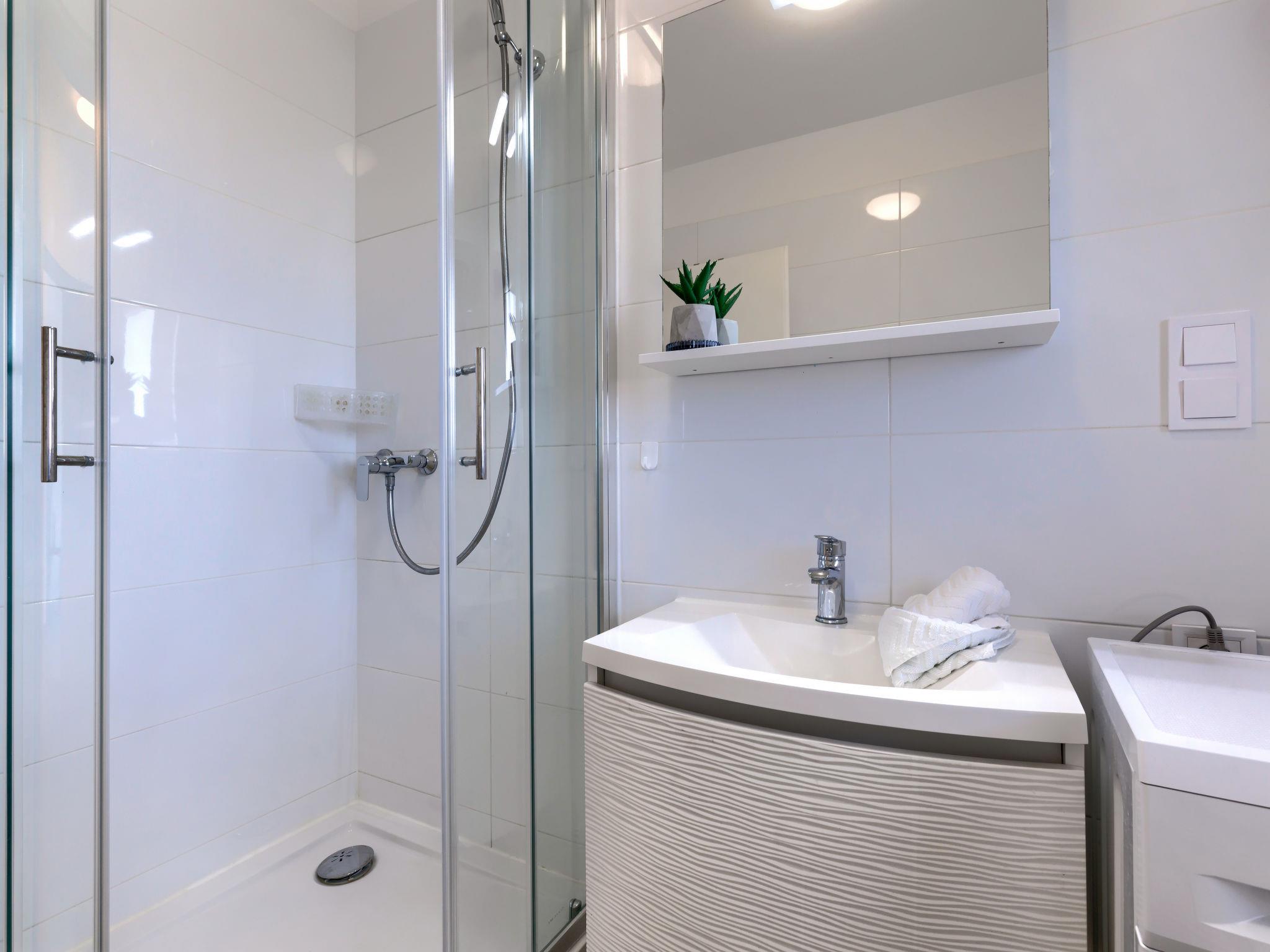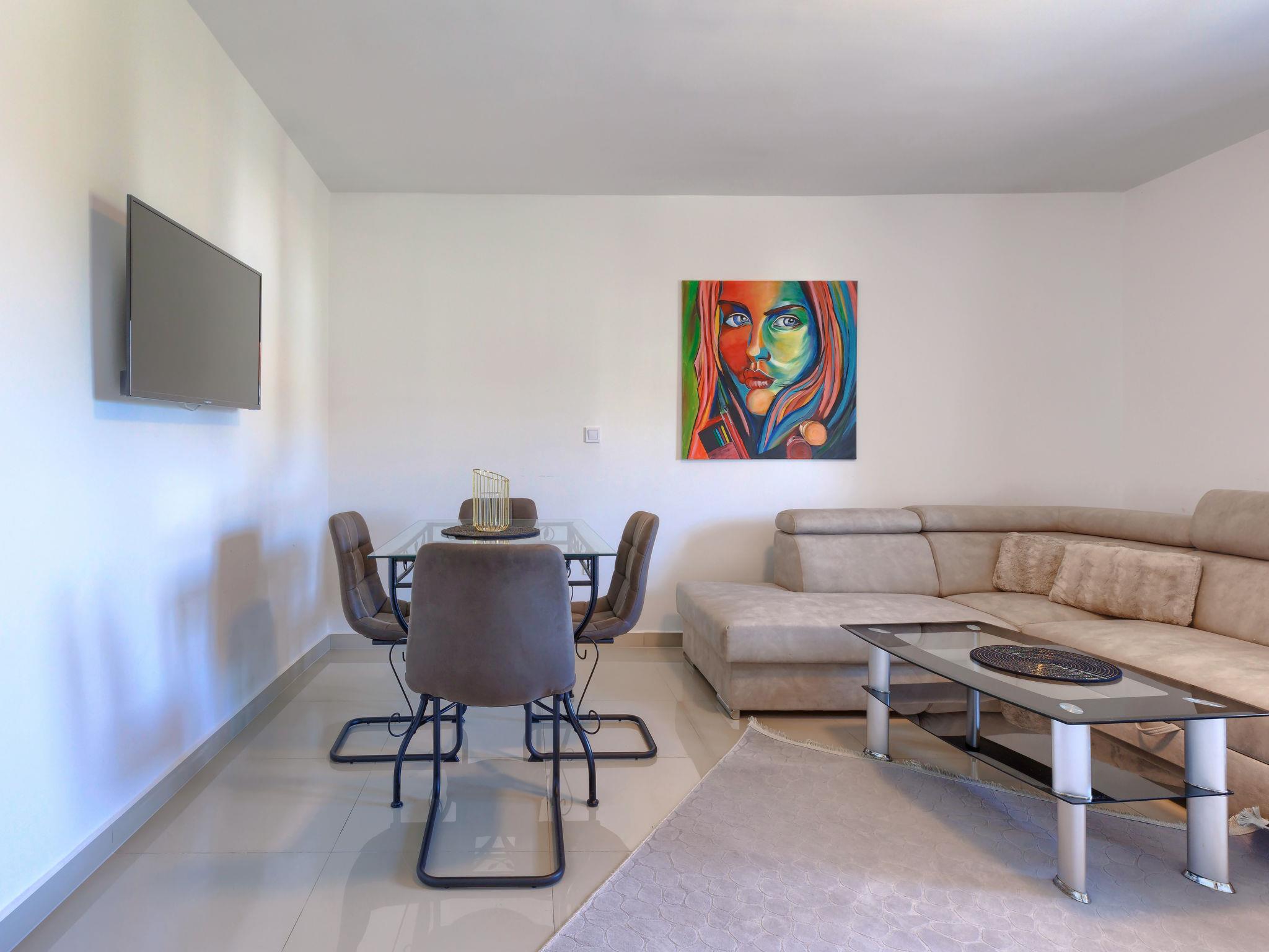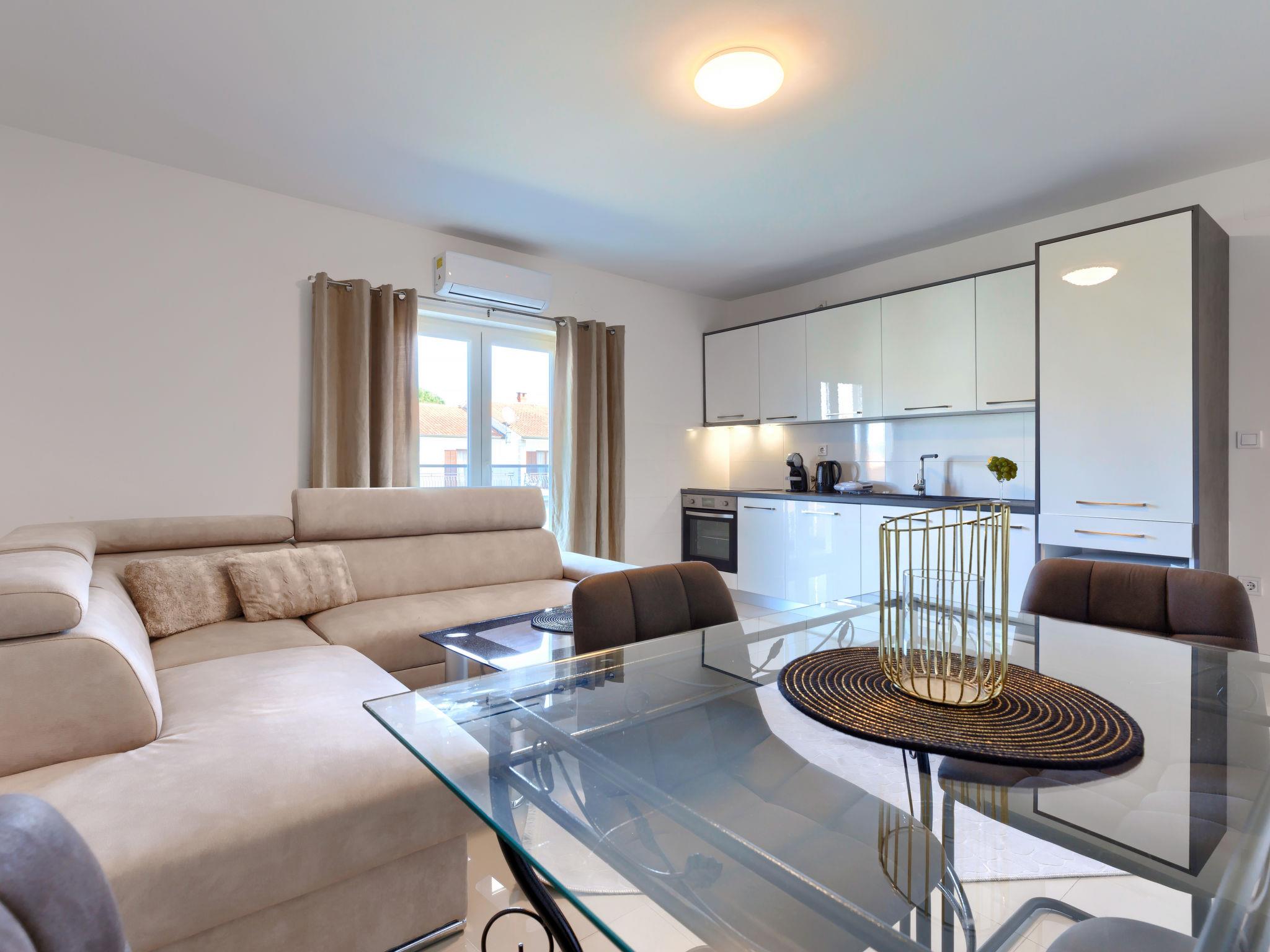 "Amra 4", 3-room apartment 40 m2, on the upper floor. Cosy furnishings: living/dining room with 1 sofabed (120 cm, length 200 cm), satellite TV and air conditioning. Exit to the terrace. 1 room with 1 sofabed (120 cm, length 190 cm). 1 room with 1 french bed (160 cm, length 200 cm). Exit to the terrace. Open kitchen (oven, dishwasher, 4 ceramic glass hob hotplates, toaster, kettle, freezer, electric coffee machine). Shower/WC. Forced-air heating. Terrace 3 m2, terrace 12 m2, roofed. Facilities: washing machine, iron, hair dryer. Internet (WiFi, free). Parking (1 car) at the house.
